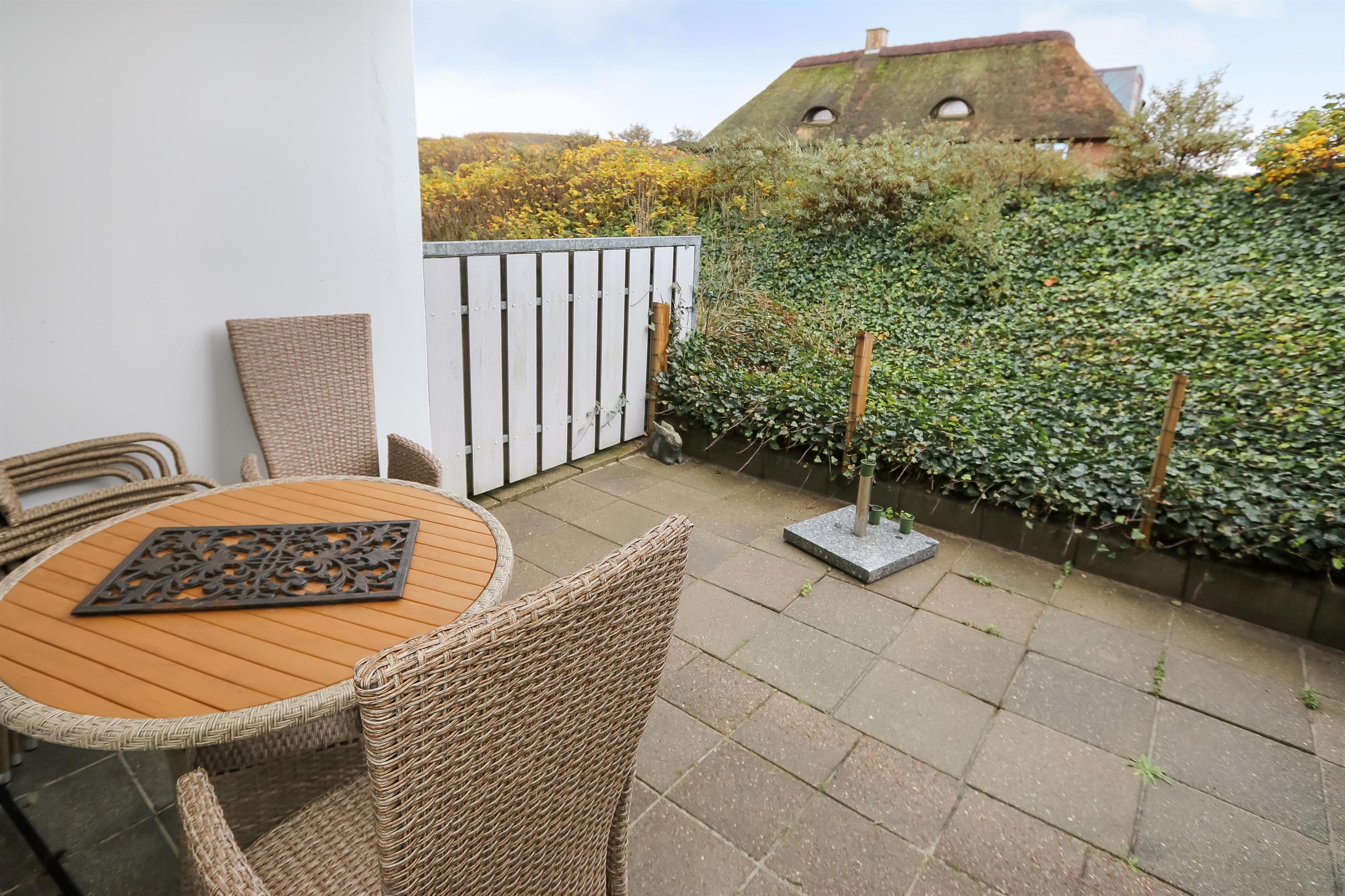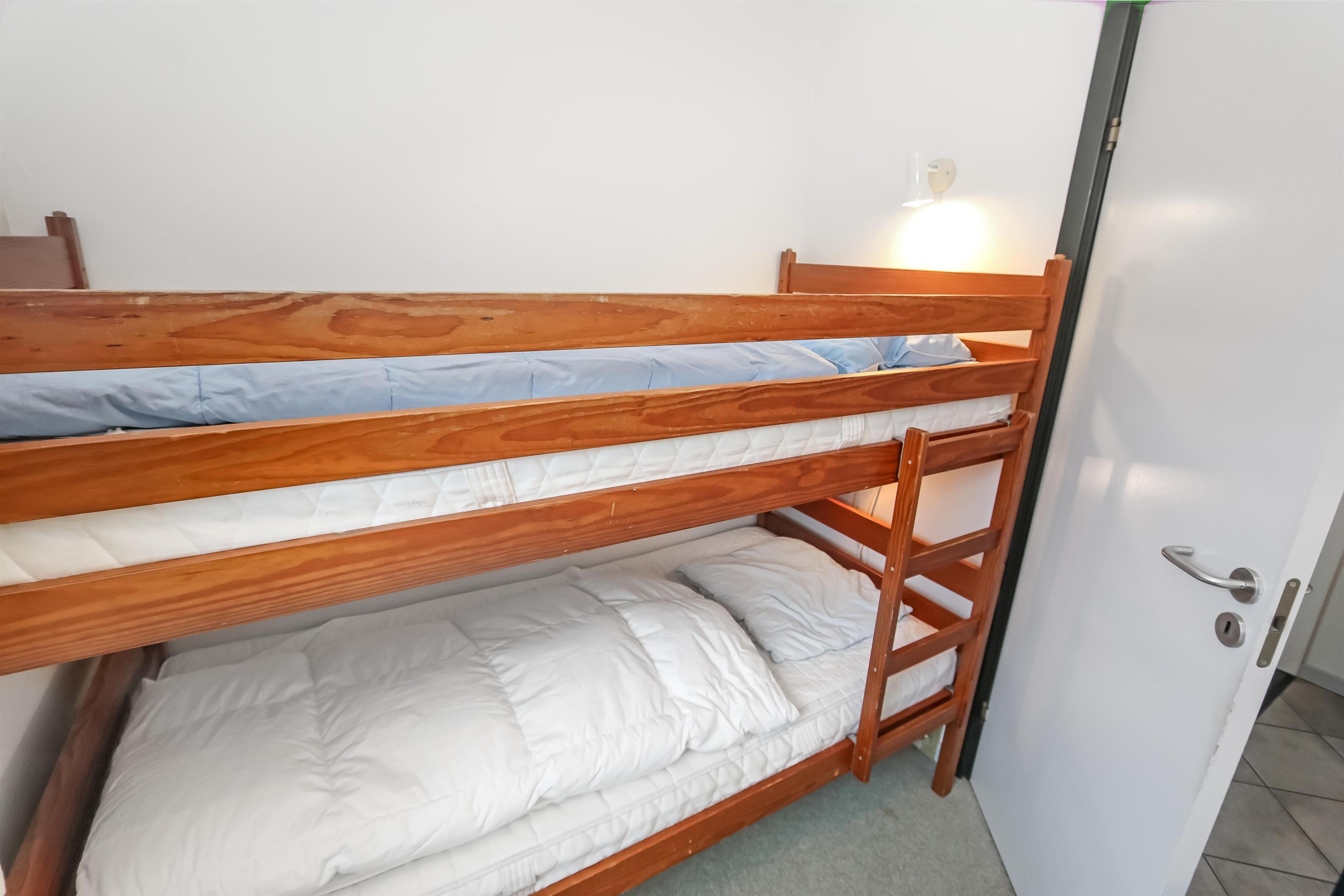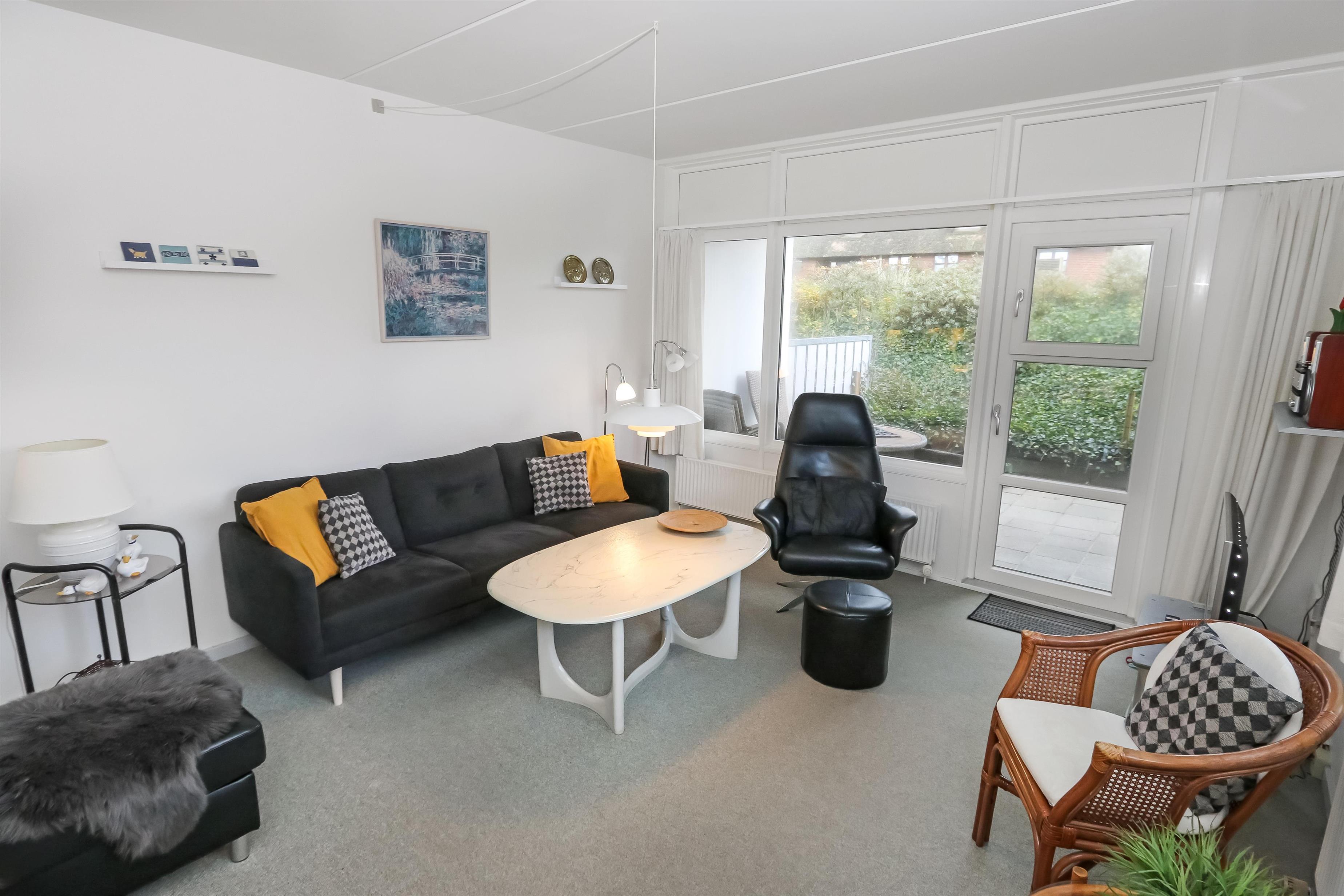 Dejlig ferielejlighed i stueplan til 6 personer. Lejligheden er indrettet med 2 soverum: 1S + 1DB og 1DB + 1K. Kombineret stue og køkken. Hyggelig indrettet stue med læder og polstermøbler samt kabel-TV, radio og CD afspiller. Køkken med glaskeramisk komfur, emhætte, opvaskemaskine og køleskab med lille frostboks, linolium i køkkenafdelingen. Badeværelse med bruser, håndvask og toilet. Fra stuen er der udgang til en dejligt lille delvis overdækket og indhegnet terrasse med havemøbler. Til de mindste gæster er der en barneseng til rådighed.