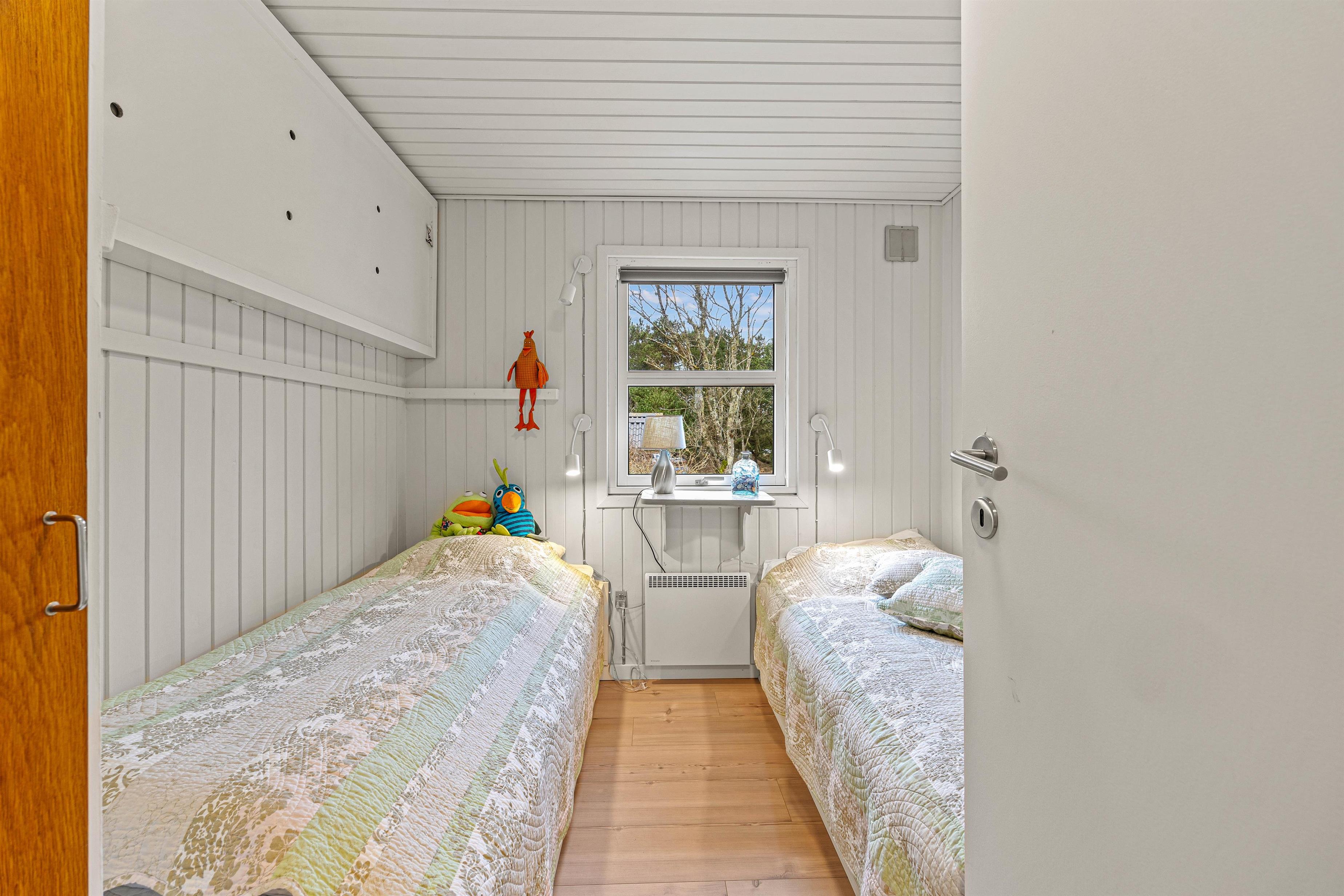 Sommerhusets sovepladser er fordelt over 3 soveværelser. De 2 af værelserne er indrettet med en dobbeltseng hver, og det sidste værelse har 2 enkeltsenge. Den kombinerede vaskemaskine/tørretumbler i sommerhuset kan være jer behjælpelig med at holde jeres vasketøj friskt.