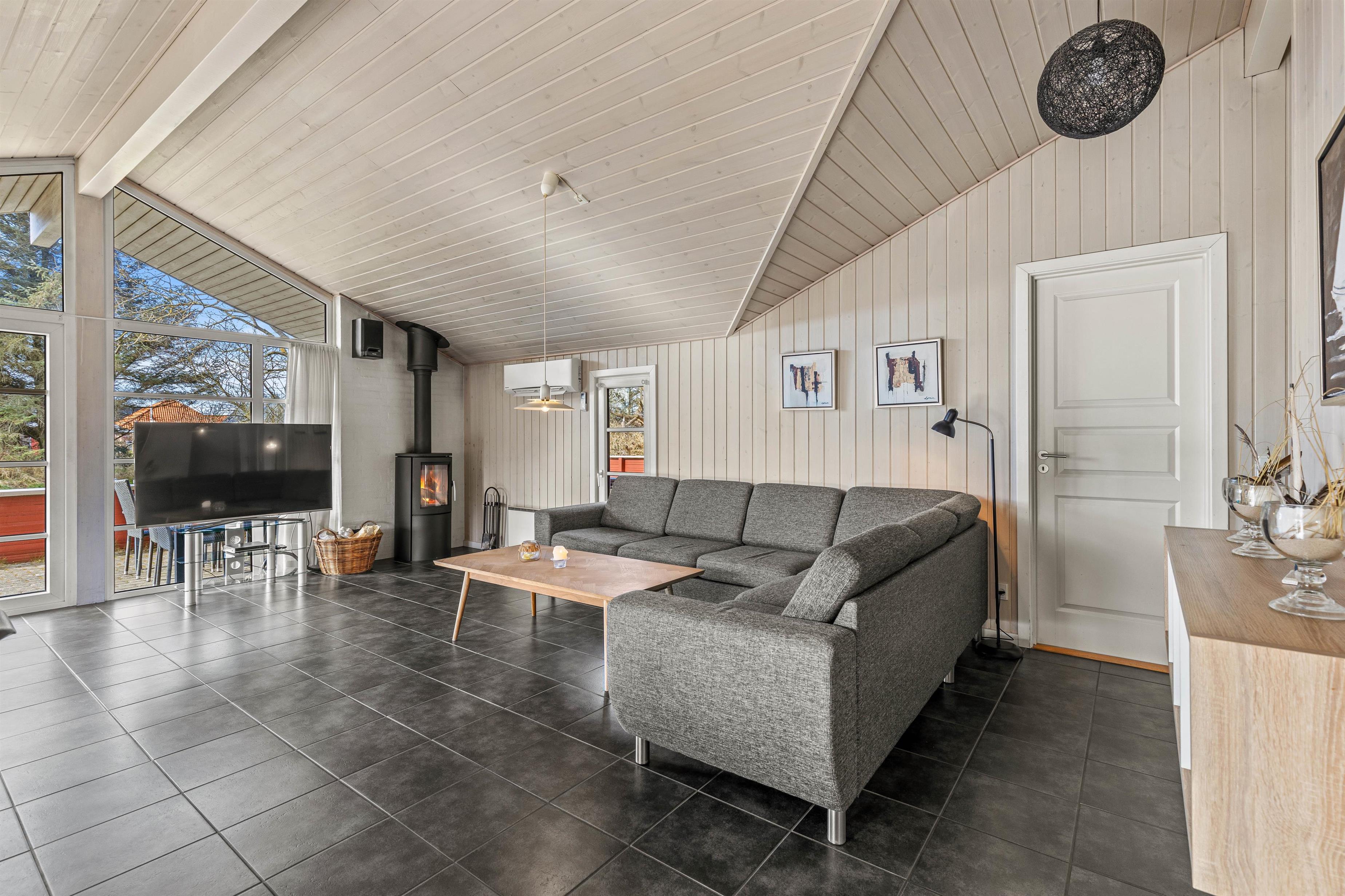 Feriehuset er stilfuldt og lyst, med moderne men kyggelige møbler og den for feriehuse så vigtige hyggeskabende brændeovn. I det moderne køkken er alt til tilberedelsen af lækre måltider, som I kan nyde ved det lange spisebord eller på terrassen.