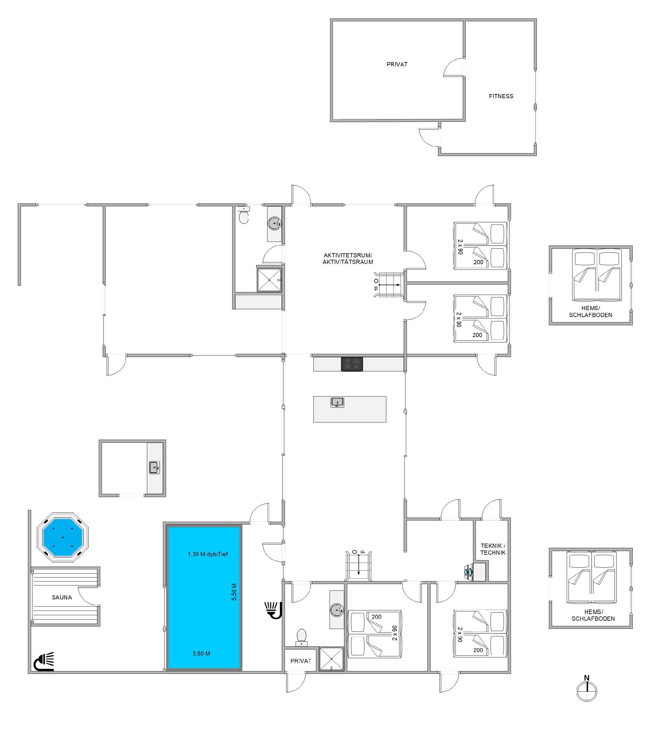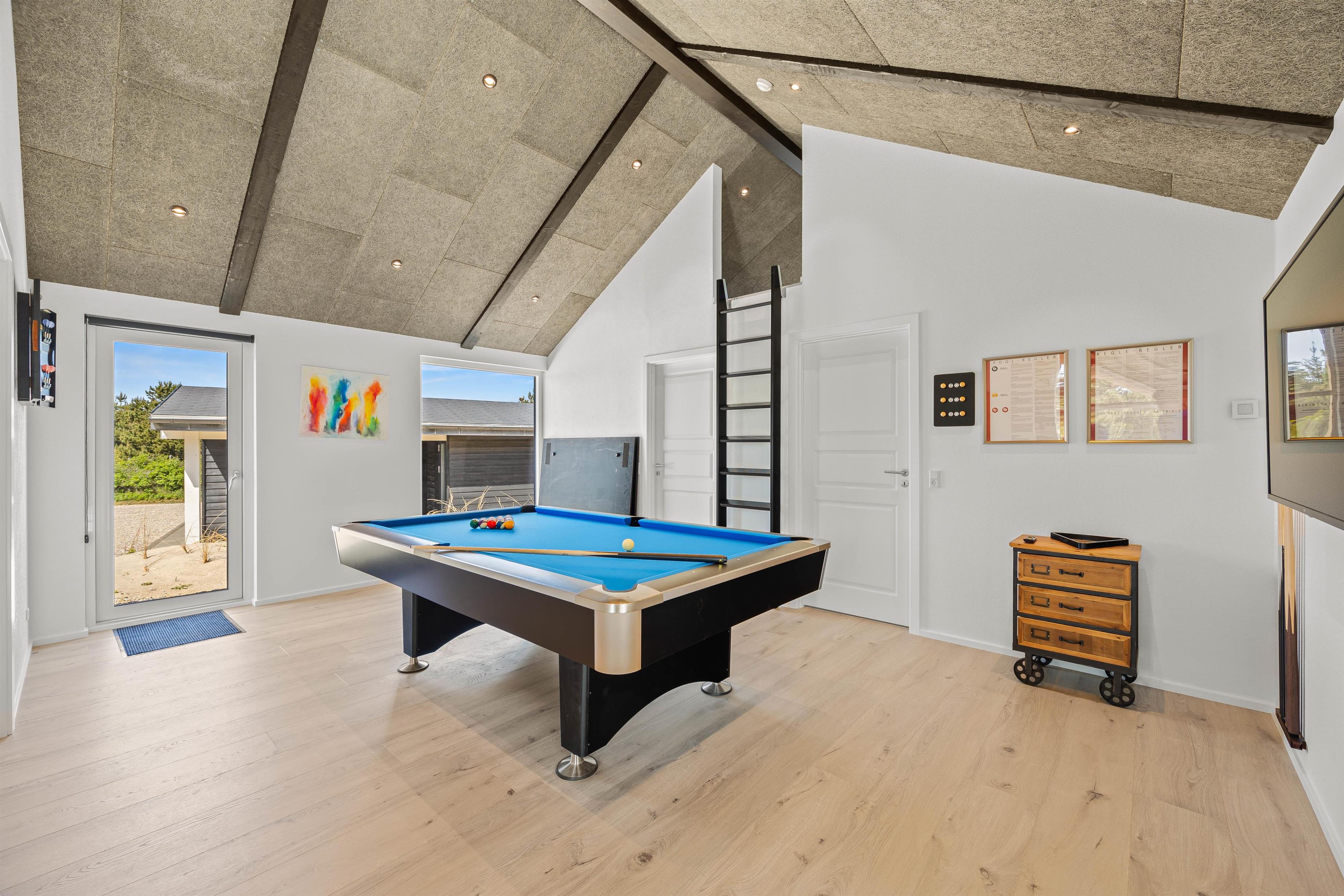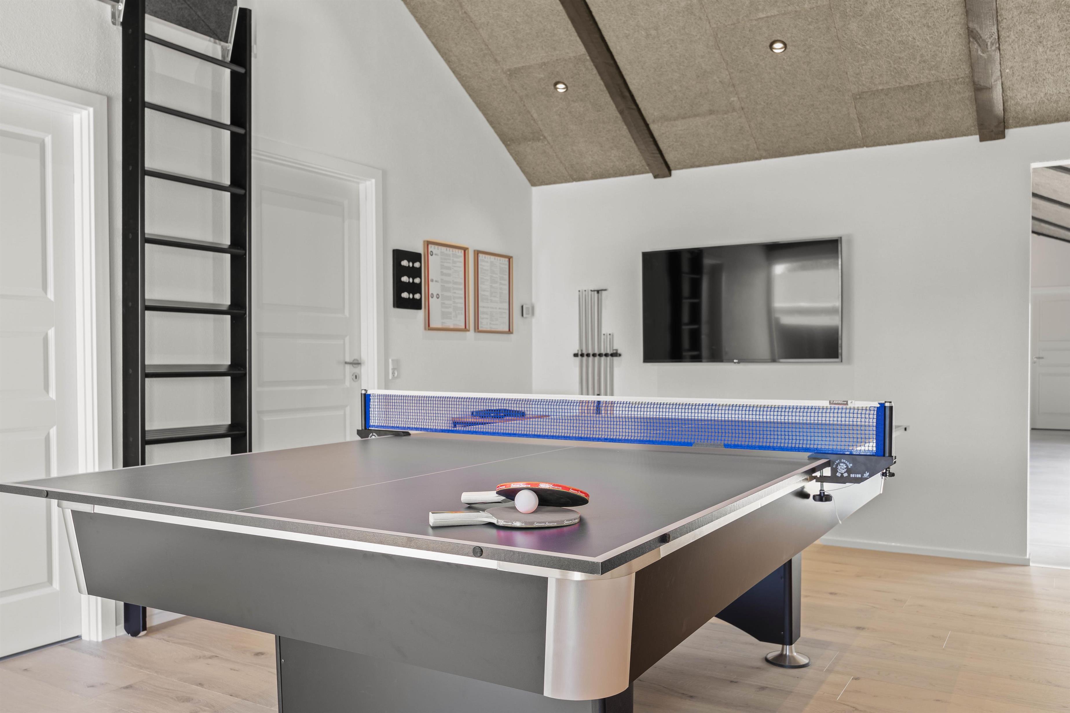 I aktivitetsrummet stimuleres konkurrencegenet med poolbillard, bordtennisbord og dartspil, der er klar til lidt intern konkurrence. De 4 soveværelser er fordelt, så I kan trække jer tilbage til de komfortable dobbeltsenge uden at blive forstyrret af alle andre. Desuden er der 2 hemse, som hver har 2 sovepladser, et oplagt sted at sove for de yngre gæster. De 2 badeværelser med bruseniche og gulvvarme er smukt og enkelt indrettet.