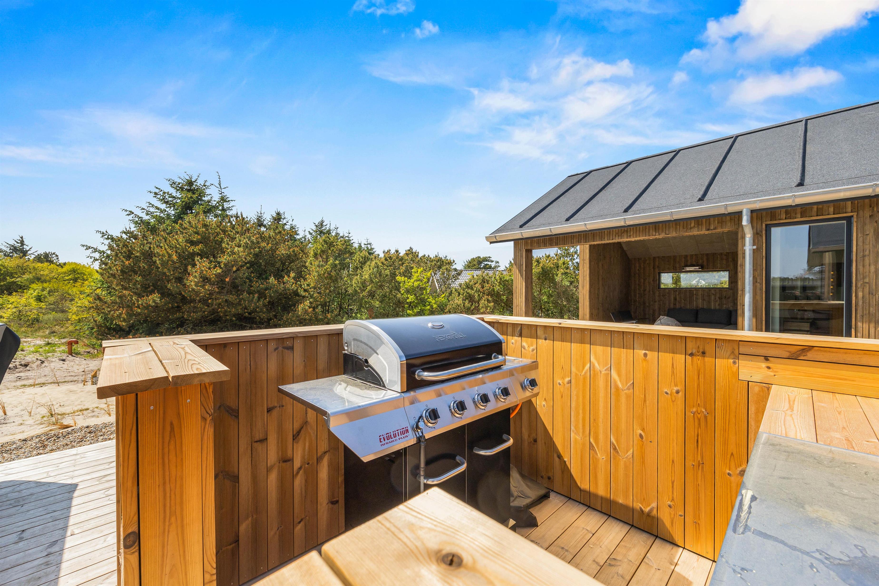 På den overdækkede del af terrassen kan I samles i loungemøblerne i aftentimerne, tænde op i grillen og afslutte dagen med lækker grillmad og en flaske vin. Og skulle der komme en kølig brise, kan I tænde for terrassevarmerne, der er til rådighed på terrassen.