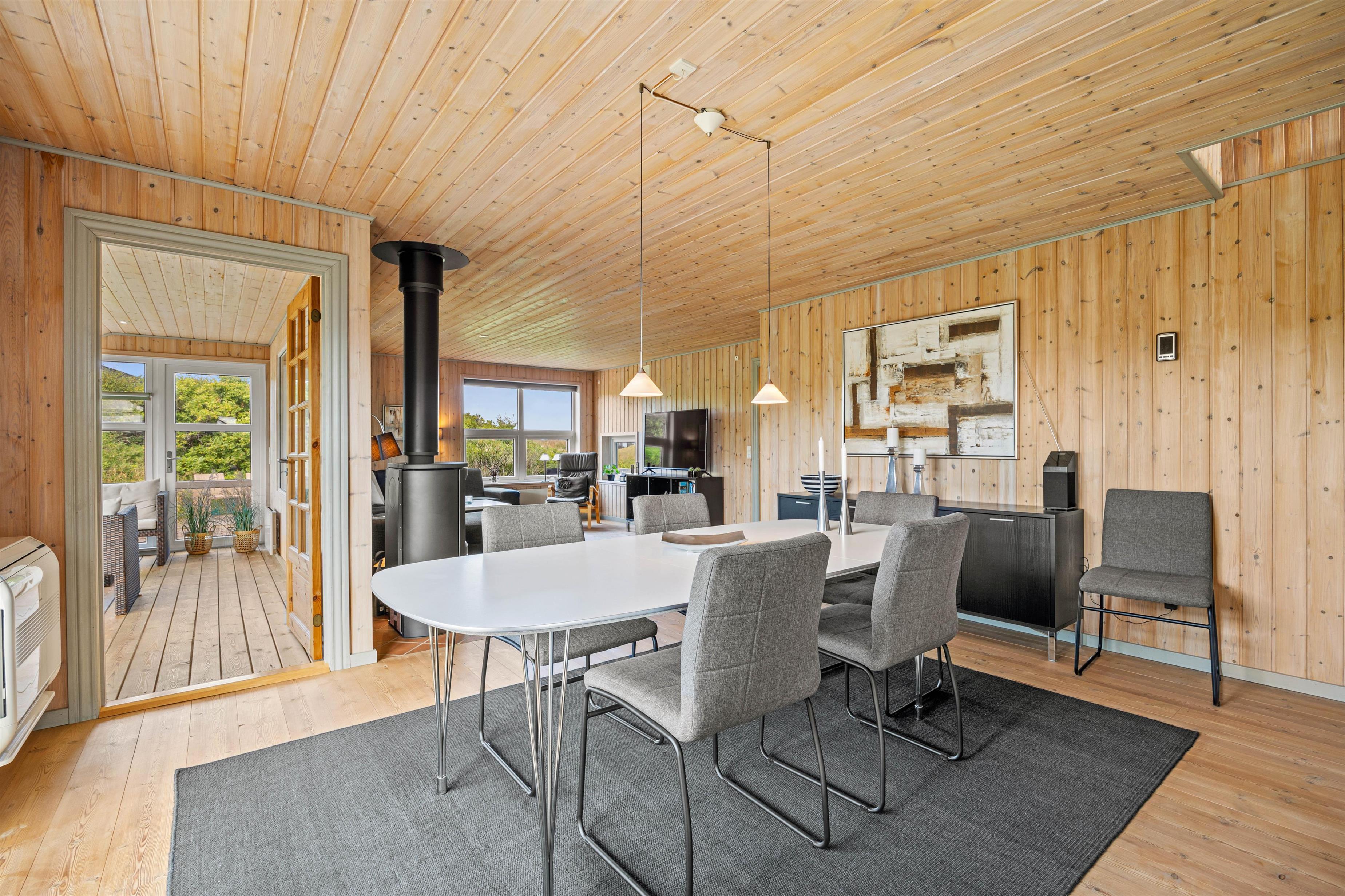 Derudover sørger en energibesparende og støjsvag luft-til-luft varmepumpe for jeres komfort, uanset vejret udenfor. Blandt sommerhusets yderligere faciliteter finder I en fryser på 80 liter og en effektiv opvaskemaskine.