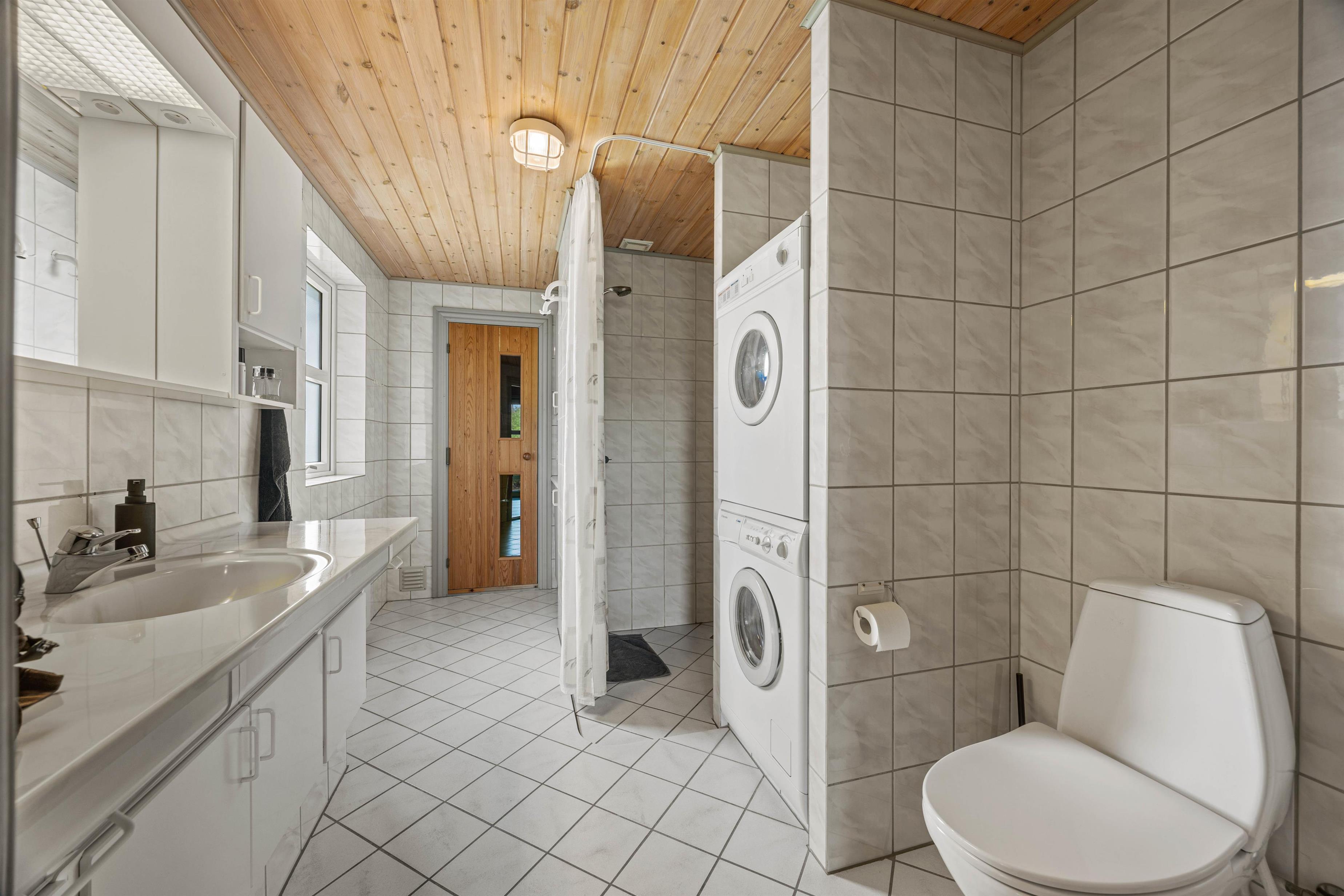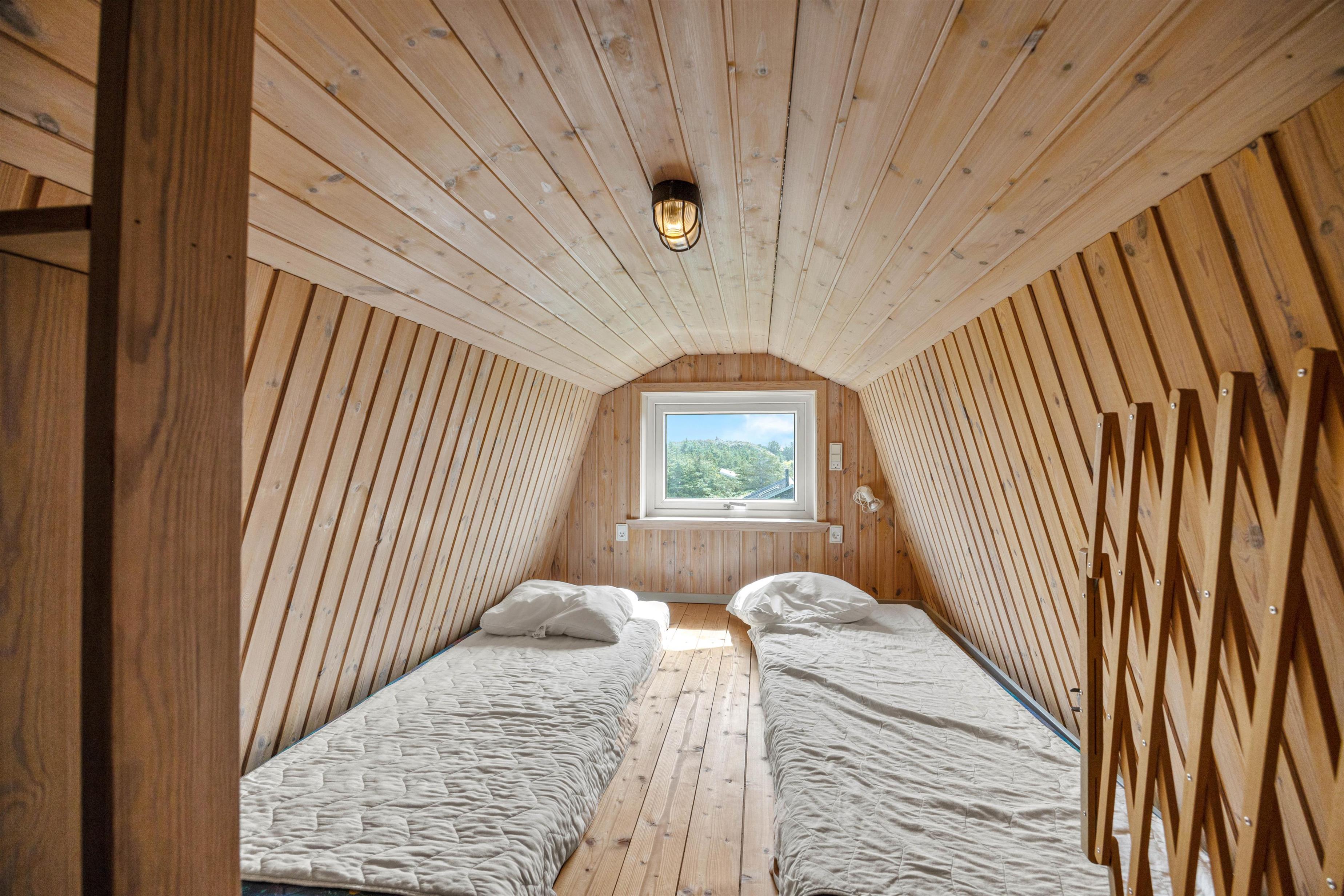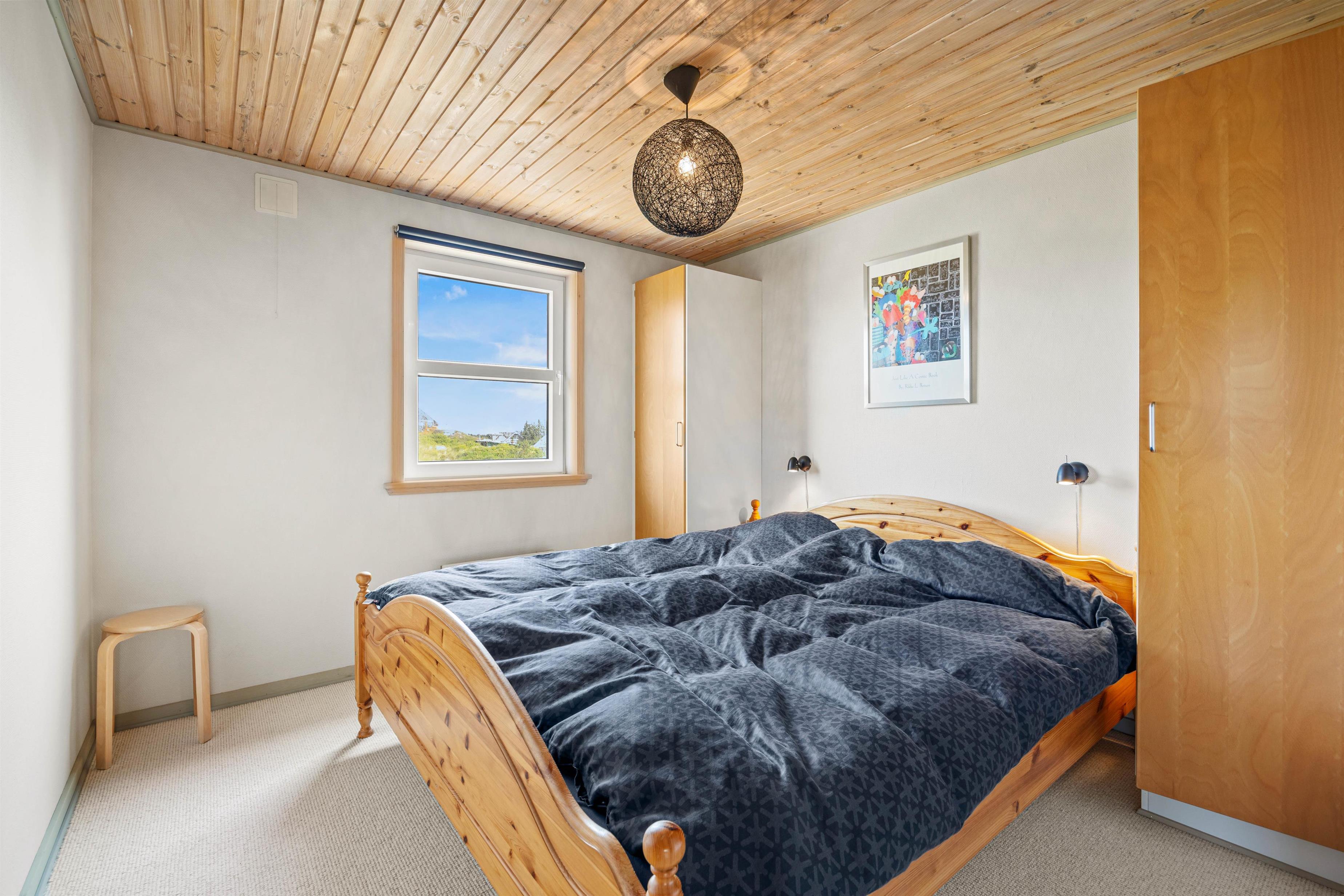 Dette sommerhus byder på 3 rummelige og gode soveværelser, udstyret med dobbeltsenge og enkeltsenge, der sikrer en komfortabel søvn. De 2 yderligere sovepladser findes på den hyggelige hems, hvortil en stejl trappe fører jer op. Efter en dag fyldt med oplevelser kan en tur i saunaen varme kroppen igennem. Saunaen befinder sig i det moderne badeværelse med gulvvarme, hvor også tørretumbler og vaskemaskine befinder sig, for at gøre jeres ophold i dette sommerhus endnu mere bekvem.
