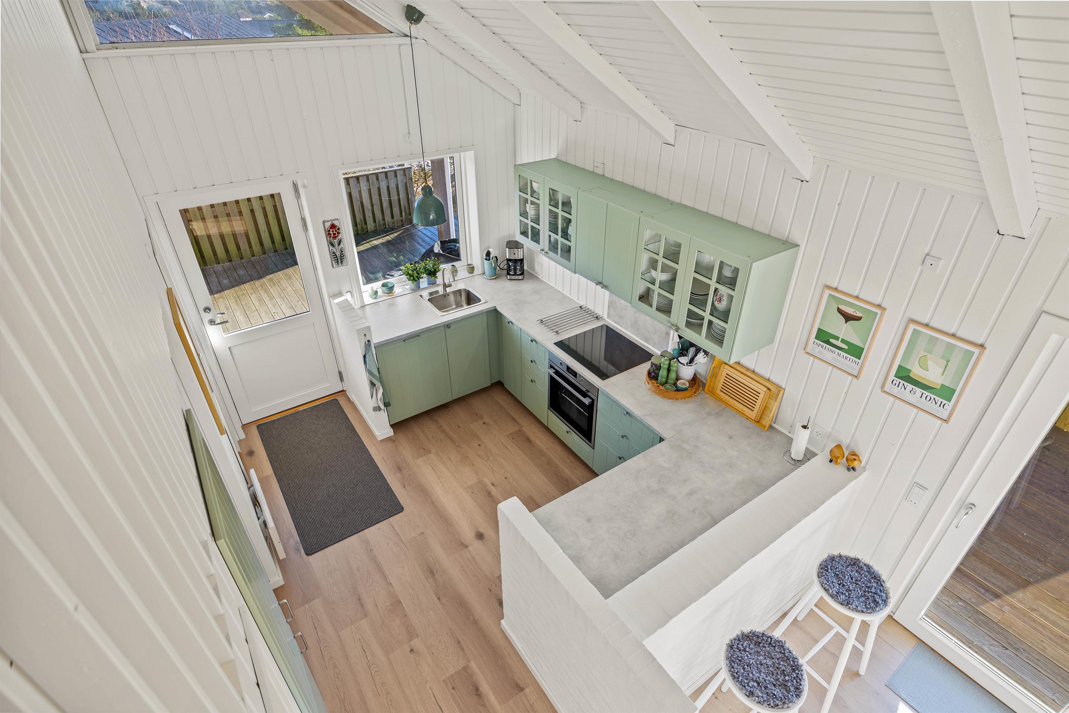 Fra parkeringspladsen fører trappen jer op til sommerhuset. Sommerhuset er gennemrenoveret i 2025 med et nyt og hyggeligt køkken som indeholder alt, hvad I har brug for samt alt i hårde hvidevarer. Ved spisebordet kan I nyde jeres lækre, hjemmelavede retter og eventuelt arrangere en spille aften.