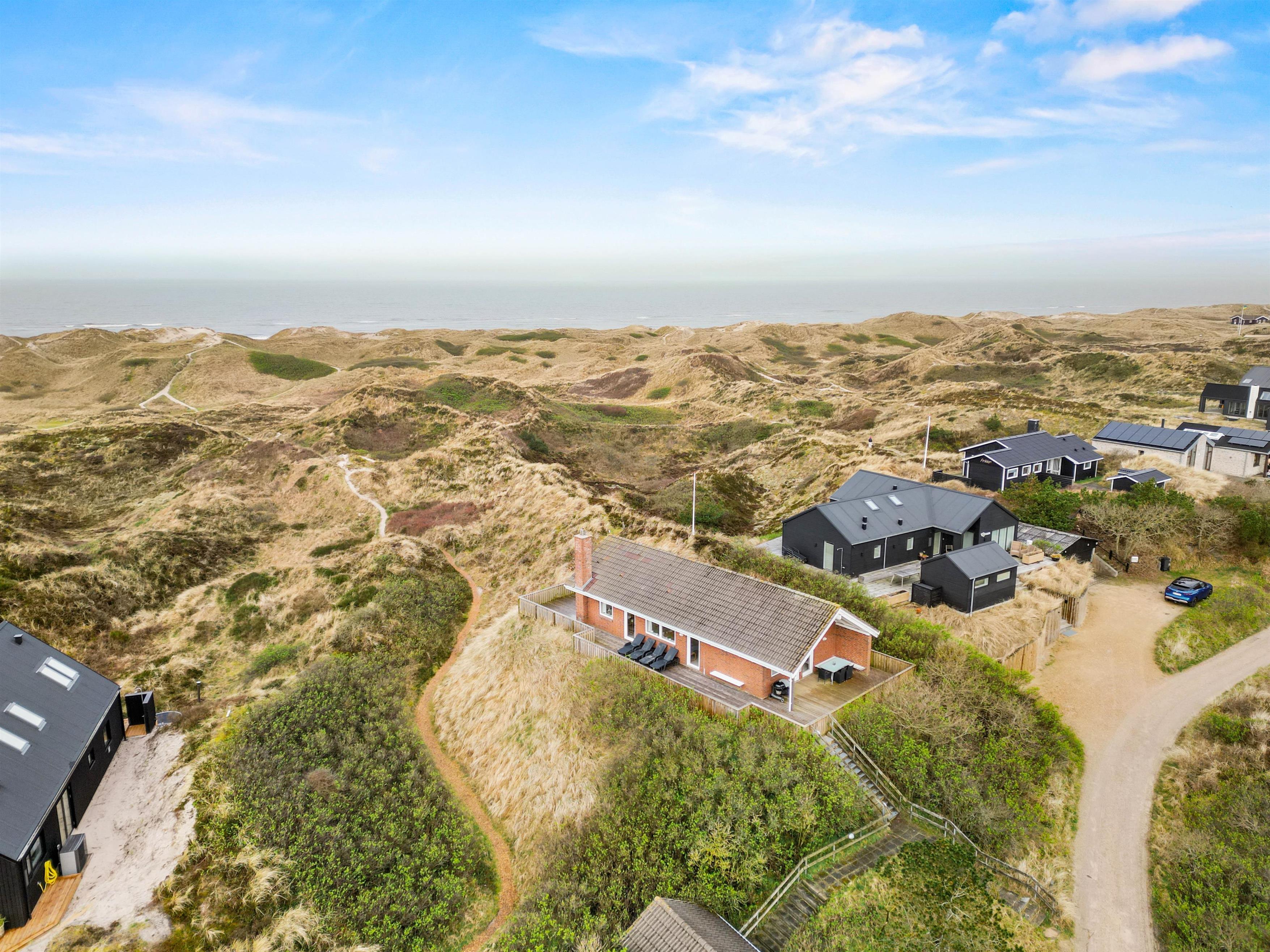 Sommerhuset ligger på en 7500 kvadratmeter klitgrund, så I har alle muligheder for at nyde naturen og omgivelserne. Tænd op i grillen og slut dagen af med et lækkert grillmåltid på terrassen, imens solen går ned bag klitterne, hvor I kan nyde de smukke solnedgange ved Vesterhavet.