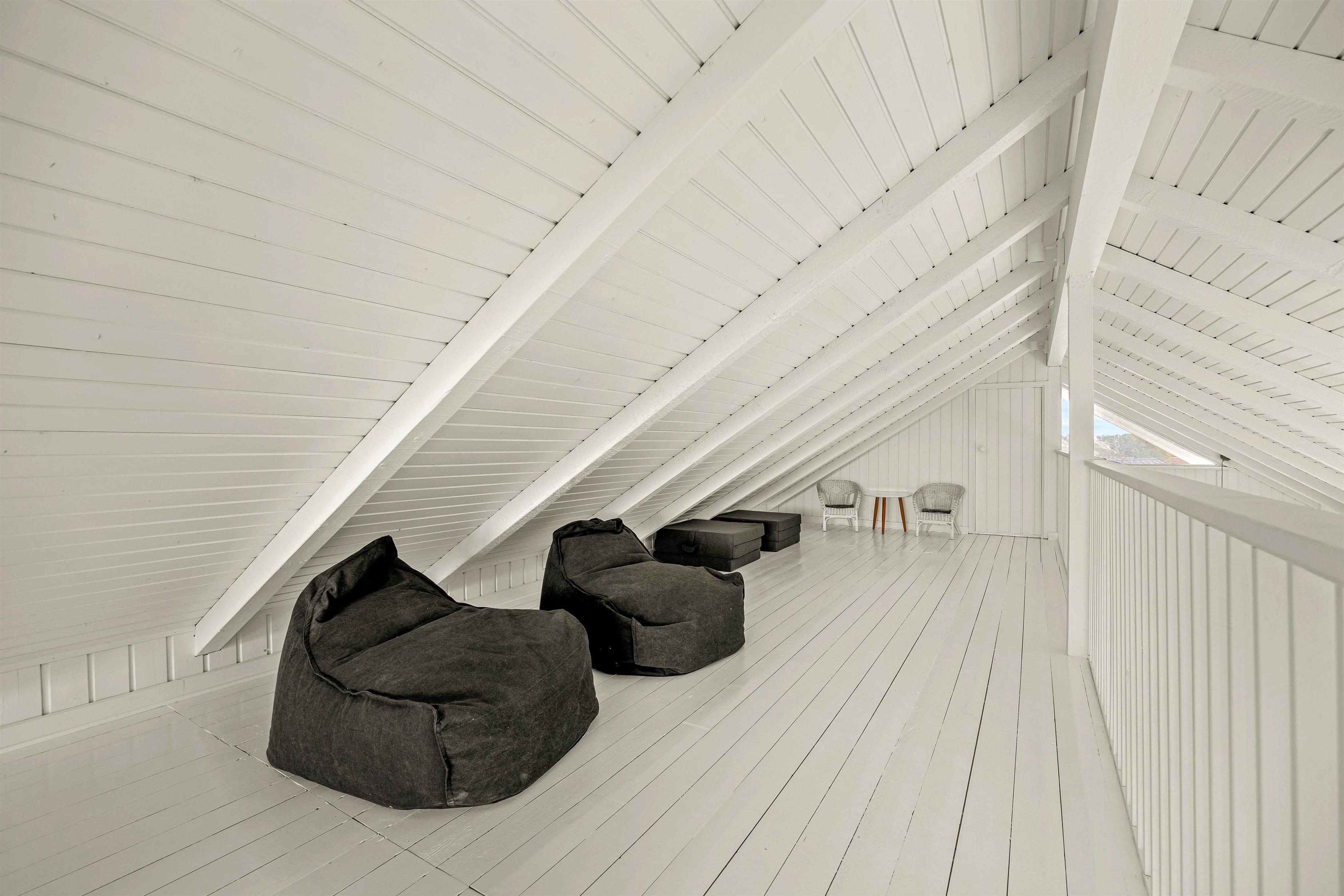 På hemsen er gulvet hvidmalet, hvor I kan sidde og nyde den smukke panoramaudsigt og solnedgang med en dejlig kop kaffe eller et godt glas vin.