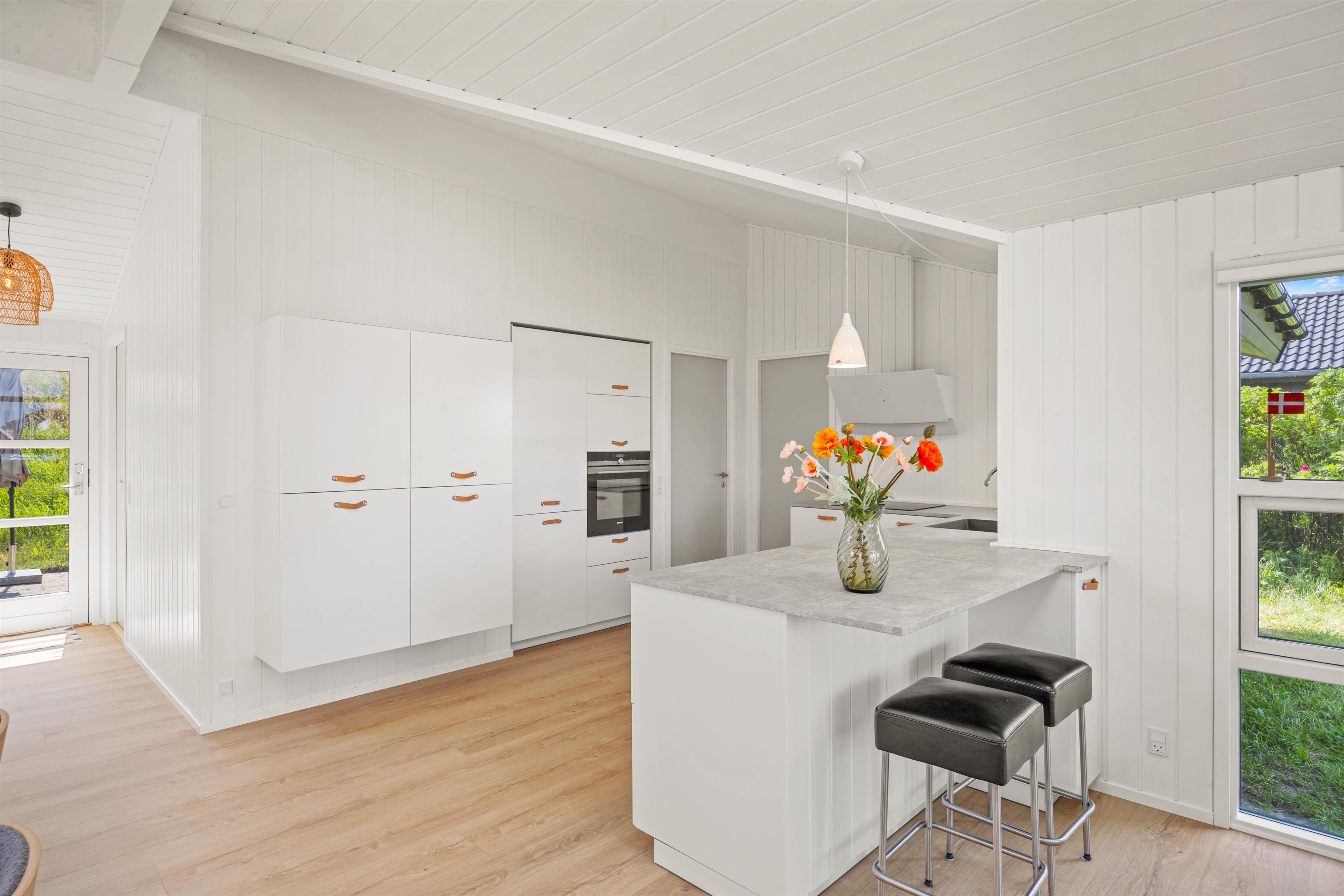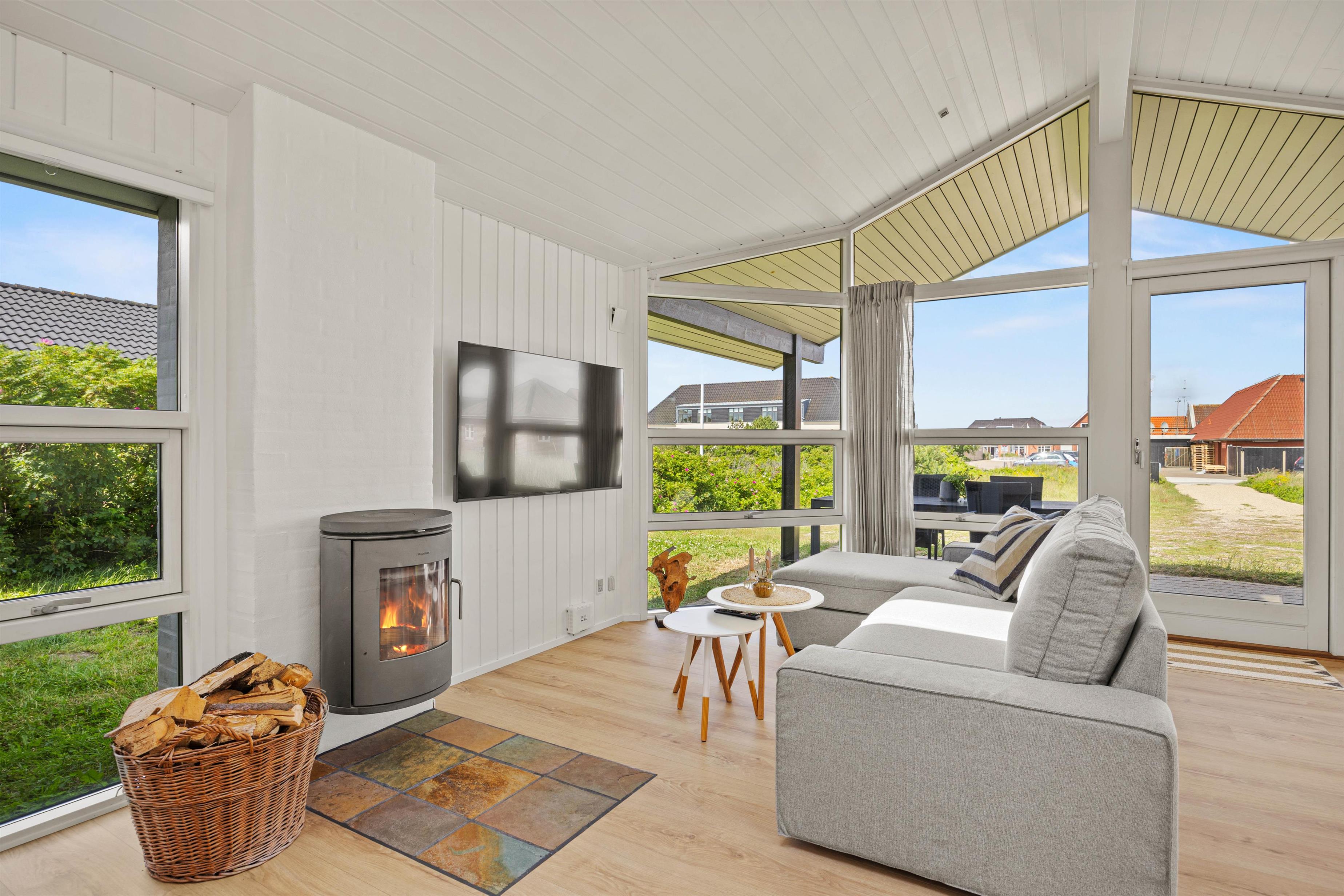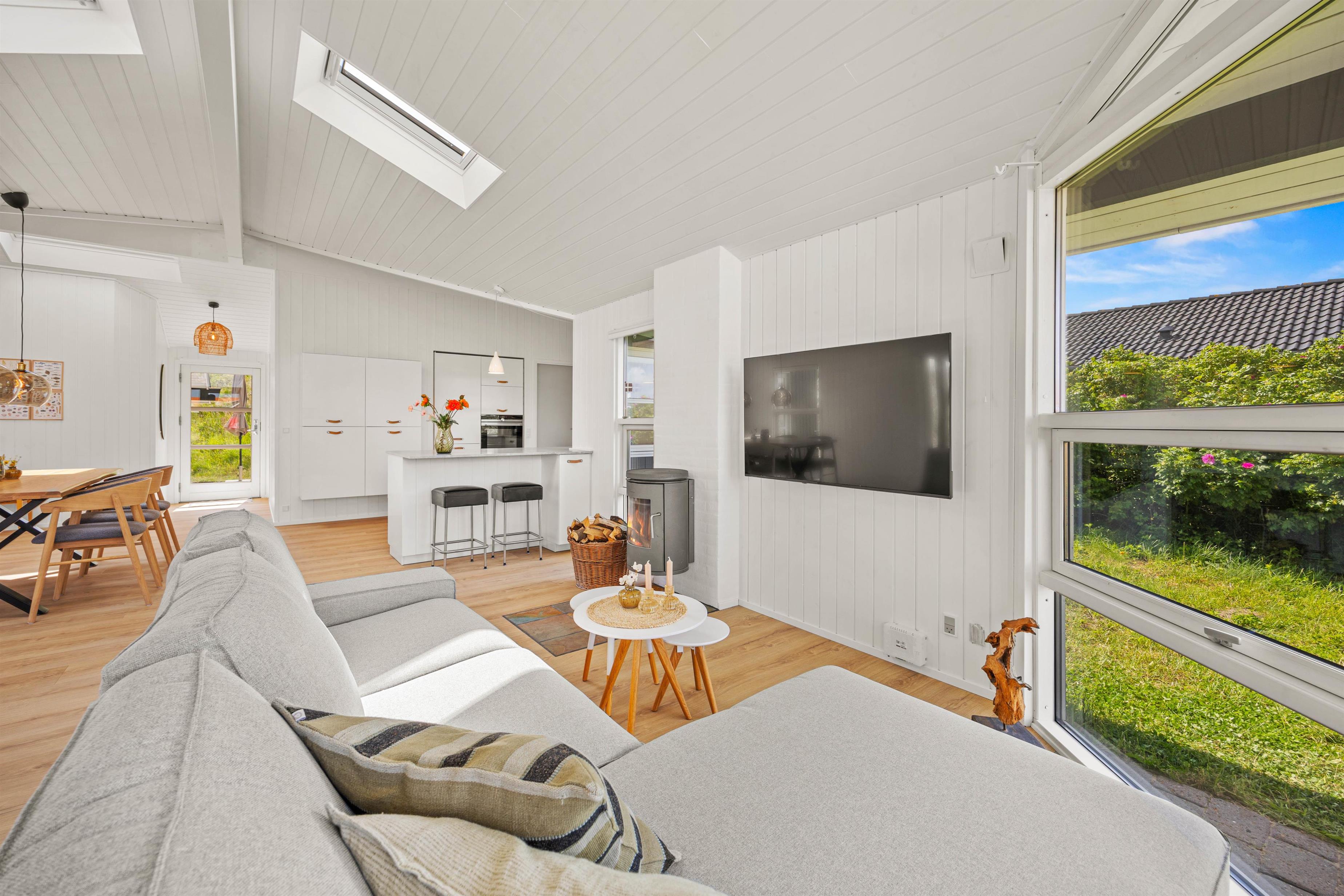 Sommerhuset på 95 m2 er renoveret i 2025, og med moderne faciliteter samt en lys og indbydende atmosfære kan I nyde jeres ophold til fulde. Den hyggelige brændeovn skaber en varm og indbydende stemning på de køligere aftener. Det åbne opholdsområde med et Android Smart Tv - med indbygget Chromecast-Google TV - giver jer mulighed for underholdning eller afslapning efter en dag fyldt med oplevelser.