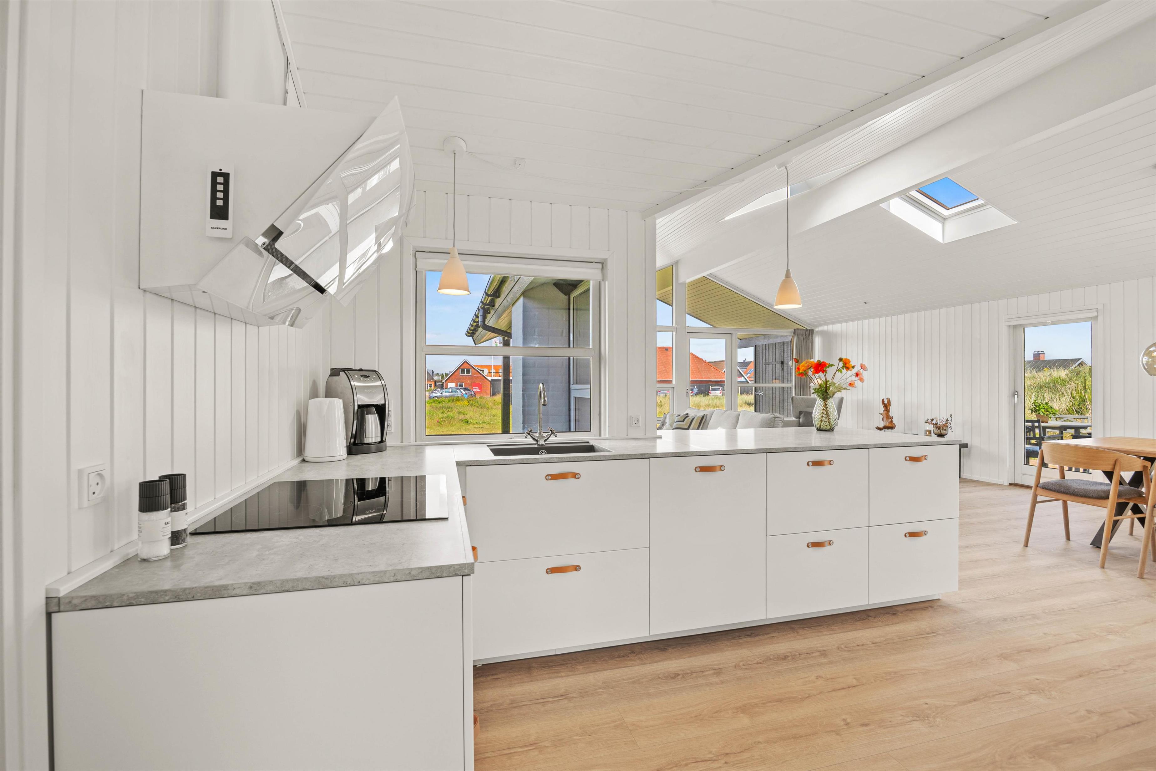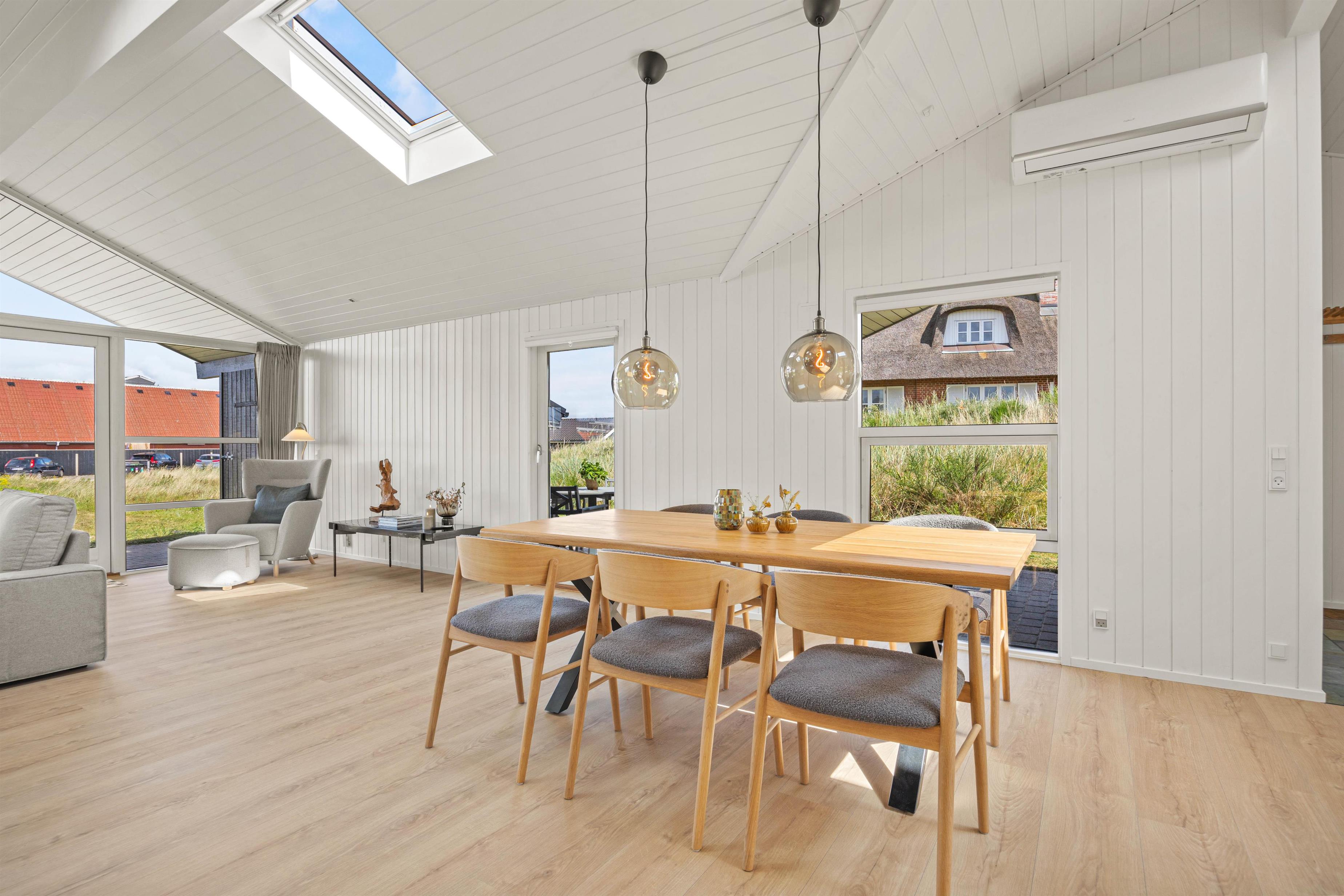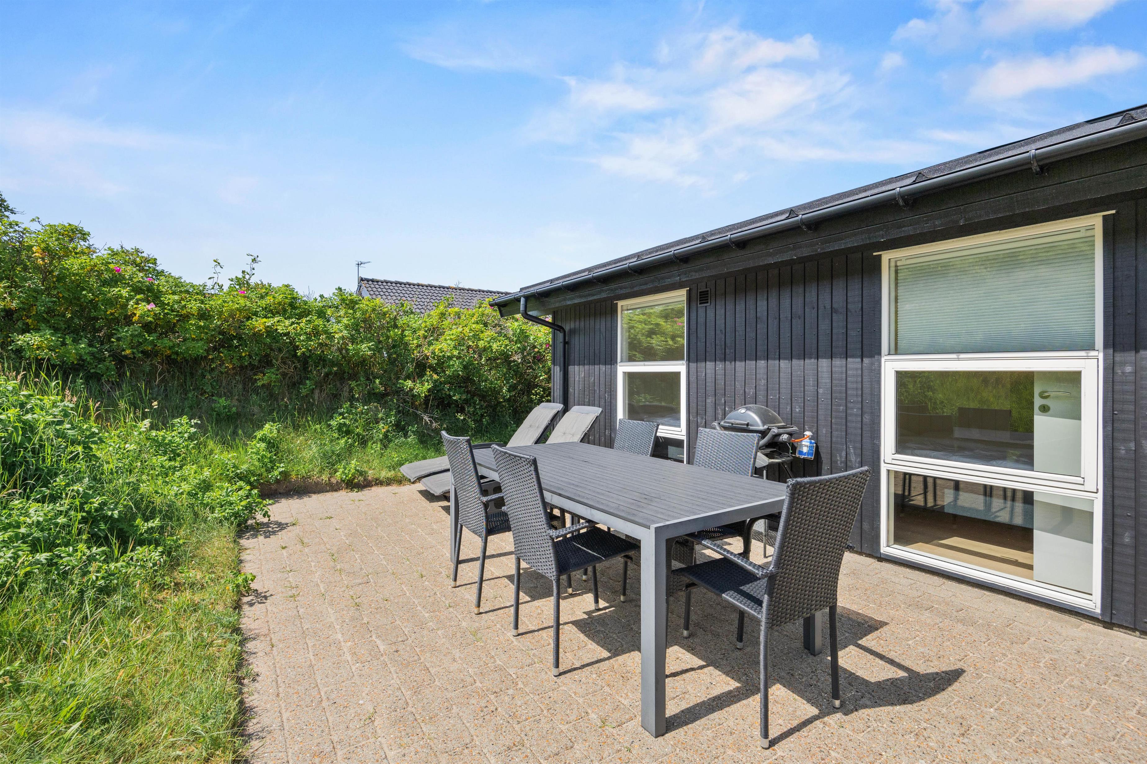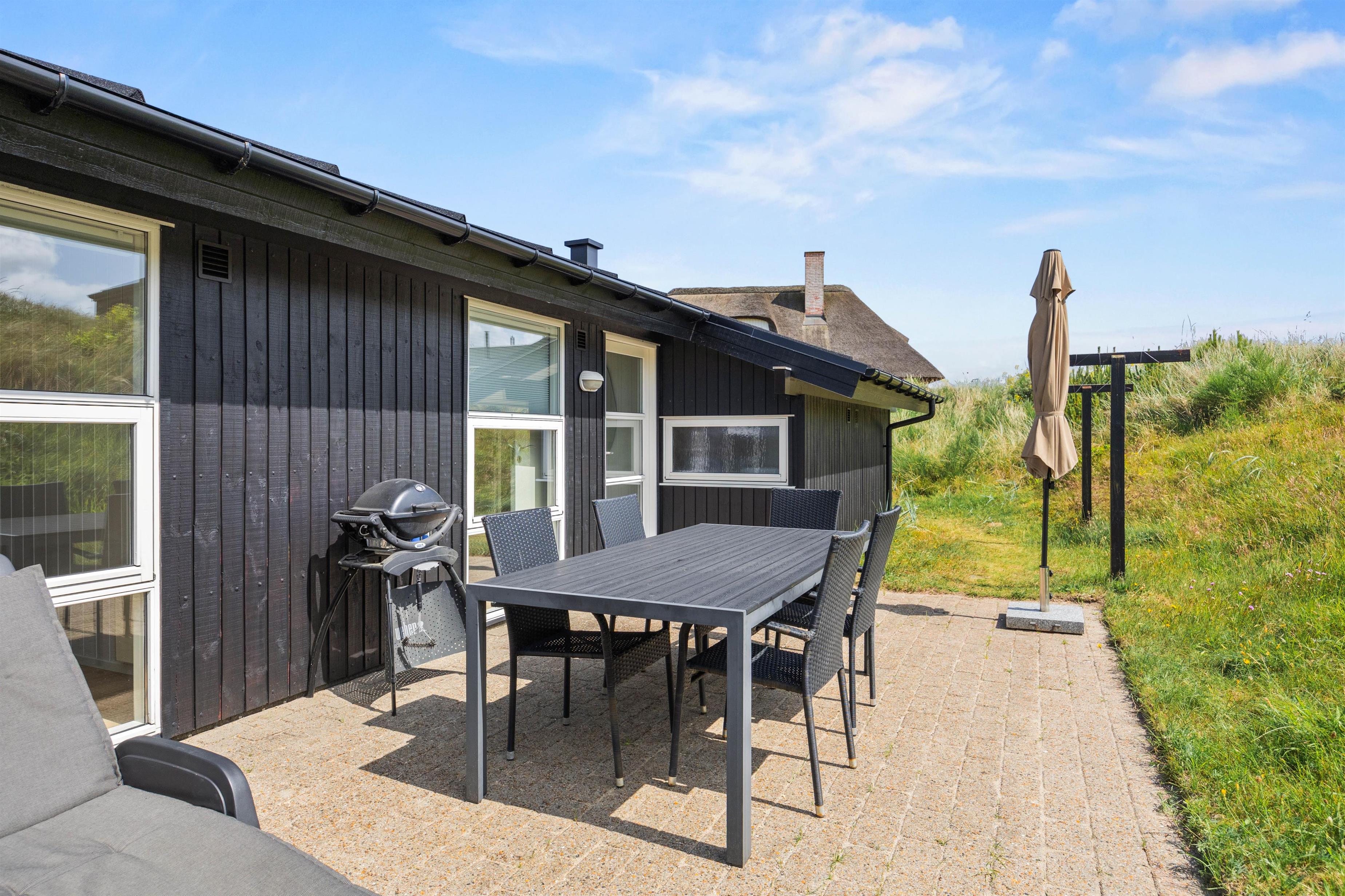 Med blot 300 meter til det betagende Vesterhav og en beliggenhed omgivet af de smukke klitter, udgør dette sommerhus den perfekte ramme for jeres ferie. I kan nyde jeres morgenkaffe på den åbne terrasse eller I kan tage frokosten på den overdækkede terrasse, skulle vejret drille. Med havemøbler til rådighed er det nemt at arrangere hyggelige grillmiddage og sociale stunder under åben himmel.