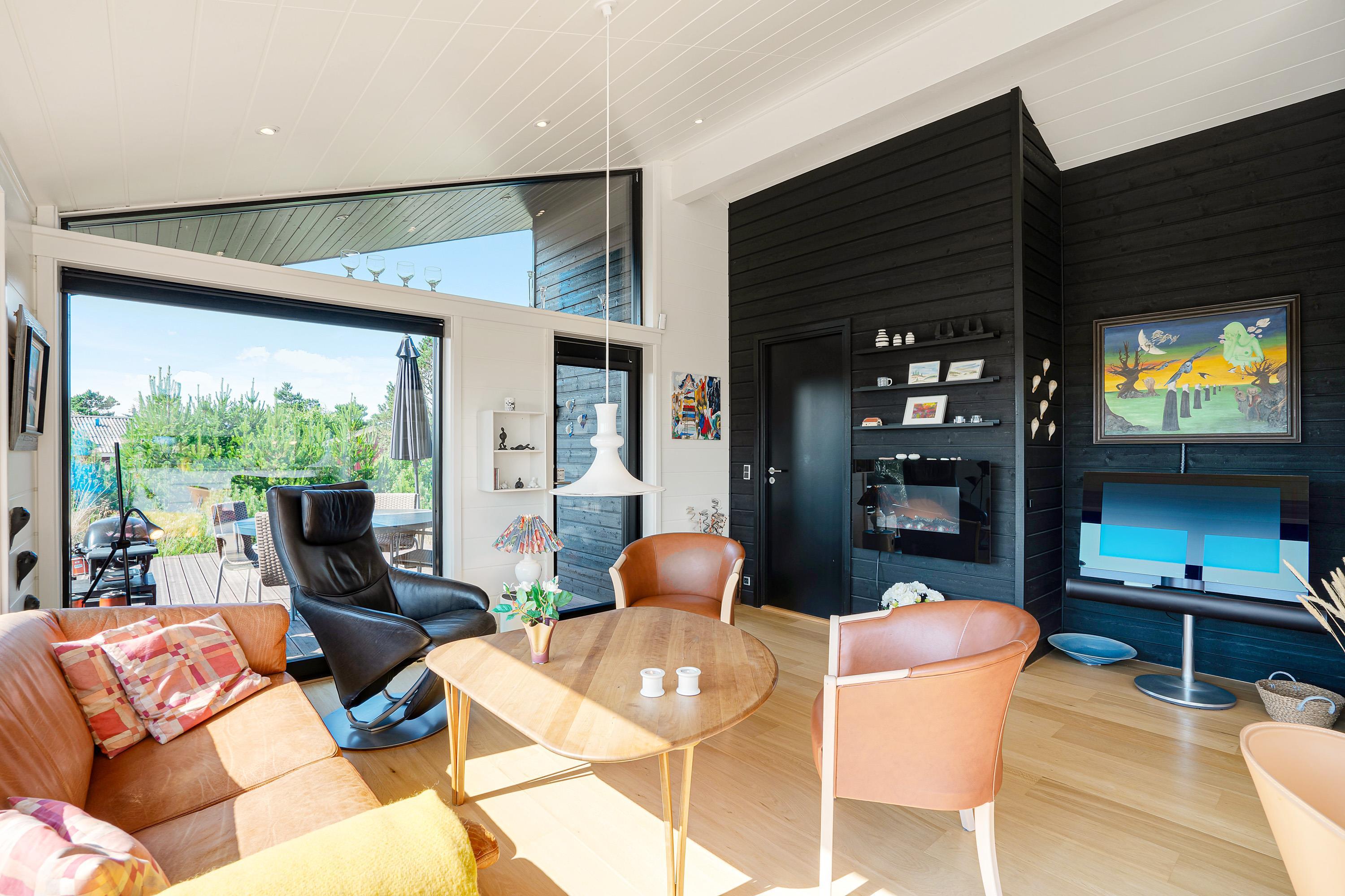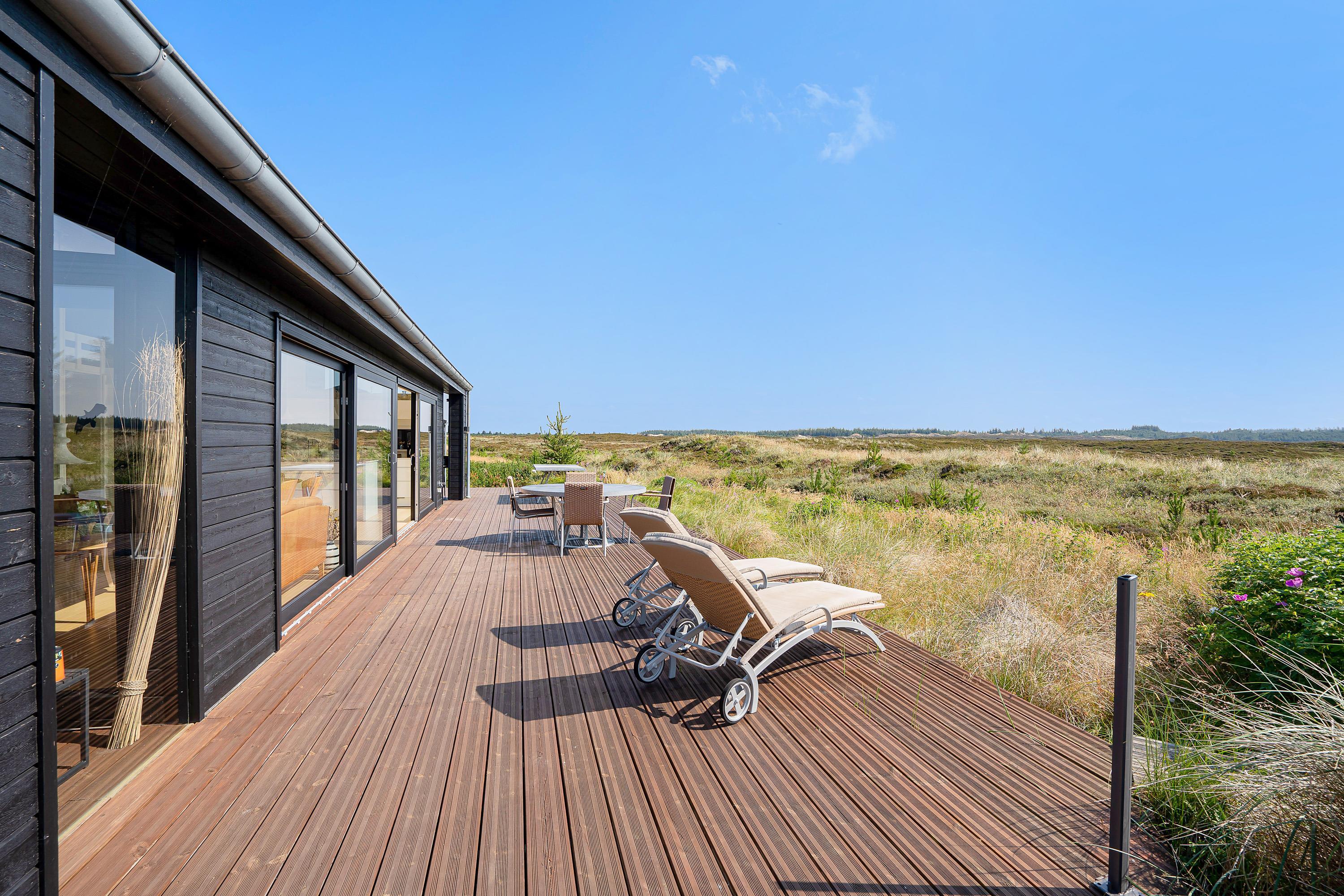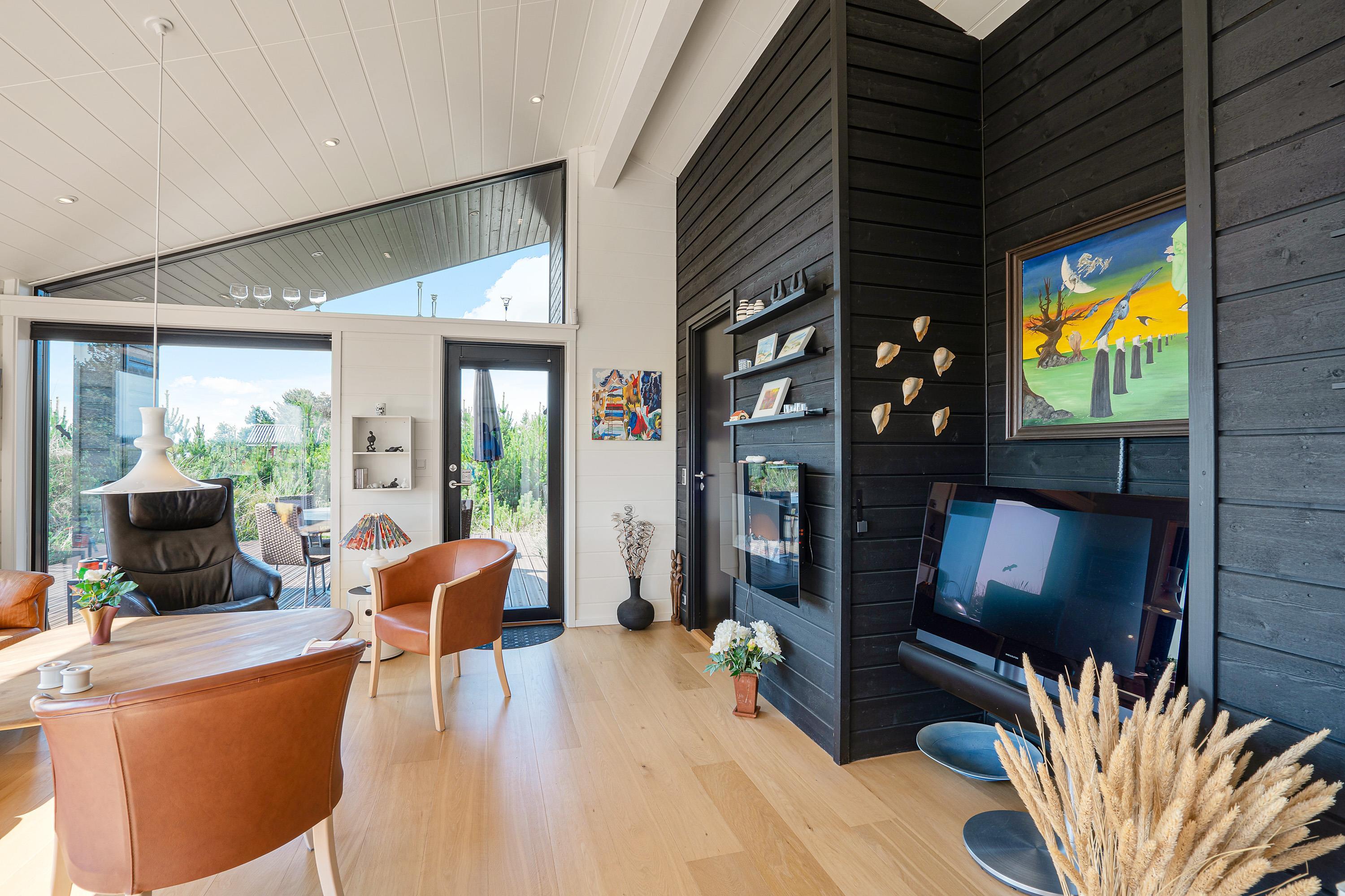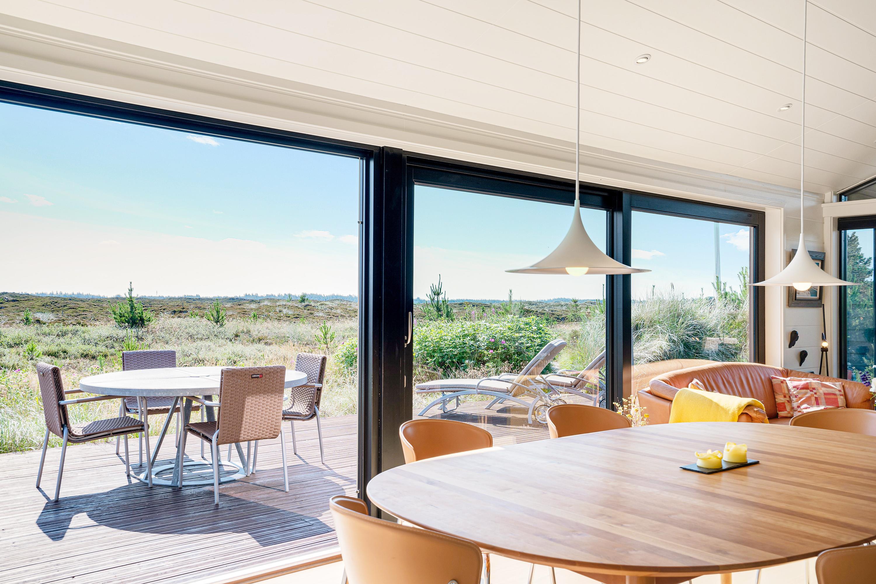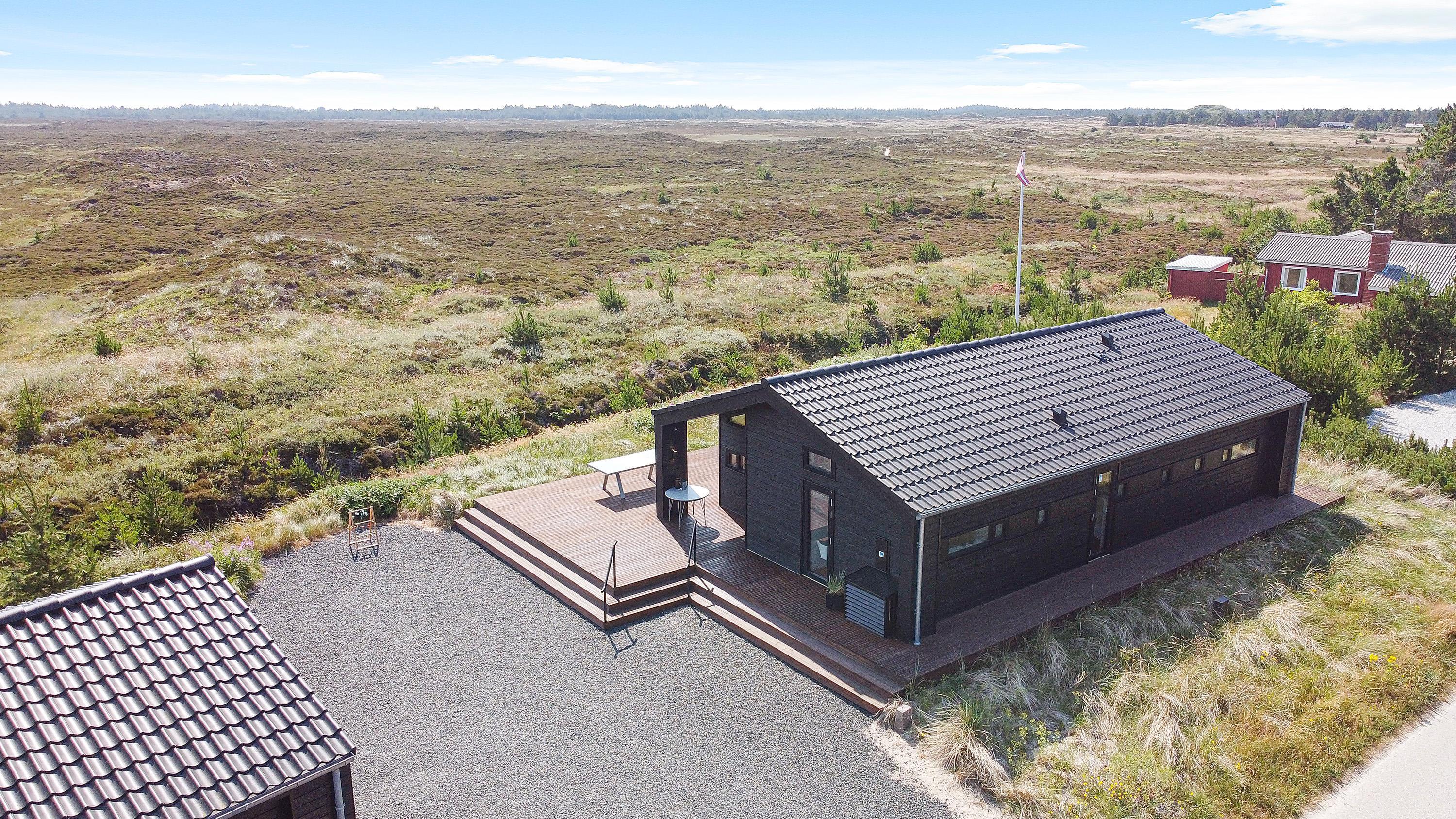 I den skønne badeby Henne Strand finder I på Gøgevej 34 dette moderne sommerhus med plads til 6 personer. Herfra er der ikke langt til hverken stranden eller butikkerne, for det hele er i gåafstand fra adressen. Samtidig er der heller ikke langt til det skønne hedeområde, for det starter allerede lige udenfor jeres dør. De store vinduer fra køkkenalrummet har en vidunderlig udsigt over det store åbne område, og i horisonten er der blot træer og skov.