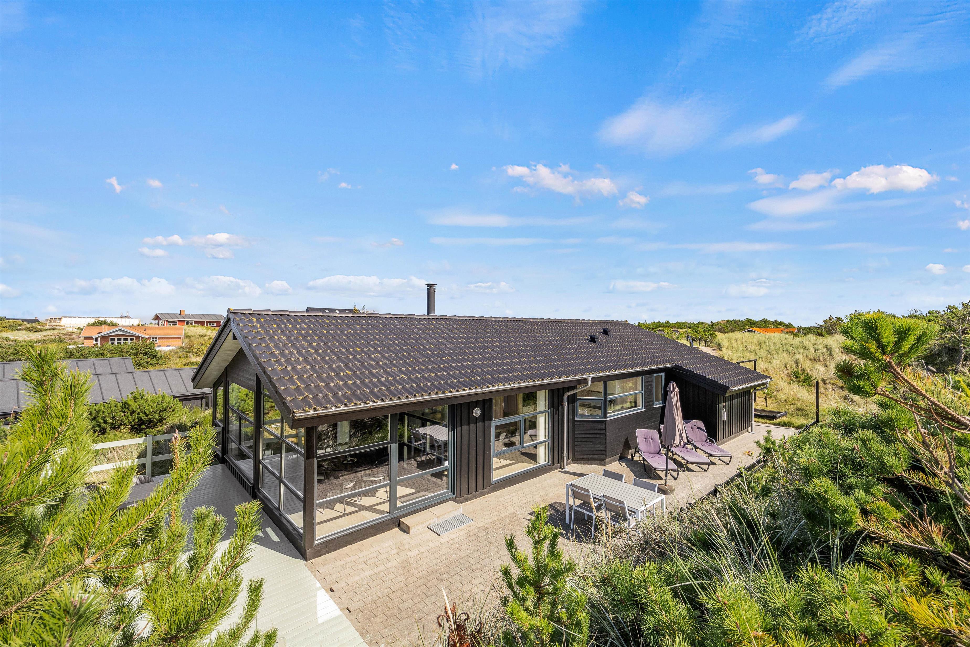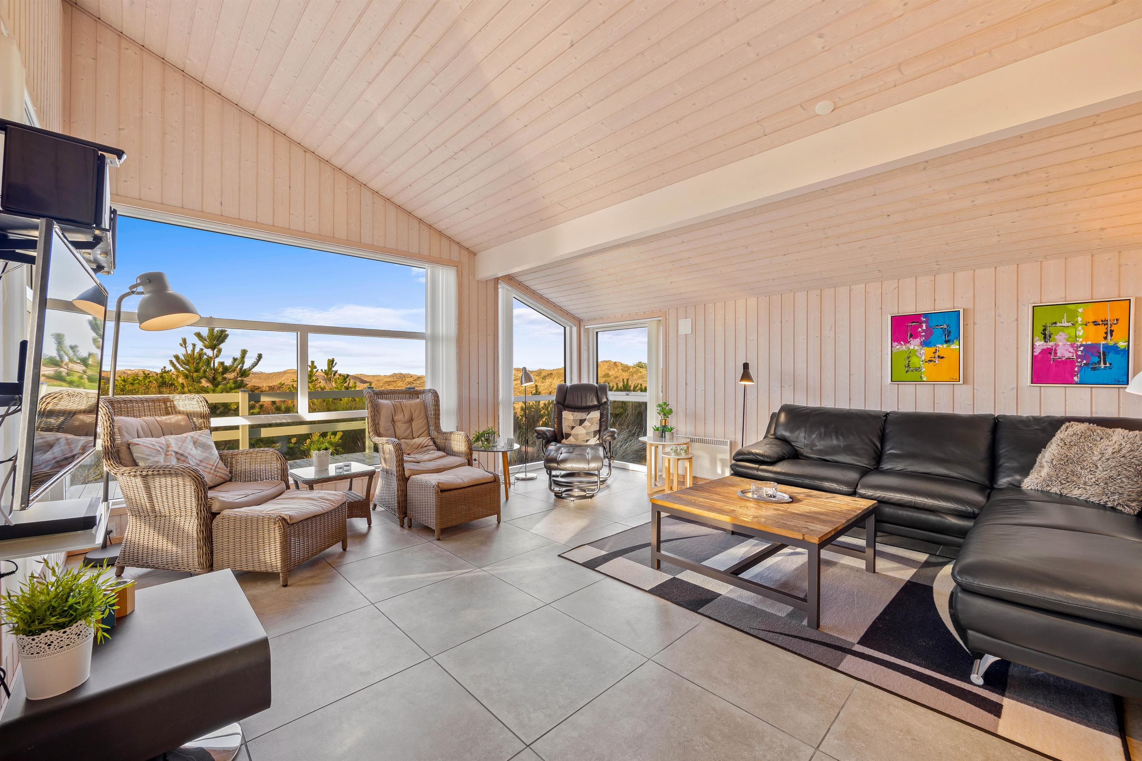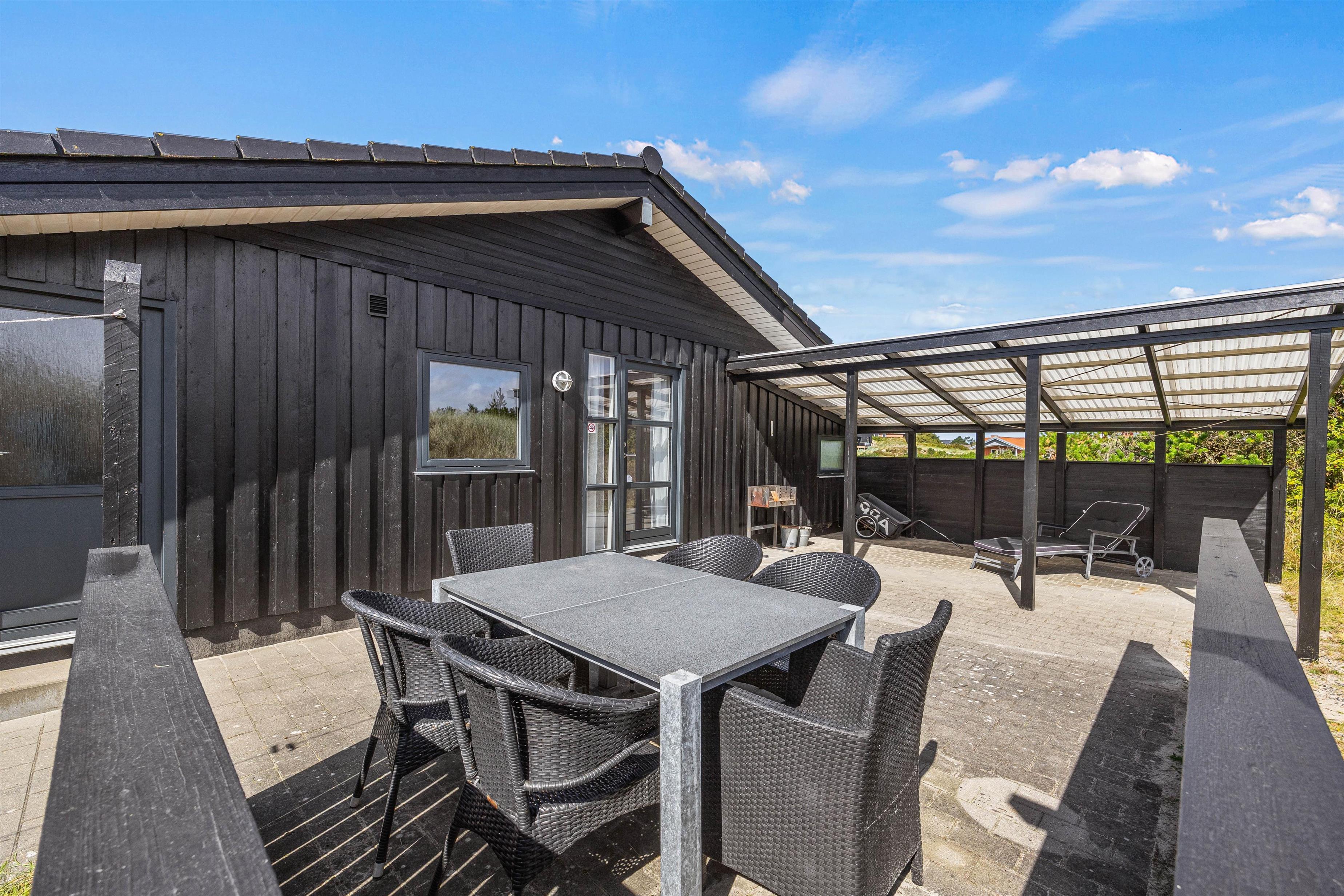 På terrassen kan I flytte jer rundt efter solens stilling på himlen. Der er både en afskærmet del, hvor I kan solbade og føle jer private, og en åben del med siddeplads, hvor I har den skønneste udsigt over naturgrunden og klitlandskabet. I har kun en kort gåtur til stranden, så tag en dukkert i løbet af dagen, kom tilbage til sommerhuset og bliv varmet igennem af solen eller i saunaen. Tænd op i grillen til aften, og nyd et lækkert grillmåltid sammen. I kan gå op på toppen af en klit eller ned på stranden for at nyde solnedgangen i Vesterhavet – det er en oplevelse – hver gang.