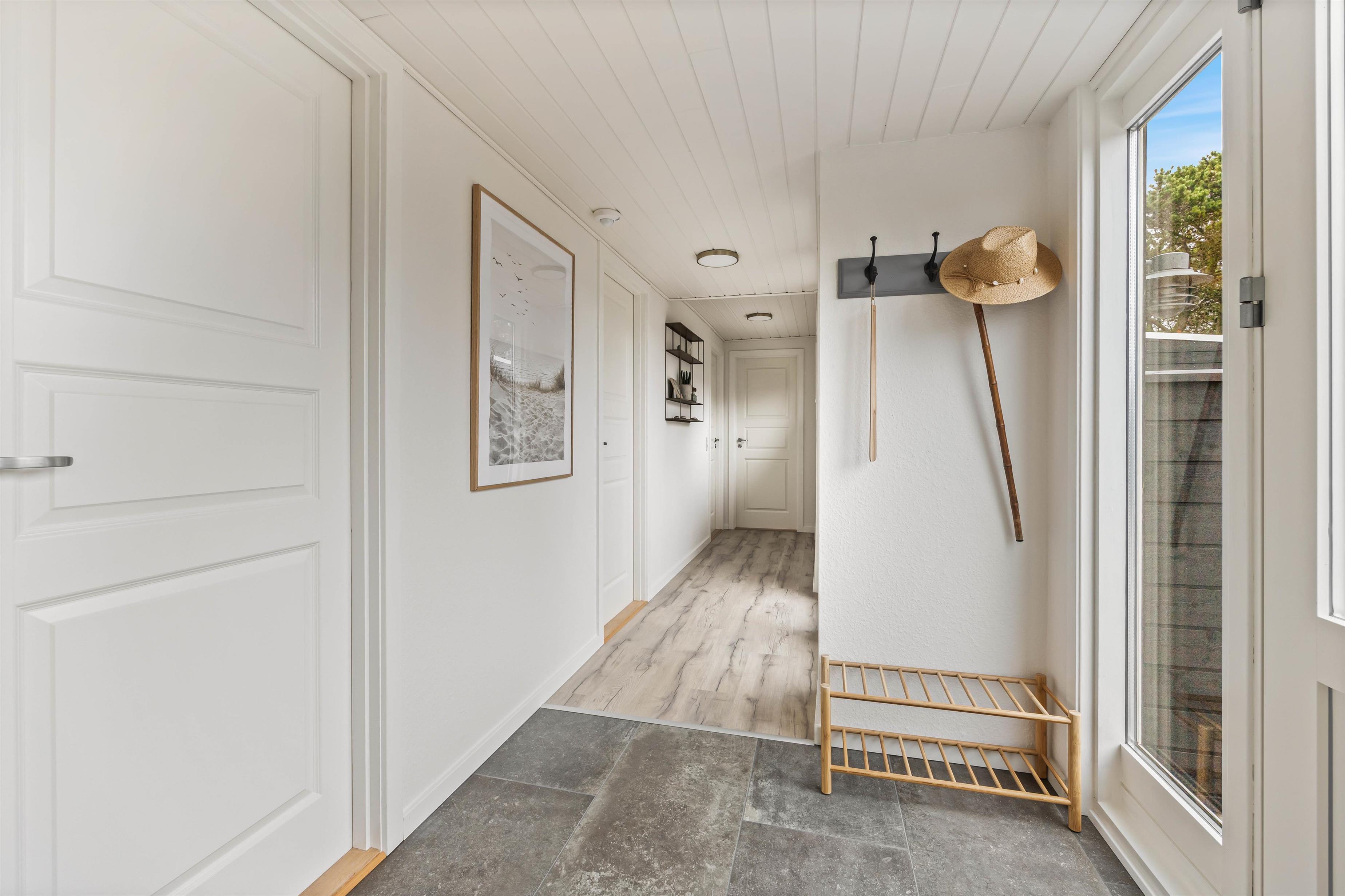 Allerede når I tager første skridt ind i sommerhuset på Rylevej 1 i Henne Strand, vil I blive mødt af sommerhusets indbydende og moderne indretning. Her er der desuden et skønt lysindfald, der komplimenterer indretningen og er med til at skabe den rette ferieatmosfære.