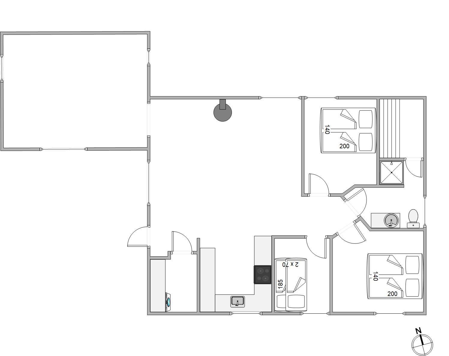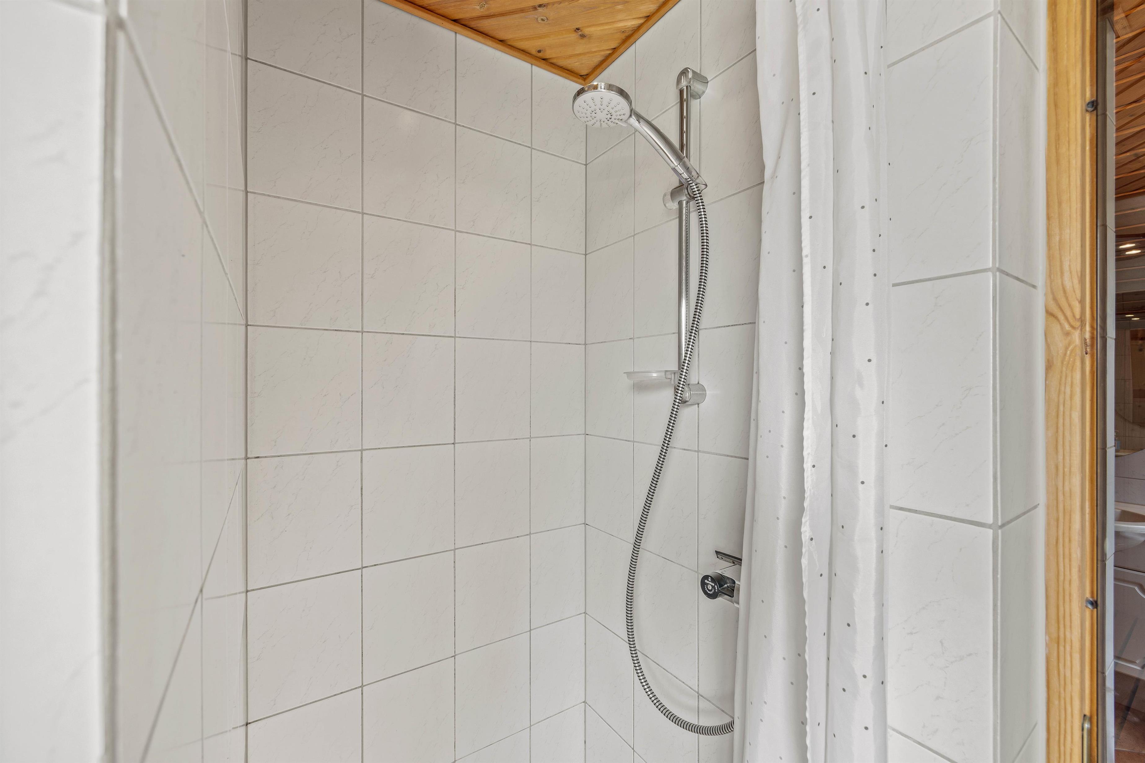 Badeværelset har gulvvarme og her er der adgang til saunaen, som er helt perfekt efter lange gåture i naturen. Her kan I blive varmet igennem og glemme hverdagen for en stund. Foruden badeværelset med sauna er der 3 soveværelser, hvoraf det ene har en køjeseng – et højdepunkt for børnene!