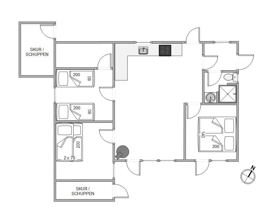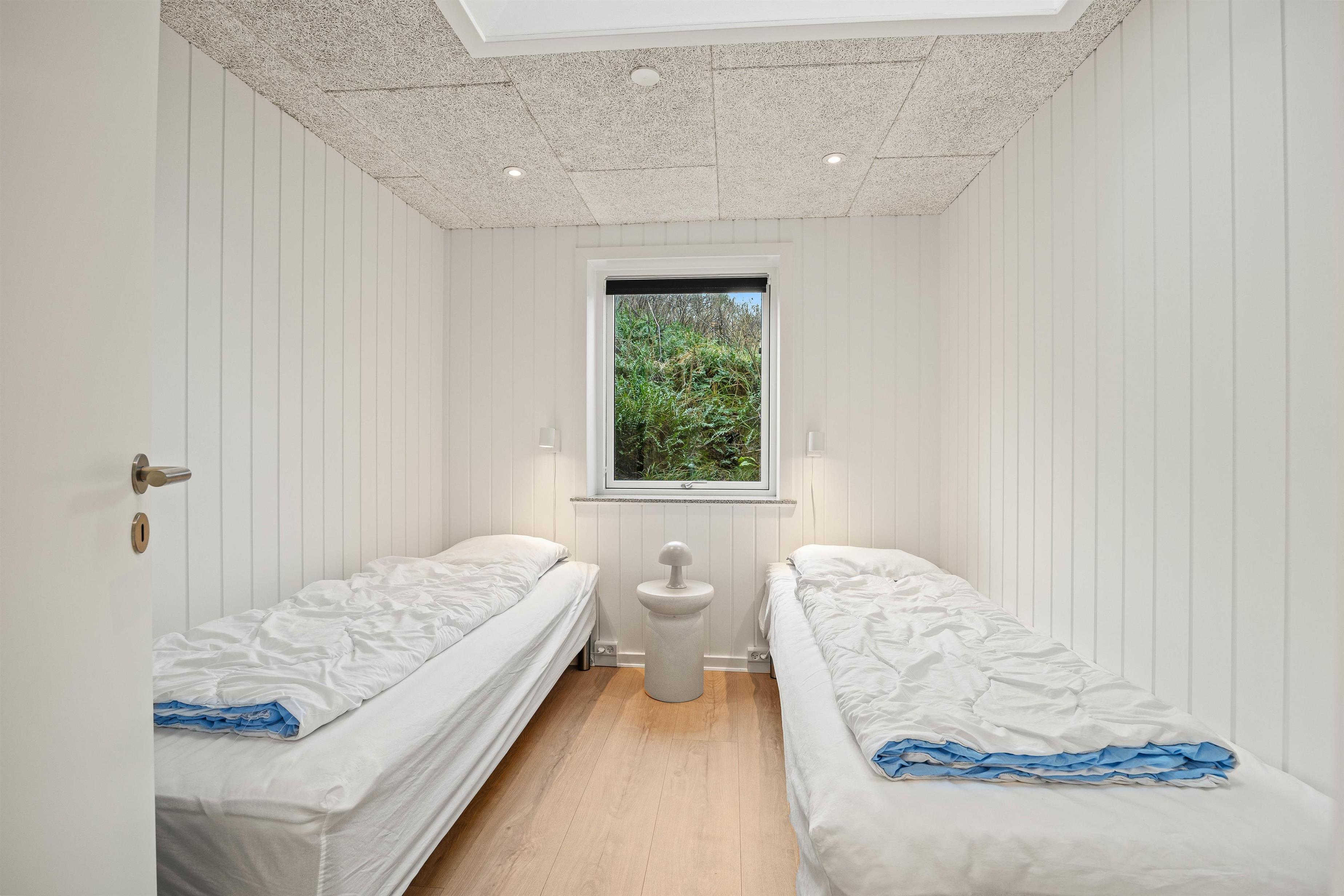 Sommerhusets 3 soveværelser er opdelt i 2 værelser med dobbeltsenge og et værelse med 2 enkeltsenge. De komfortable senge giver jer i den grad mulighed for at få en rolig og afslappende søvn i den friske vesterhavsluft. Det skønne badeværelse er velindrettet og har indlagt gulvvarme.
