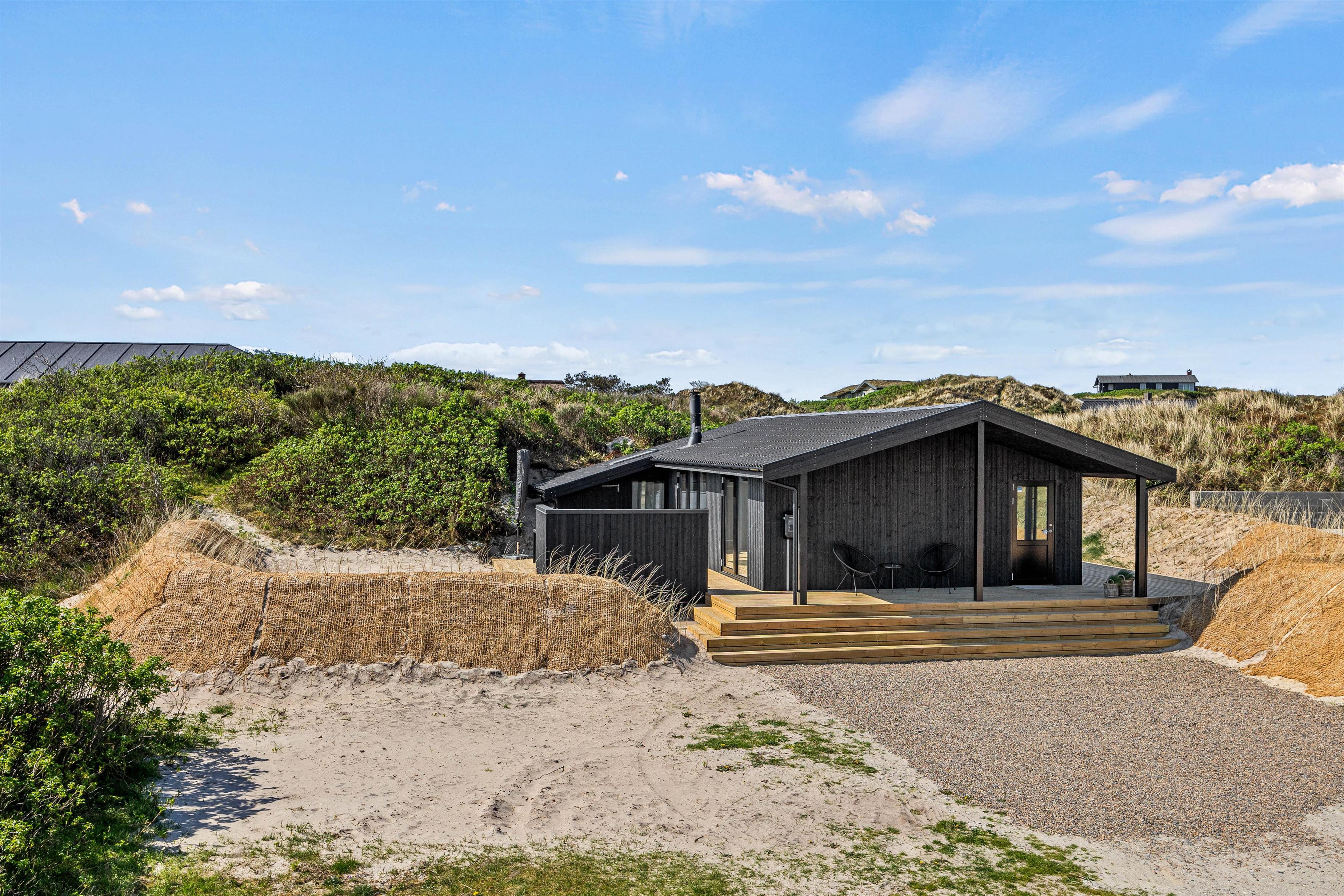 Det dejlige sommerhus er beliggende på en 1250 m2 stor klitgrund, og dens beliggenhed gør sommerhuset til et vidunderligt sted at kunne slappe af, nyde solen og glemme hverdagens stress. Imens I læner jer tilbage i de komfortable terrassemøbler med en friskbrygget kop kaffe på terrassen, kan I nyde den friske havluft, fuglenes sang og lyden af havets brusende bølger. Der er direkte udgang til sommerhusets store og delvist overdækkede terrasse fra stuen. Om aftenen kan I bruge grillen til at tilberede en lækker grillmiddag og se den skønneste aftensol gå ned bag klitterne.