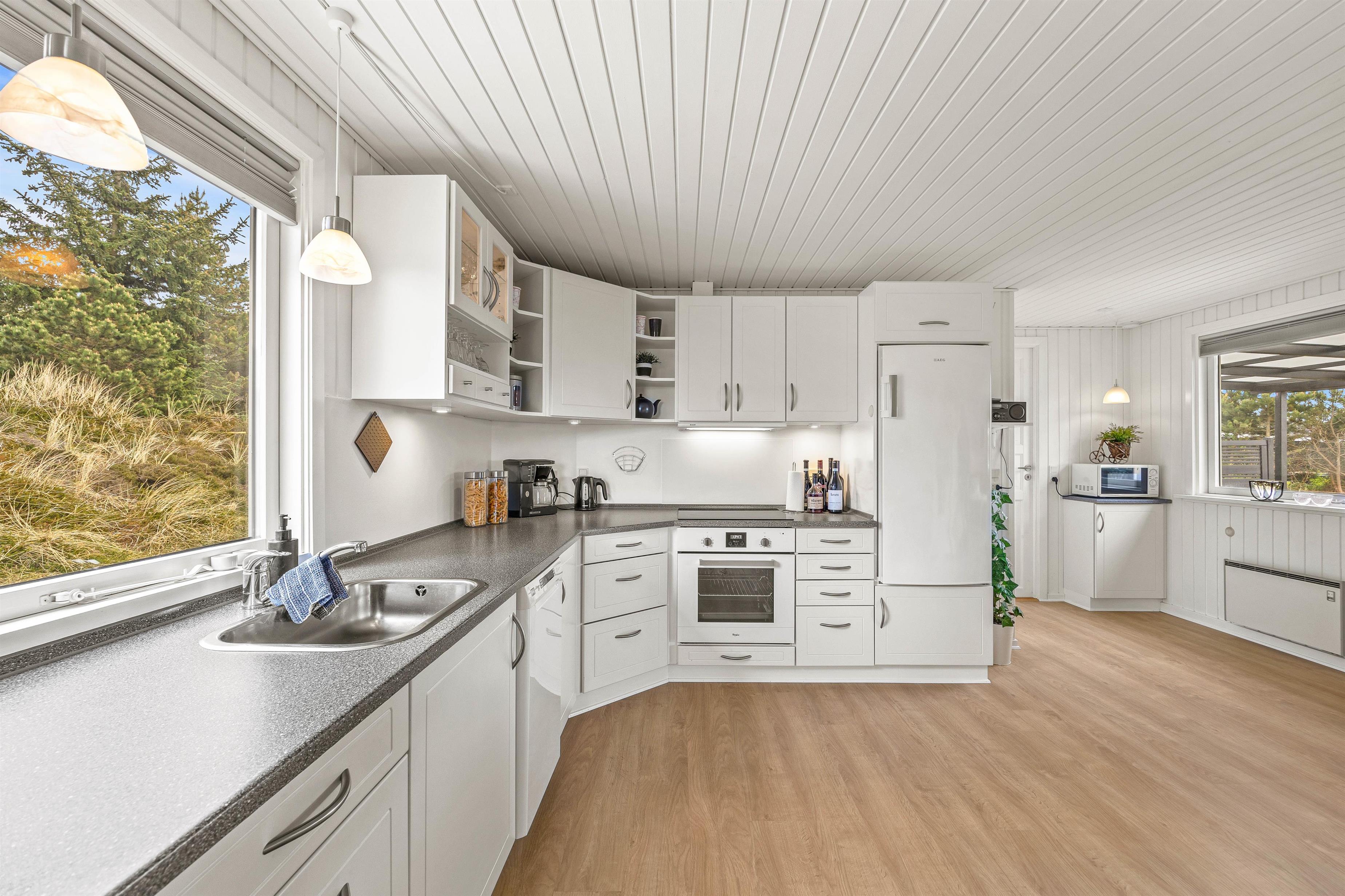 Feriehuset har 3 soveværelser med dobbeltsenge, så der er god plads til, at I kan få sovet godt ud i den friske vesterhavsluft. Badeværelset har gulvvarme, så I ikke får kolde tæer efter morgenbadet. Praktiske hvidevarer, som opvaskemaskine, induktionskomfur og vaskemaskine kommer I ikke til at mangle i dette feriehus. Og skulle I have en elbil, kan I få den ladt op ved hjælp af feriehusets ladestander, som er med type 2 stik.
