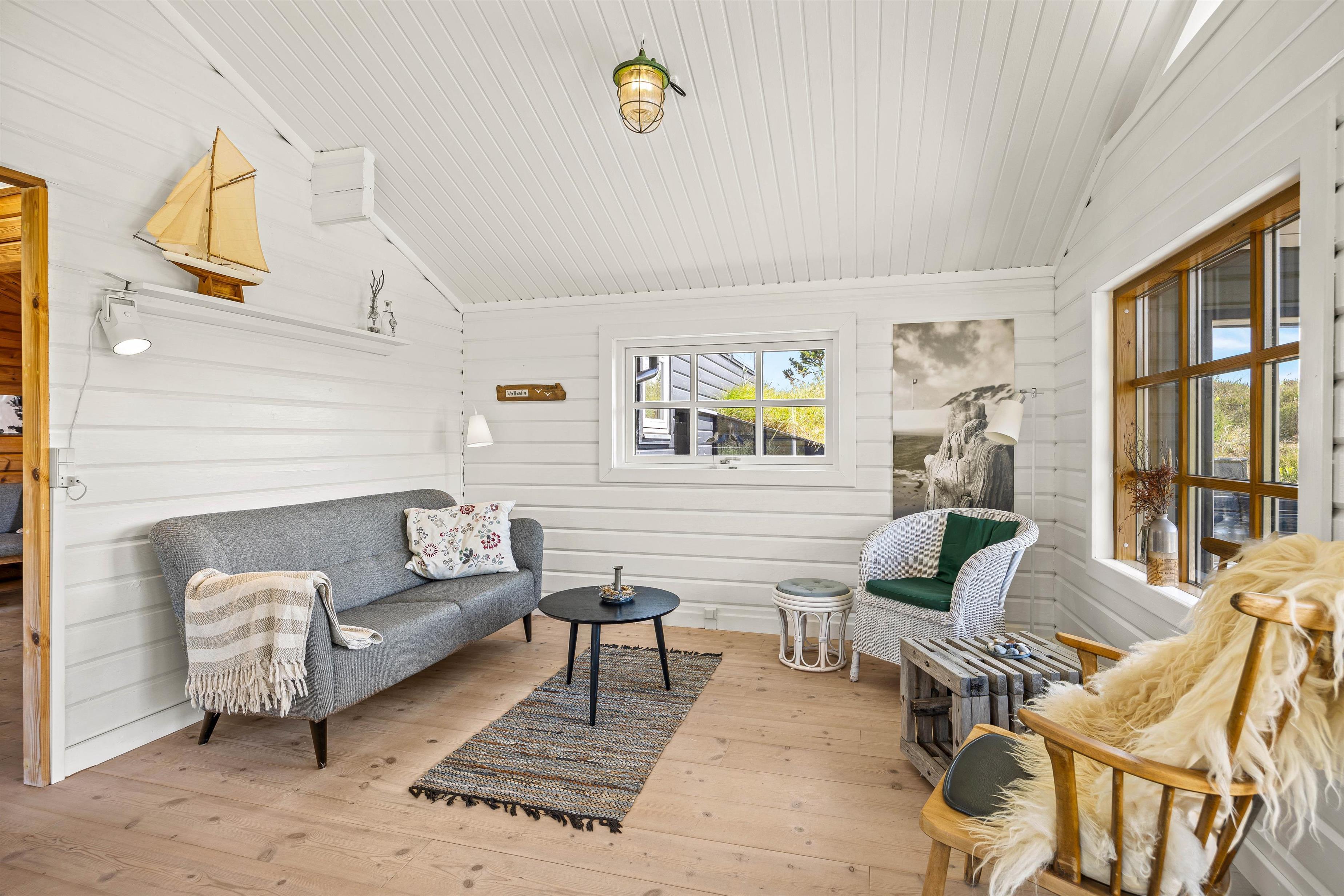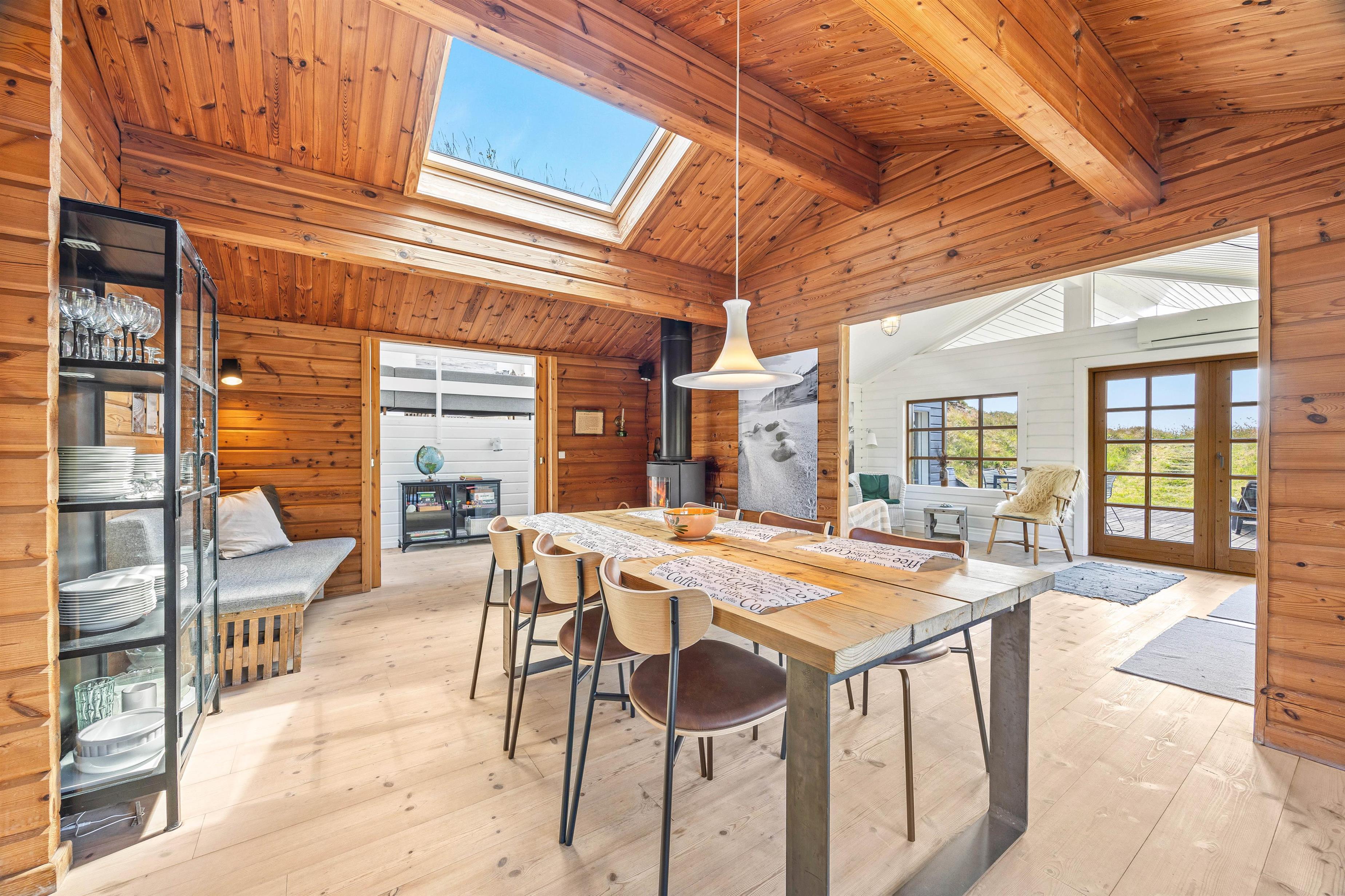 Feriehuset på Tjurvej 44 er beliggende på en storslået naturgrund, og de omkringliggende klitter skærmer for vinden. Udenfor venter jer en dejlig træterrasse, som kan tilgås fra stuen. Terrassen er delvist overdækket – perfekt til de lune sommeraftner, hvor der naturligvis skal grilles - her står en kulgrill til rådighed, og I kan nemt tilberede et lækkert måltid og nyde et køligt glas rosé hertil.