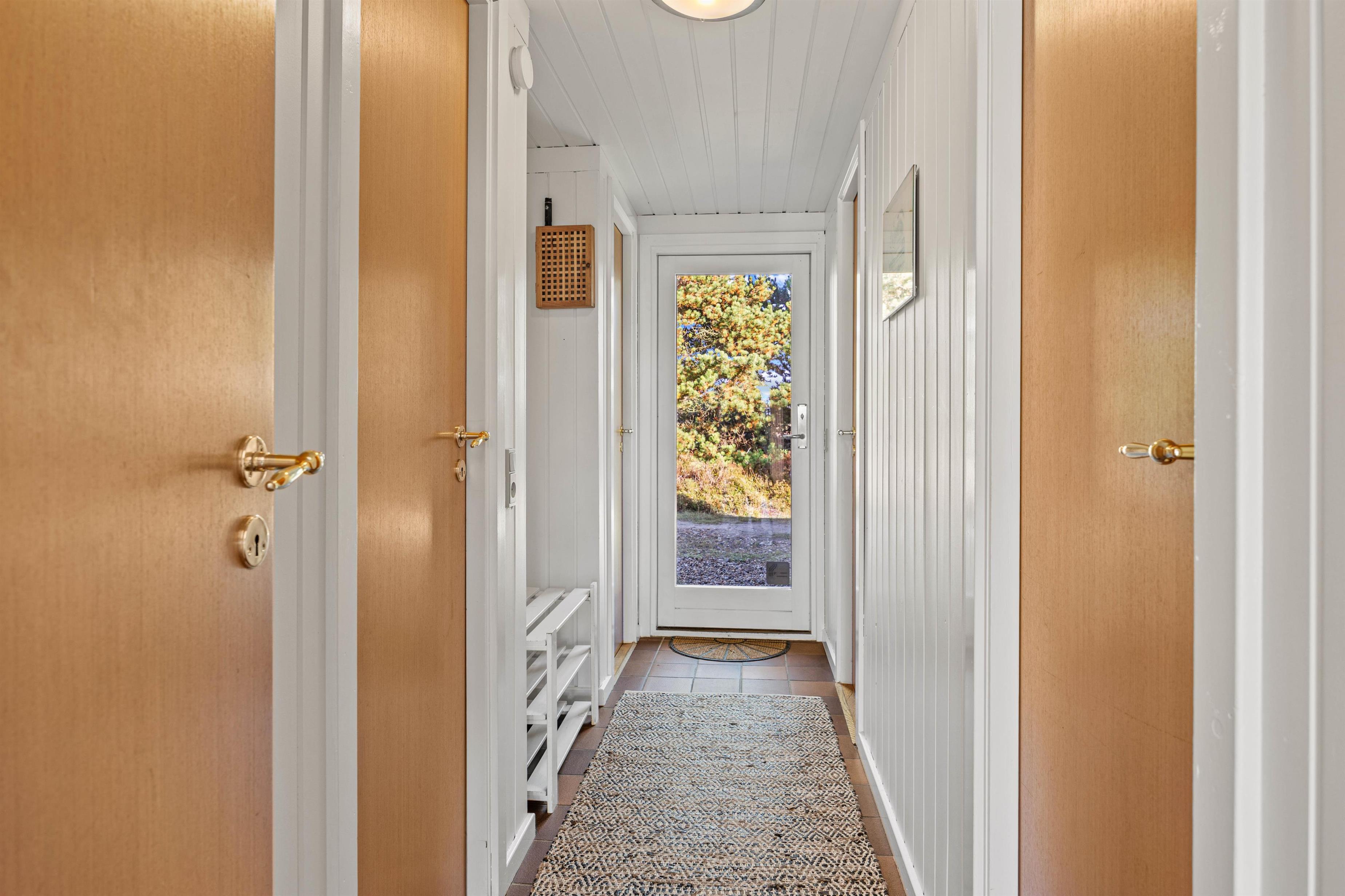 Indendørsområdet i sommerhuset byder på en velindrettet og komfortabel planløsning for dig og dine rejsefæller. Med tre hyggelige soveværelser fordelt på 1 dobbeltseng, 2 enkeltsenge og 1 køjeseng er der plads til 4 personer – perfekt til både familier og mindre grupper.