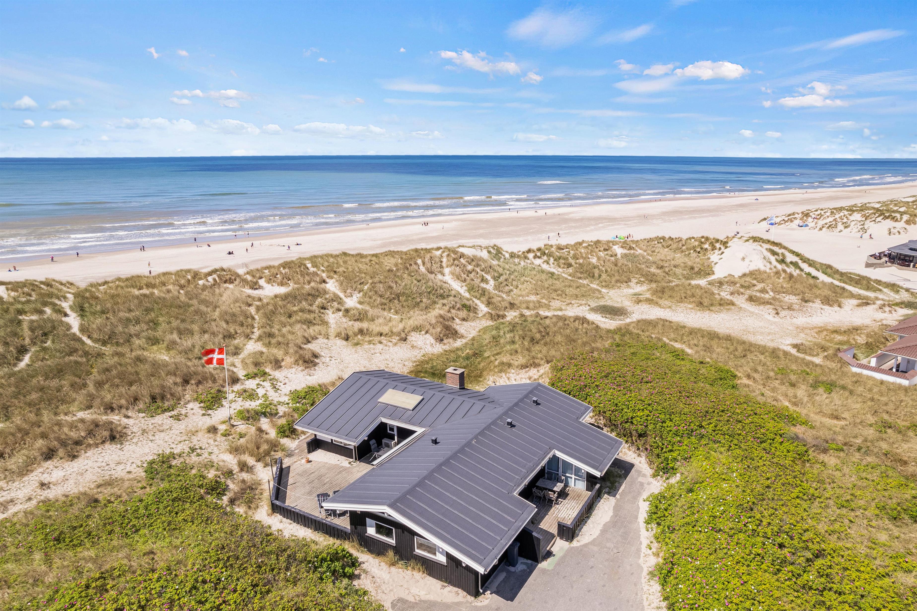 Sommerhuset på Blåklokkevej 6 har en unik beliggenhed. Fra sommerhuset har I blot 75 meter til stranden og det smukke Vesterhav, og dermed tager det jer ikke lang tid, før I er fremme, når I trænger til en frisk dukkert eller gåtur langs stranden.