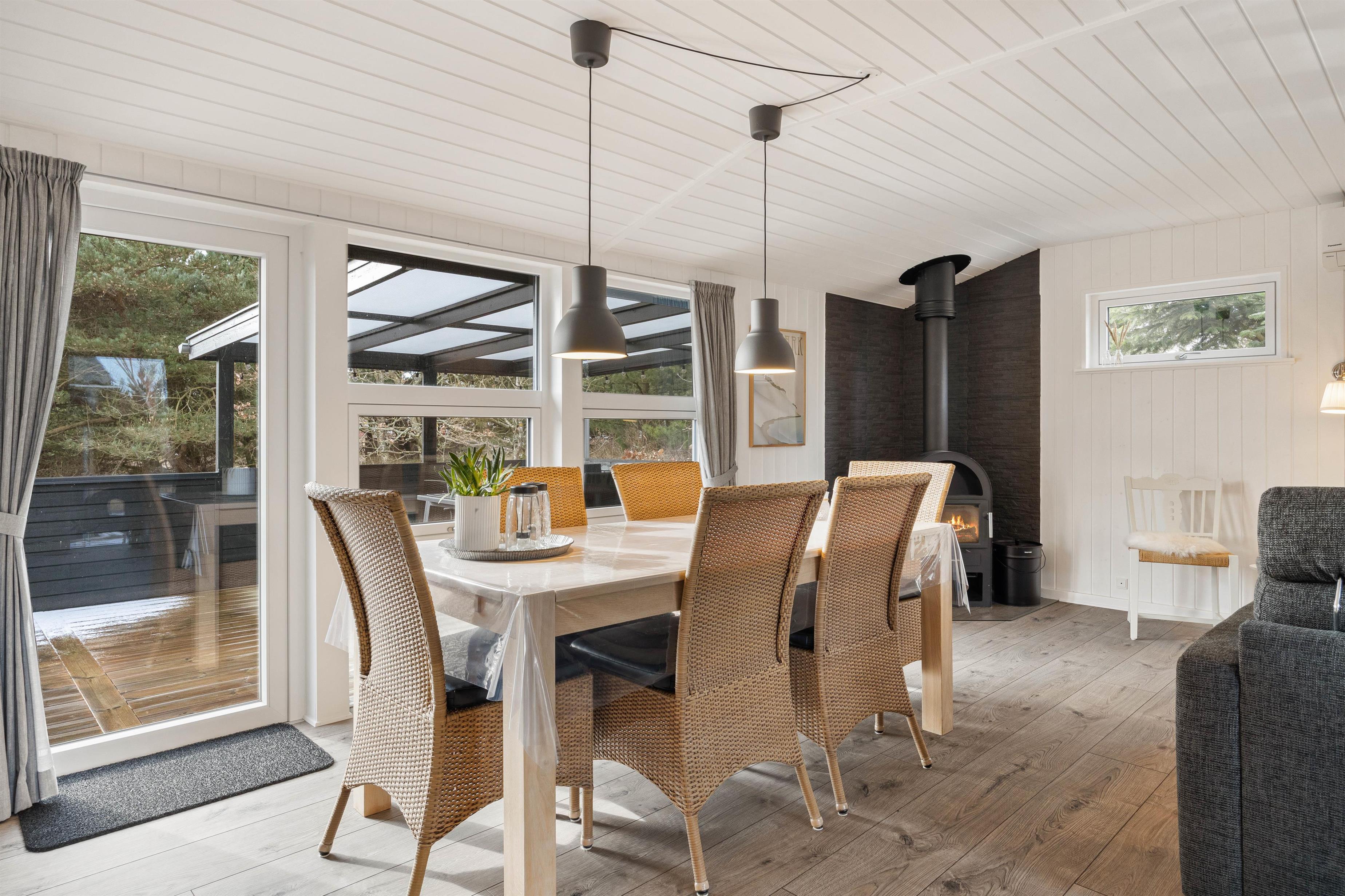 Dette hyggelige træhus i Henne Strand er skabt til fællesskab og hygge. Indrettet med lyst træværk, moderne møbler, et åbent køkken med opvaskemaskine og med den dejlige brændeovn i stue-alrummet, er der lagt op til rigtig feriehusstemning. Her er plads til hygge ved spisebordet med familiespil og lækker mad, men også til at hygge sig i sofaen med en god film eller en god bog.