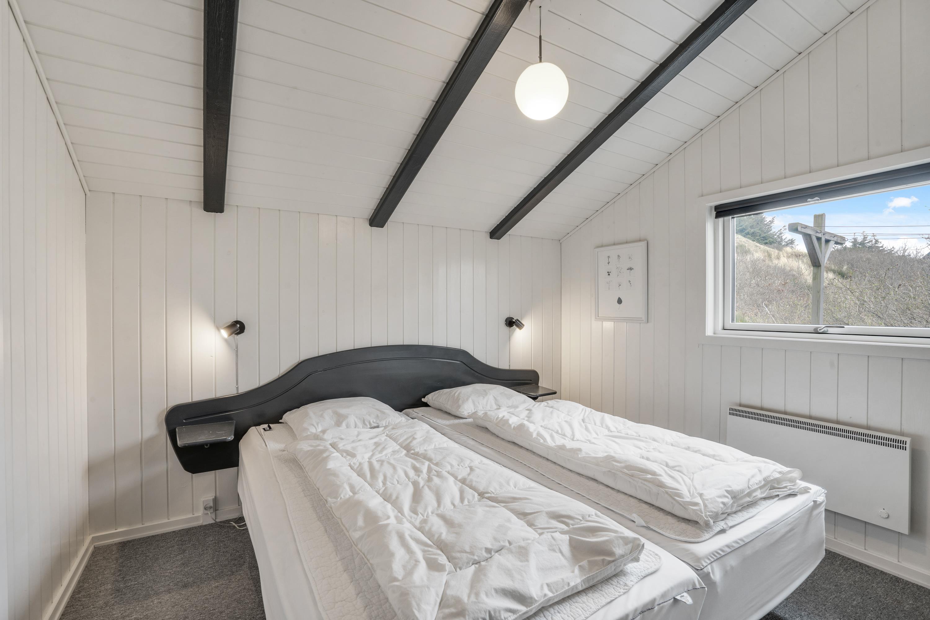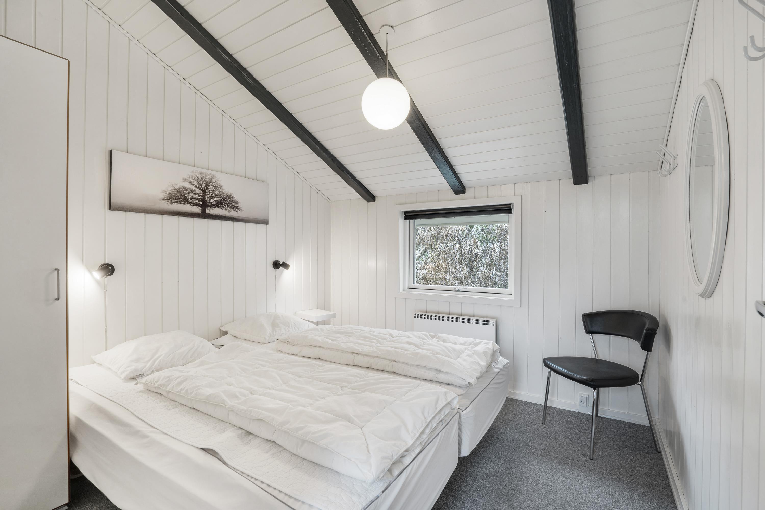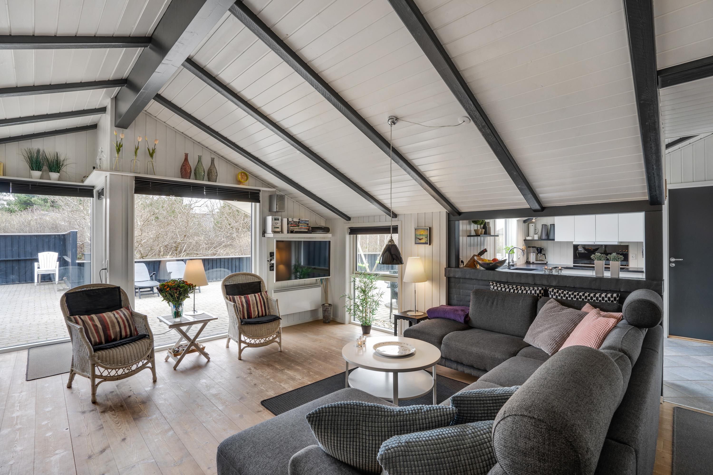 Sommerhuset, der er renoveret i 2018, har en lys og indbydende indretning, som I straks vil føle jer hjemme i, når I ankommer på ferieadressen. De synlige bjælker og brændeovnen sætter prikken over i’et for sommerhusstemningen og -følelsen.