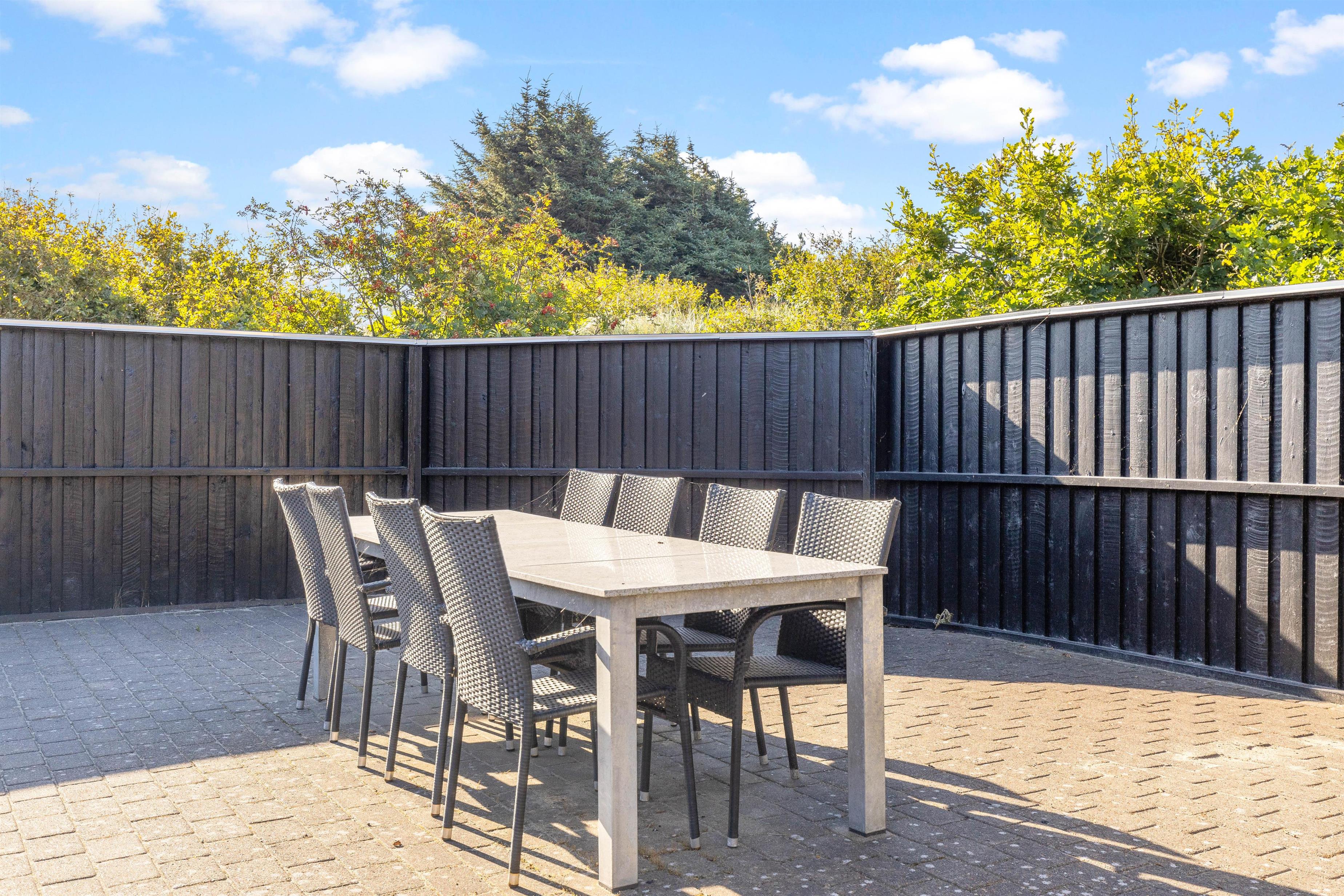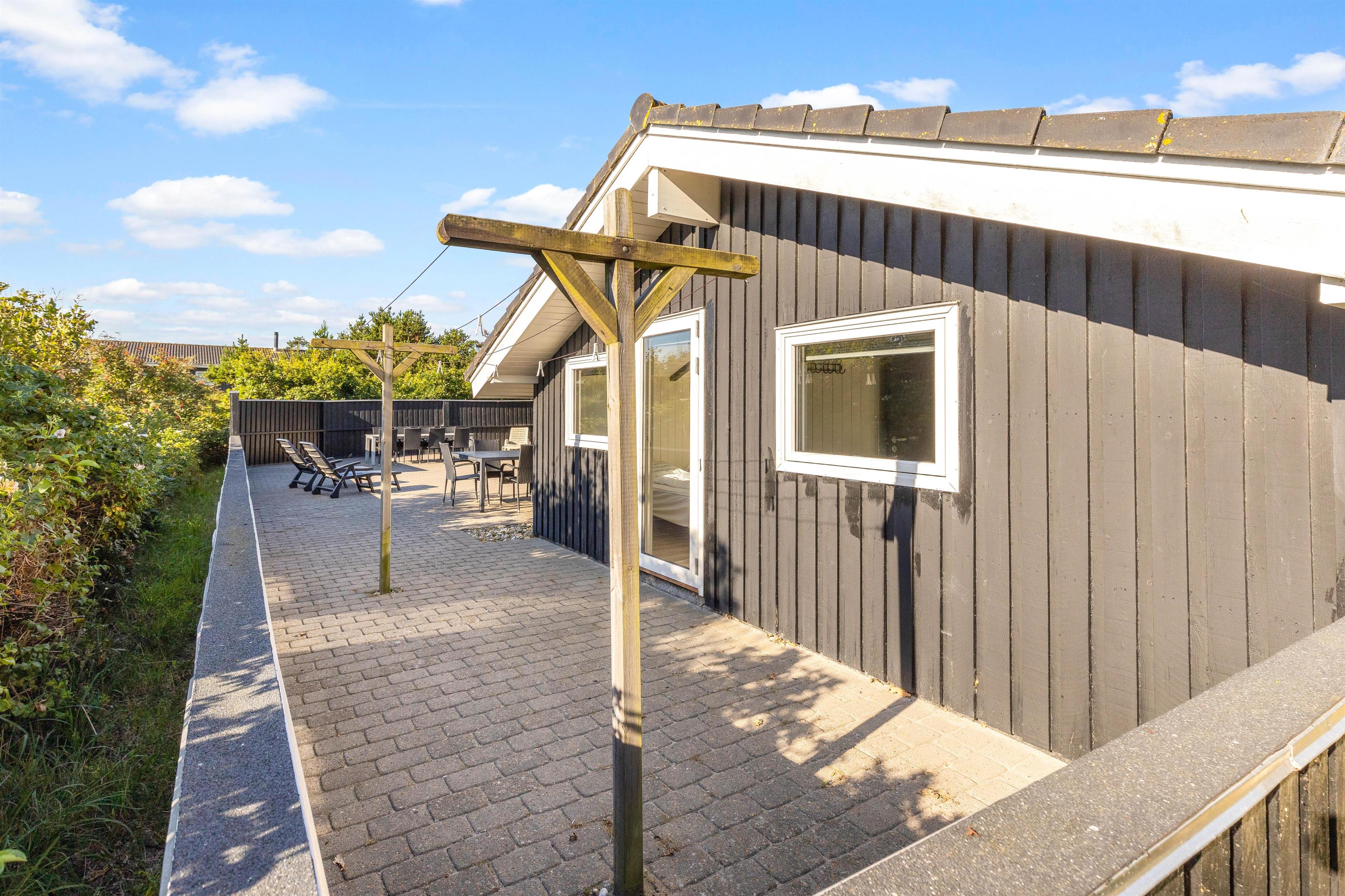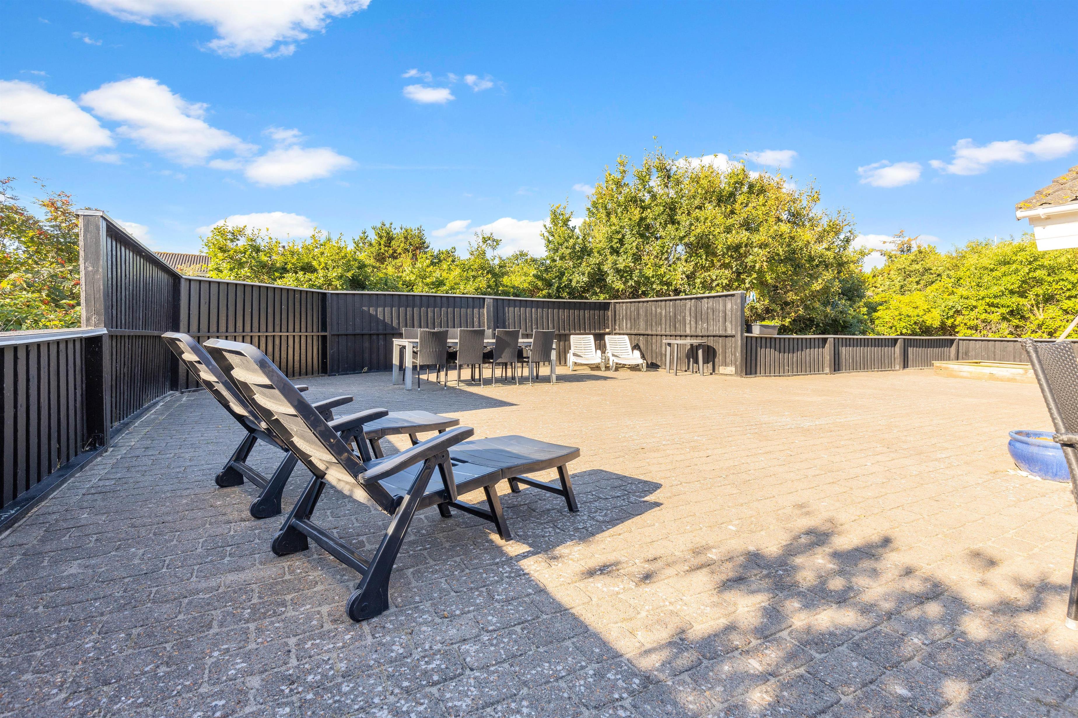 Sommerhuset har en dejlig stor terrasse, som I kan nyde ferien og de varme dage fra. Terrassen er lukket, så I kan uden problemer have jeres firbenede ven med herud, uden at den tager på udflugt i området på egen hånd.
