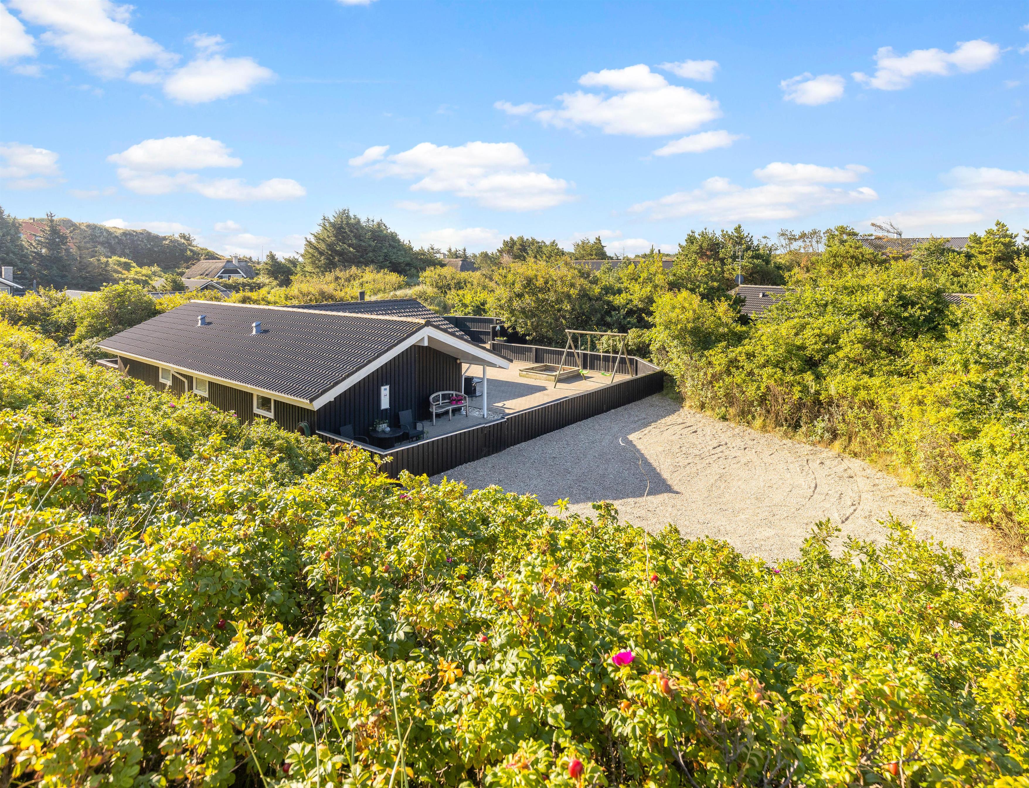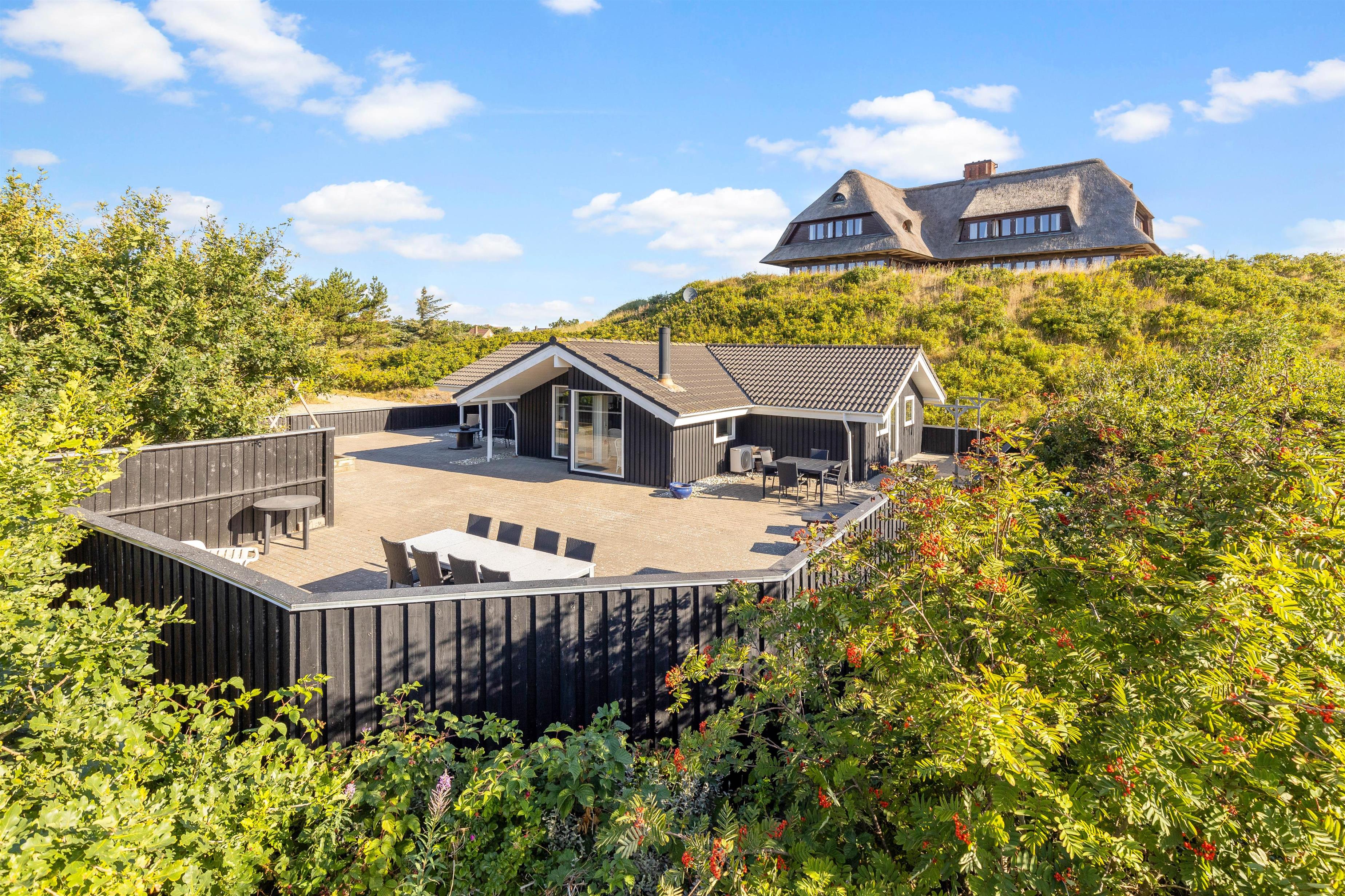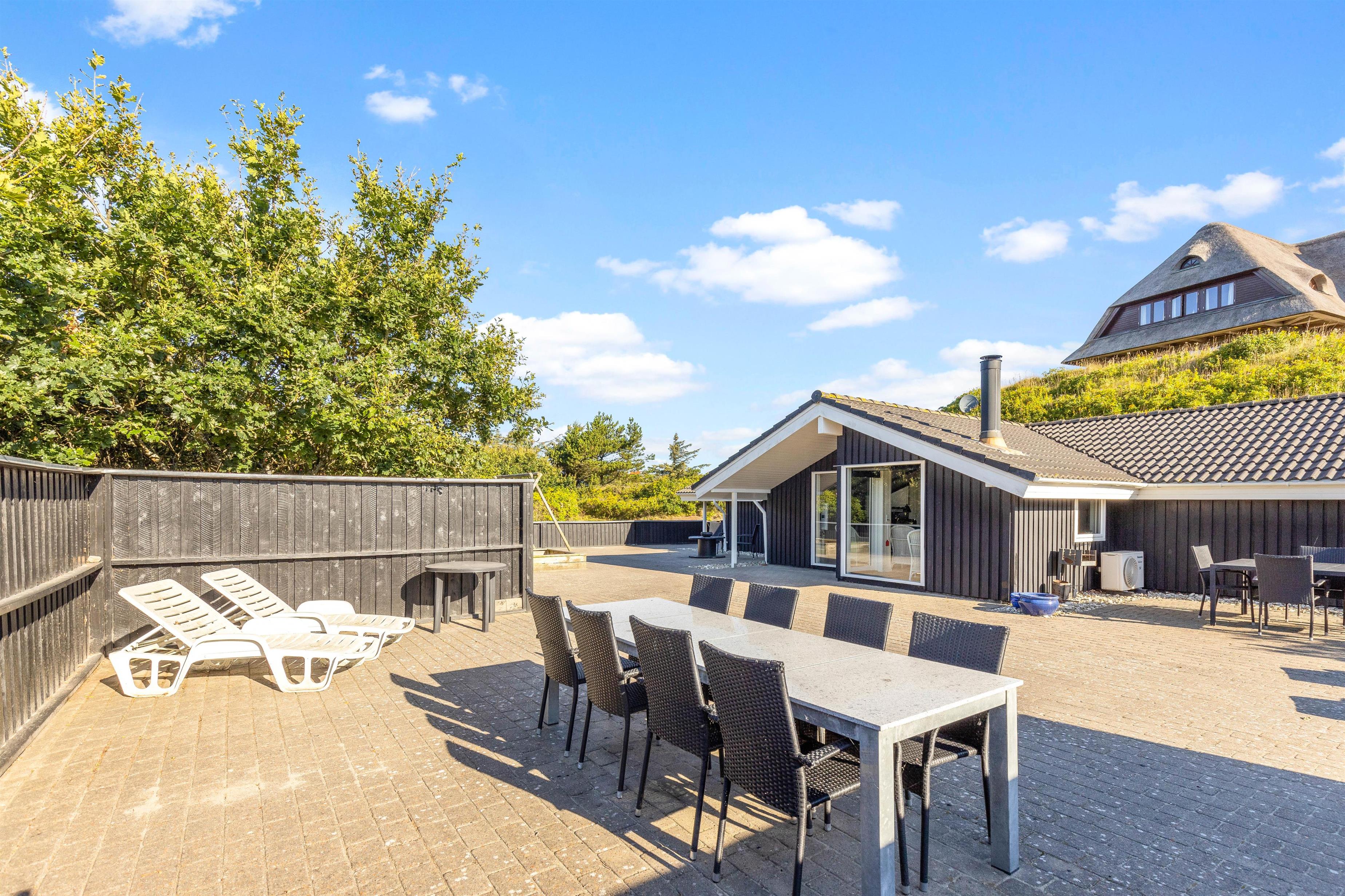 Sommerhuset har en dejlig stor terrasse, som I kan nyde ferien og de varme dage fra. Terrassen er lukket, så I kan uden problemer have jeres firbenede ven med herud, uden at den tager på udflugt i området på egen hånd.