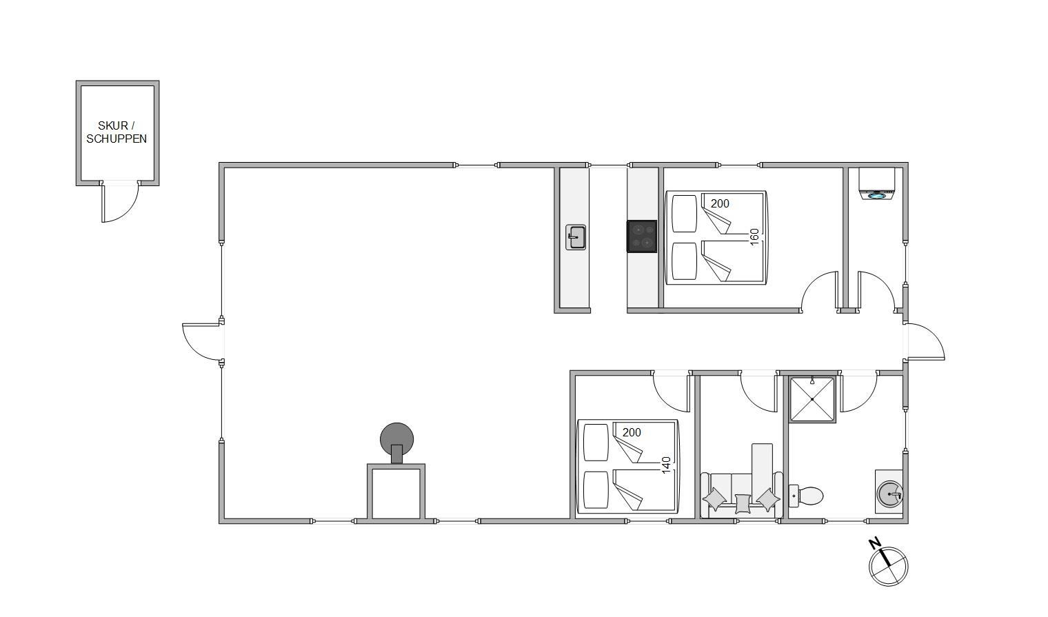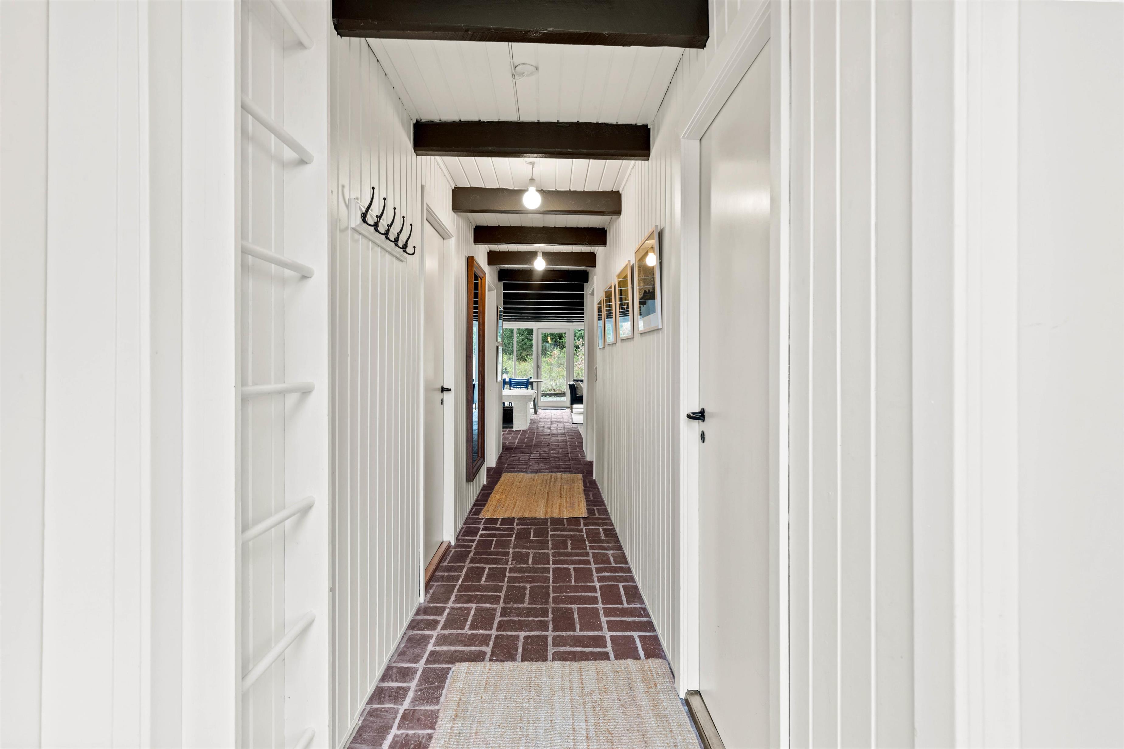 Sommerhusets sovepladser er fordelt over 3 soveværelser. 2 af værelserne er indrettet med dobbeltseng, mens det tredje værelse indeholder en sovesofa. Vaskemaskinen er placeret i det lille bryggers, hvor der også er plads til sko og jakker.