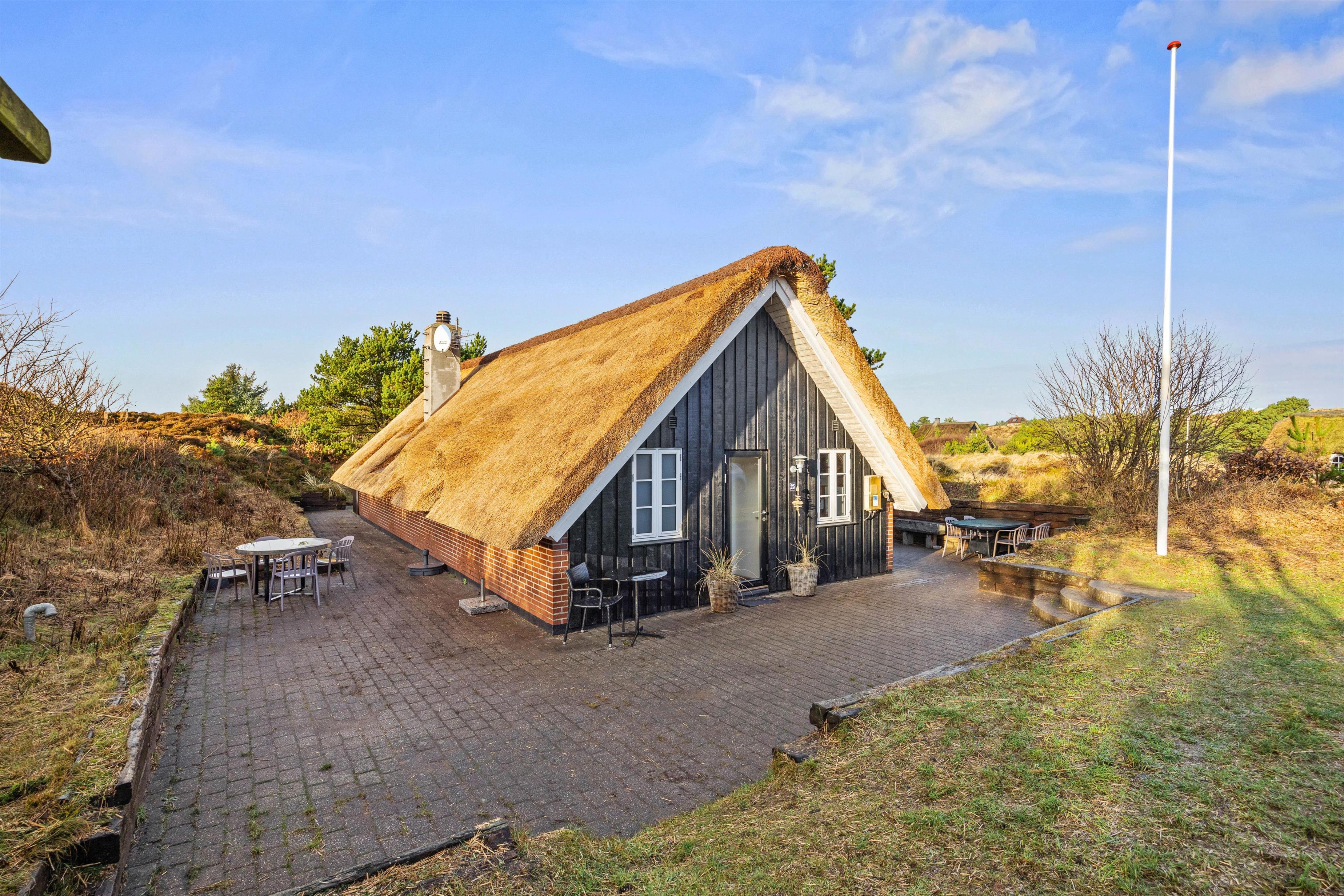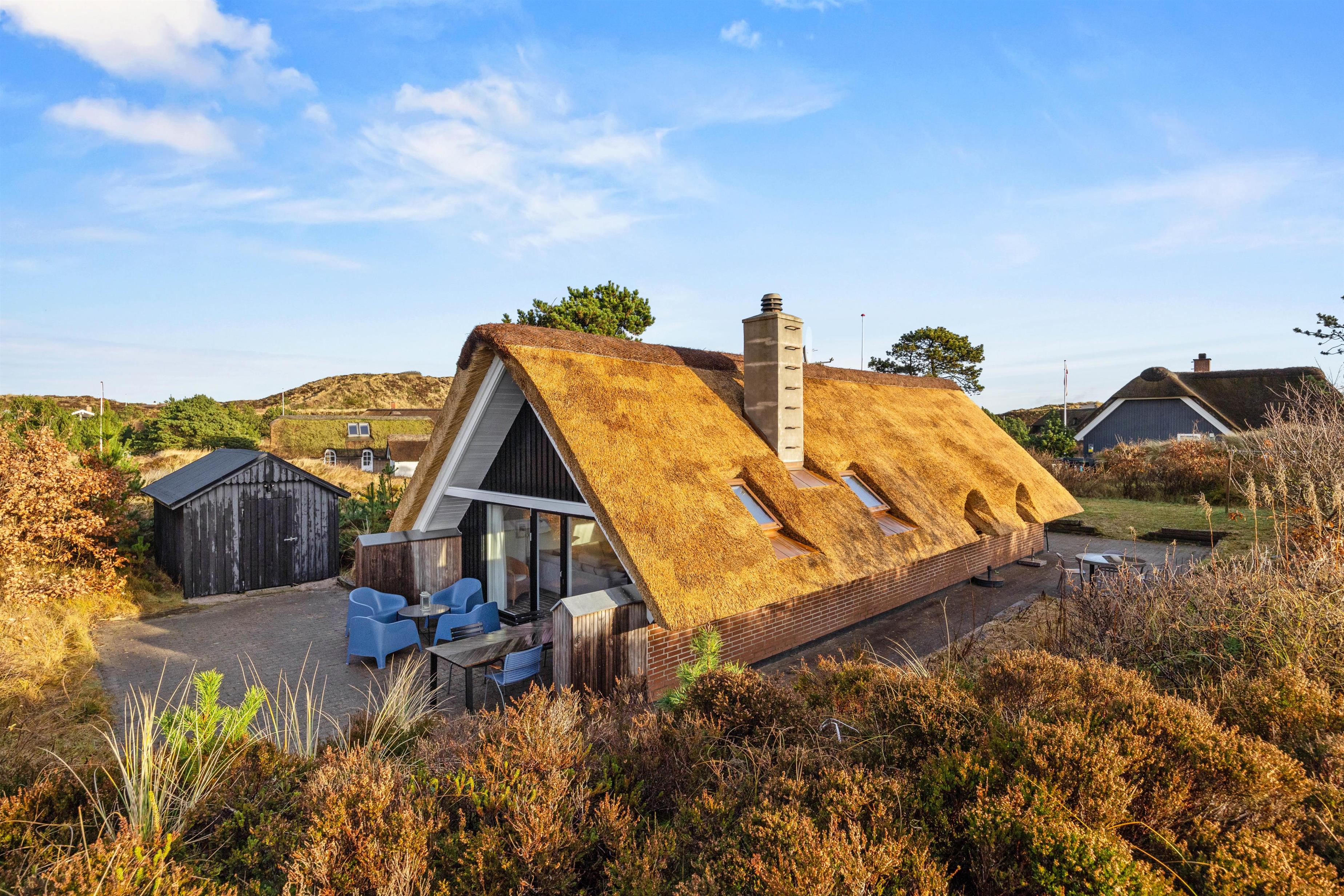 Sommerhuset er beliggende på en smuk lyngbeklædt naturgrund. Fra sommerhusets stue er der direkte udgang til den ene af sommerhusets fliseterrasser mod vest. Mod øst er der også anlagt terrasse, og kan I læne jer tilbage i havemøblerne alt efter vind og solens placering. Om aftenen skal der tændes op i grillen, så I kan få lidt ekstra godt at spise. Mens grillen varmer, kan I spille et spil kort eller nyde et glas vin i fred og ro. Afslut den lune sommeraften ved stranden, hvor I kan se områdets smukke solnedgang: Vesterhavet er små 800 meter herfra.