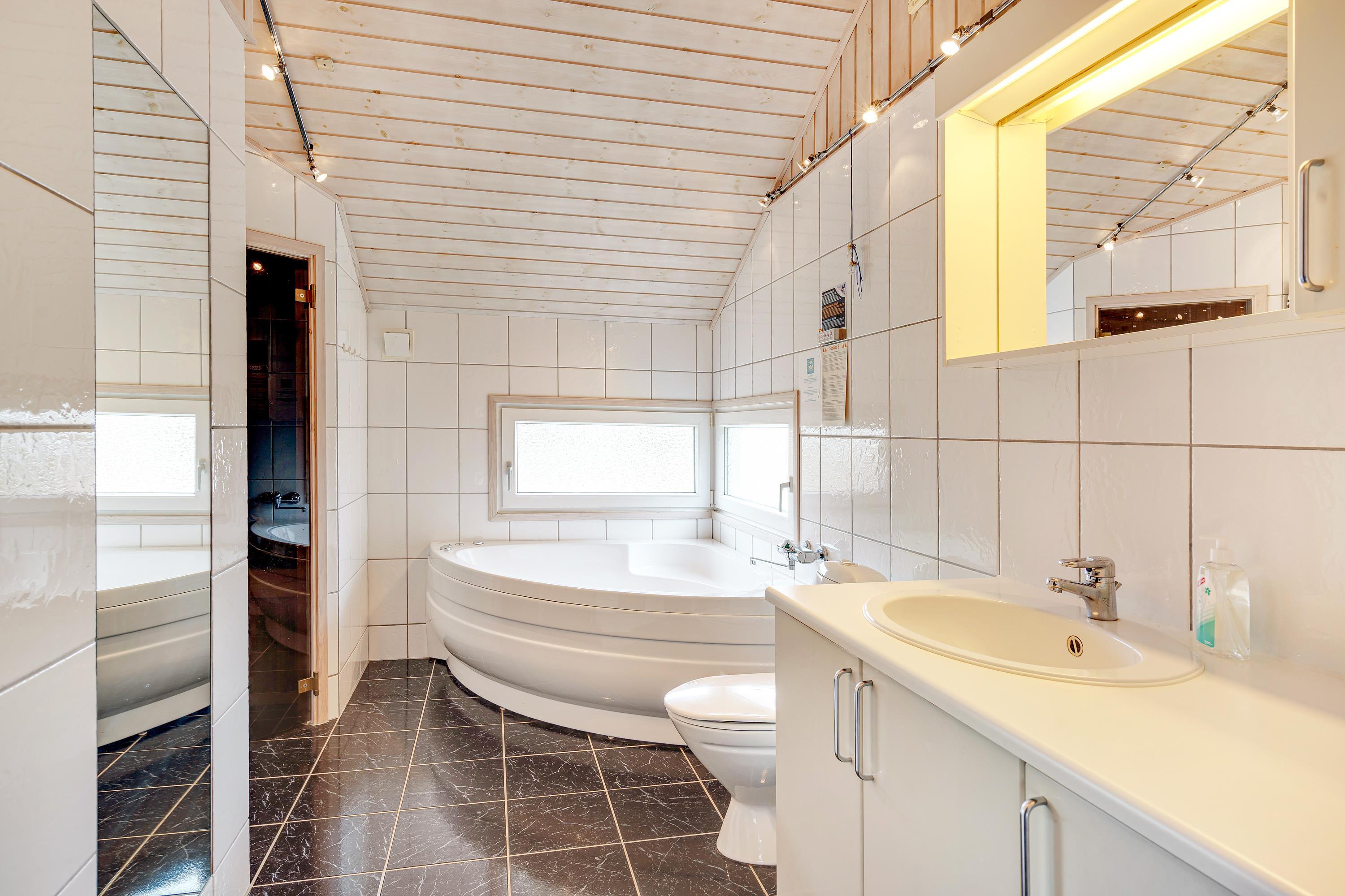 De 3 soverum er alle indrettet med store dobbeltsenge og særligt rart er, at feriehuset ikke blot har et stort lækkert badeværelse, men også er indrettet med et gæste-wc. Med både vaskemaskine, tørretumbler og opvaskemaskine er alle praktiske detaljer på plads for et vellykket ferieophold.