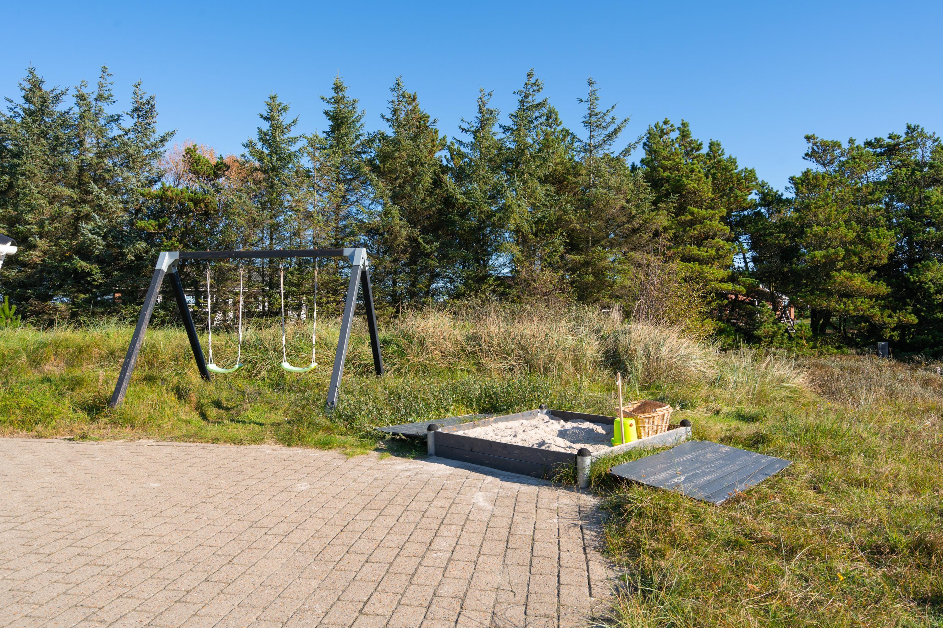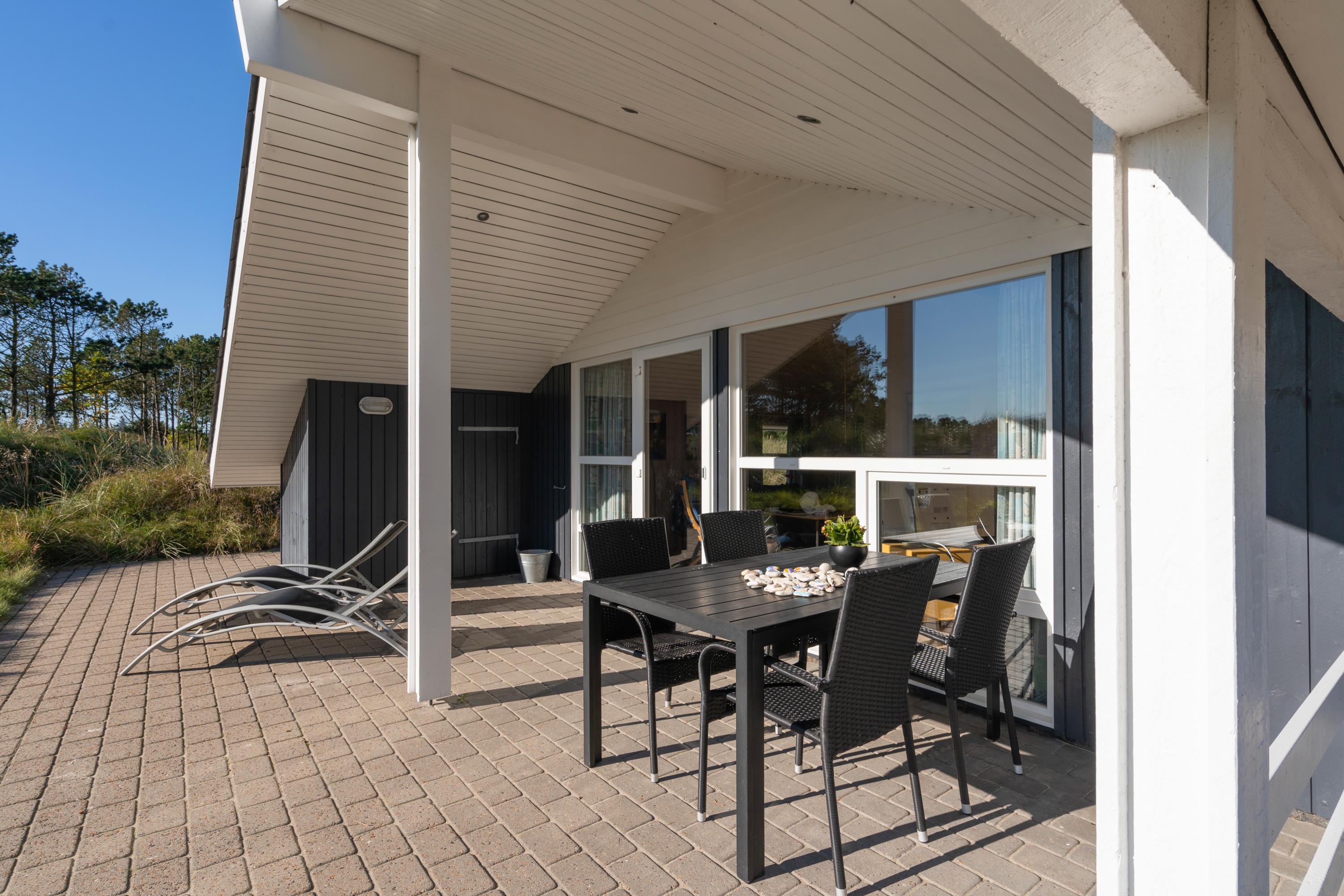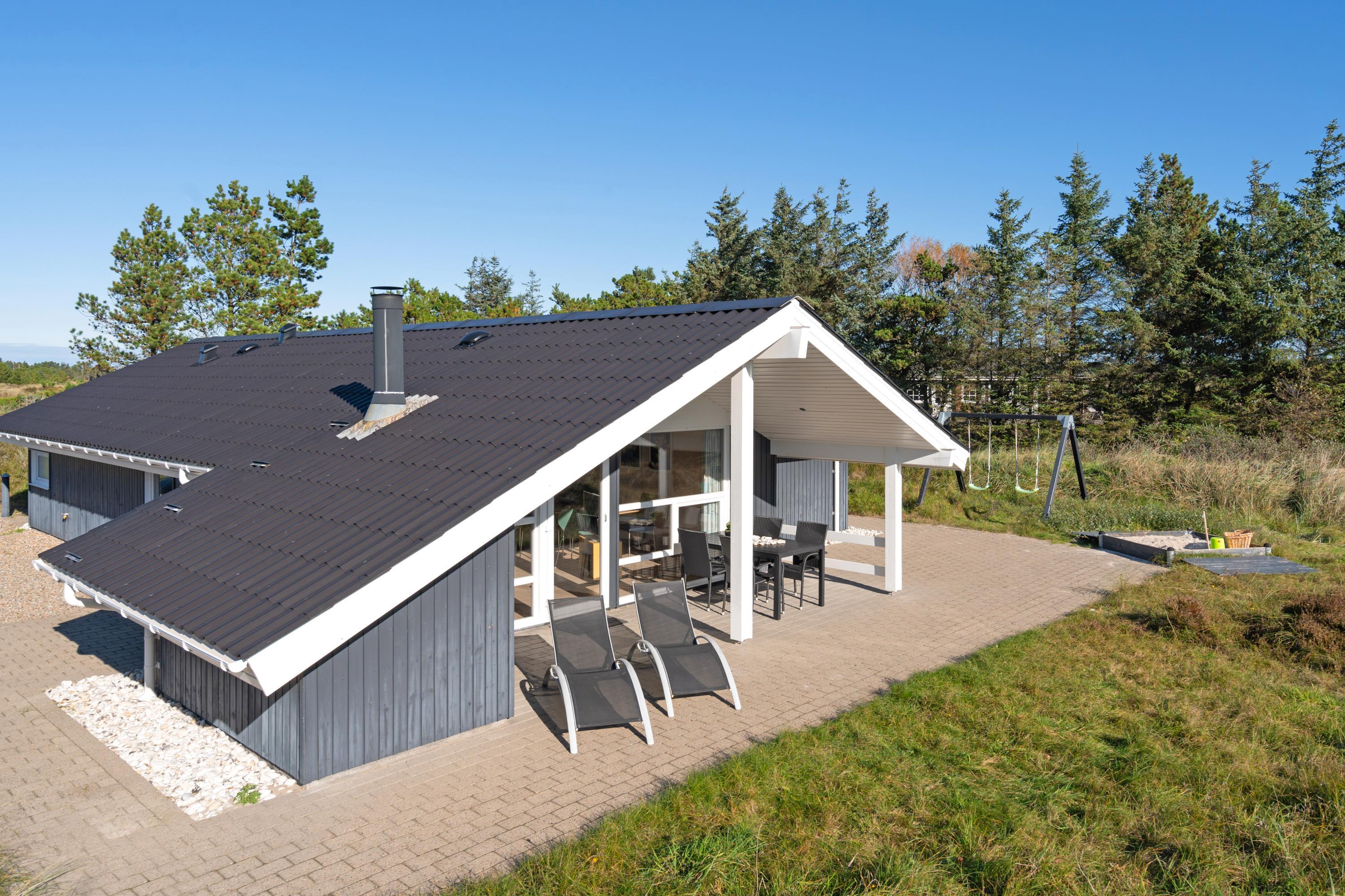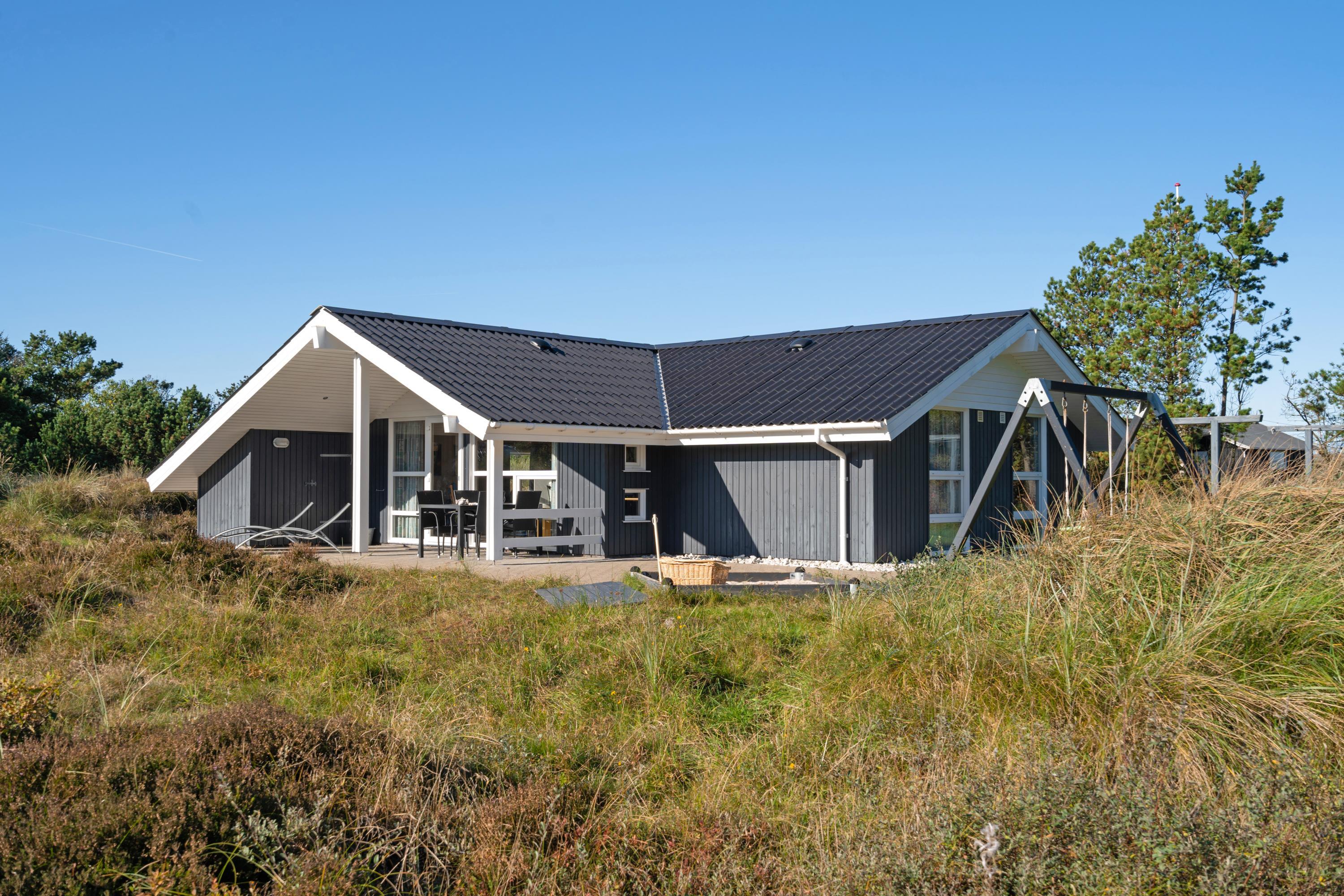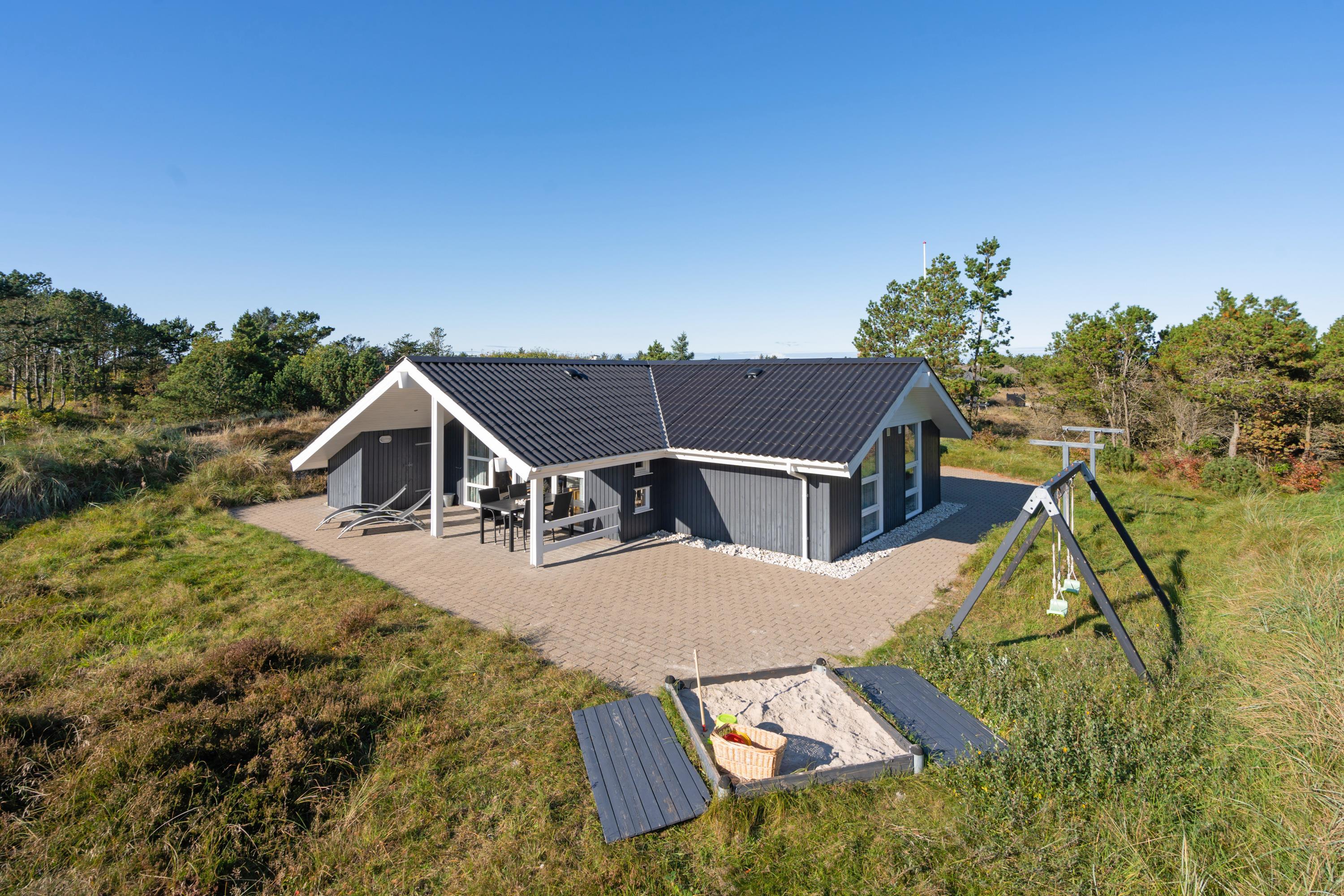 Midt i naturen på en stor ugeneret grund tæt op af Lyngbo Hede, finder I jeres feriehus, her midt i naturen, er det duften af lyng og lyden af lærkesang, der regerer. Sommerhusets overdækkede indgang og det overdækkede terrasseareal hjælper med tørre sko, skulle en regnbyge trække ind over land fra havet. Men ellers er det med at komme ud i den friske luft. – ud og nyde livet på husets store terrasser, hvor gode havemøbler, liggestole og en grill står til jeres rådighed. Børnene vil sikkert elske, at der er både gynger og en sandkasse på grunden.