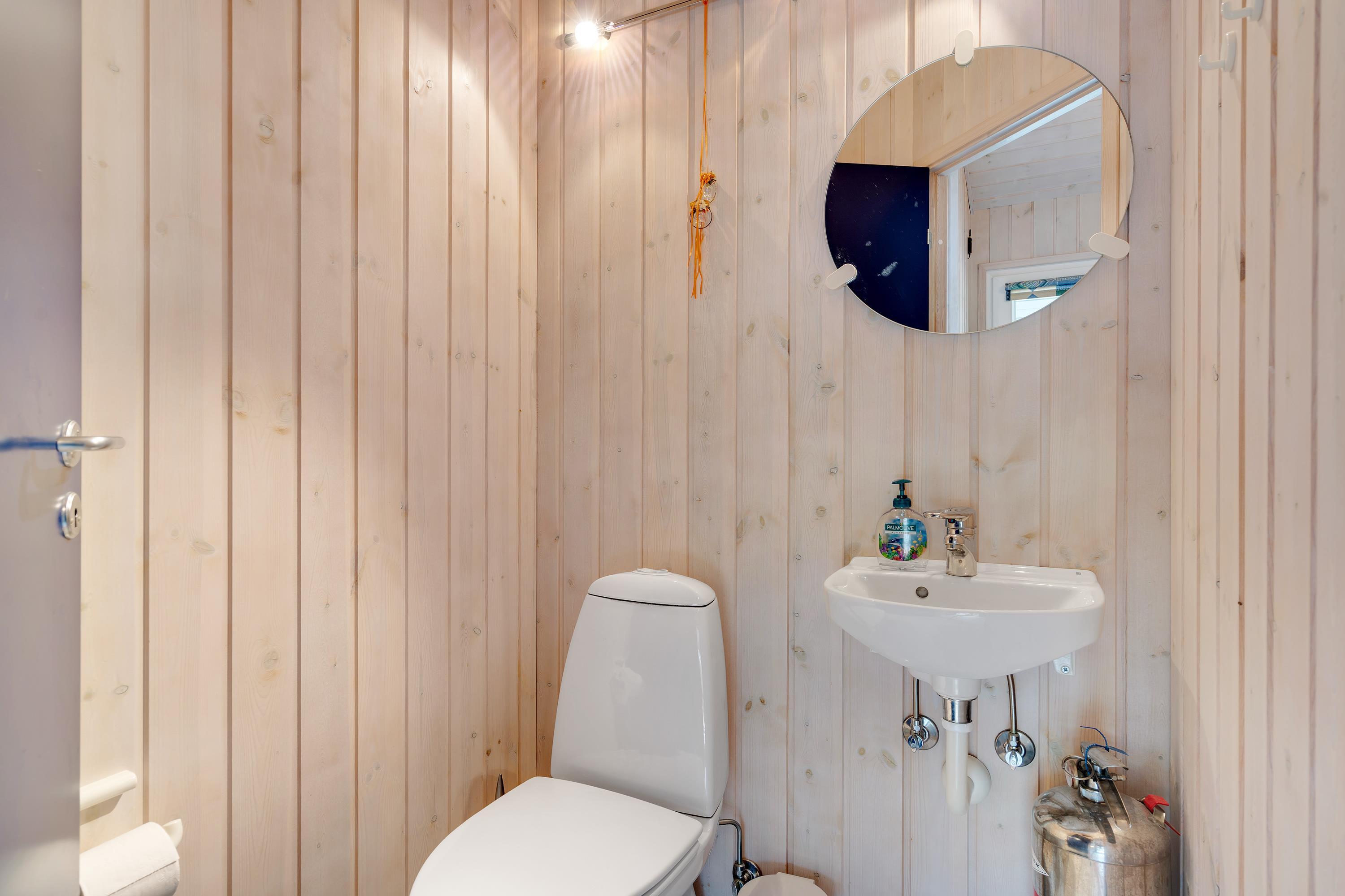Godt indrettet med gæste-wc, praktiske faciliteter og hyggeskabende brændeovn