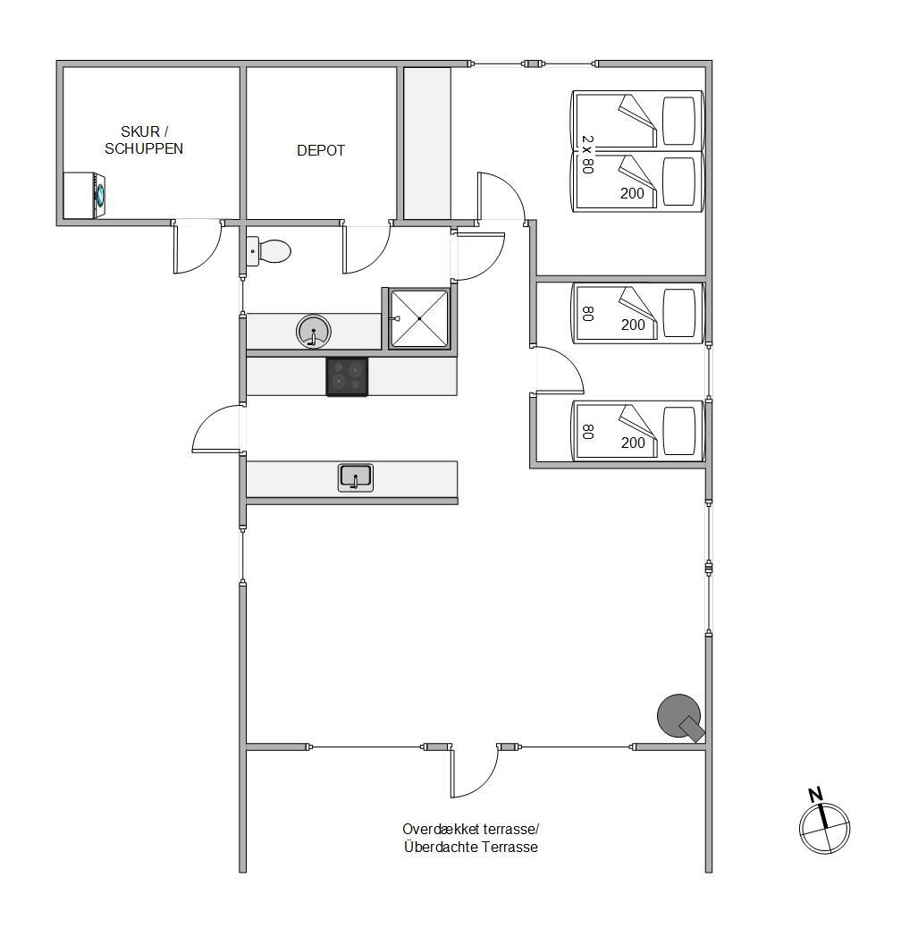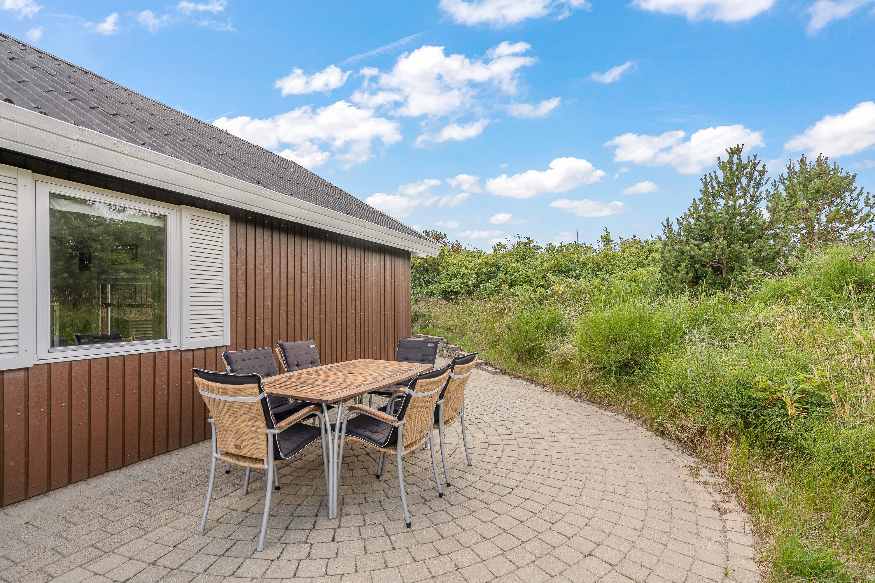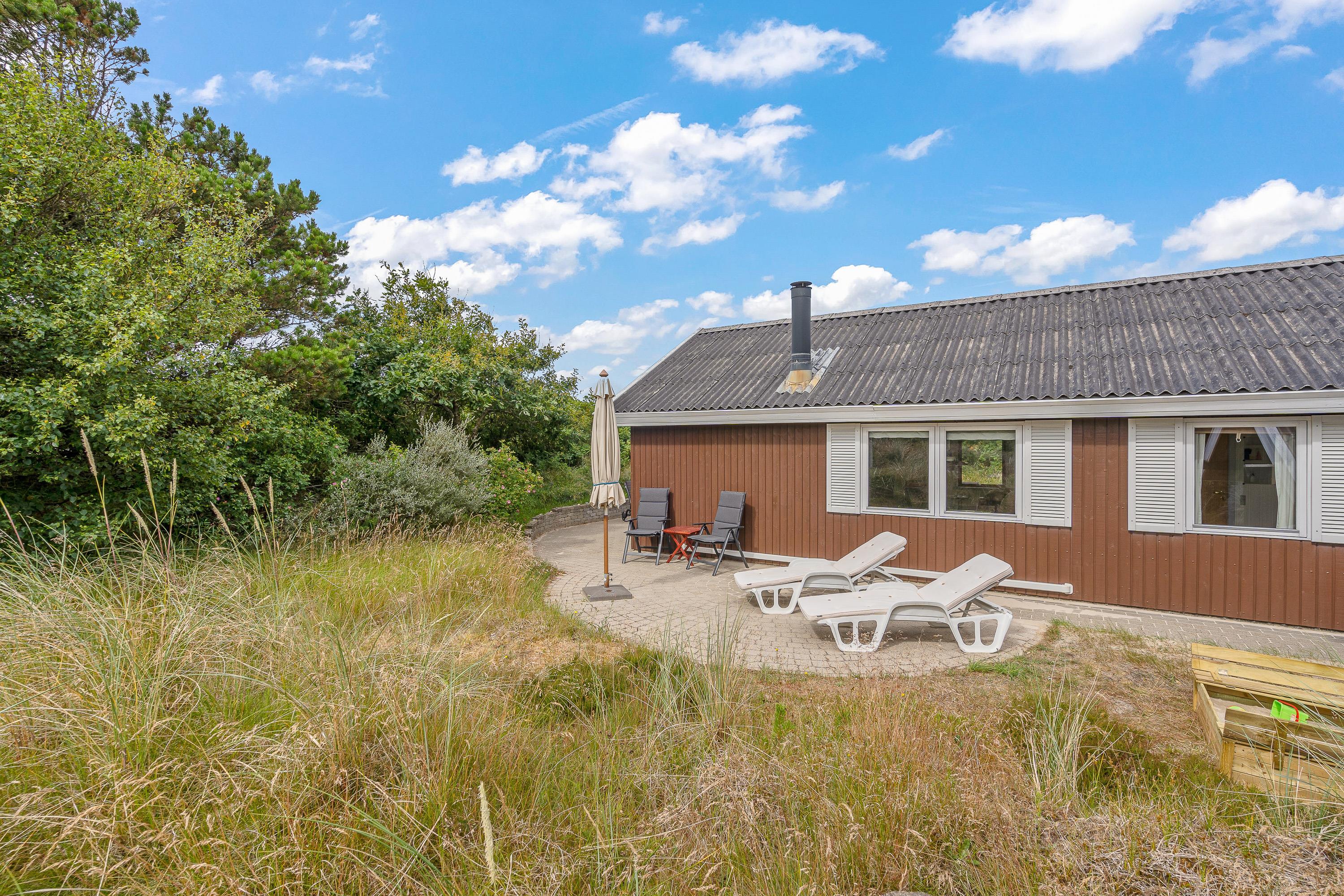 På sommerhusets udeområde venter jer en terrasse, som I kan nyde feriens solrige dage på. Her kan I finde jer et godt solspot, hvor I kan læne jer tilbage i havemøbler og liggestole, mens I slapper af i solen og den friske luft. Om aftenen kan I samles til en lækker middag på terrassen, som I kan tilberede på grillen.