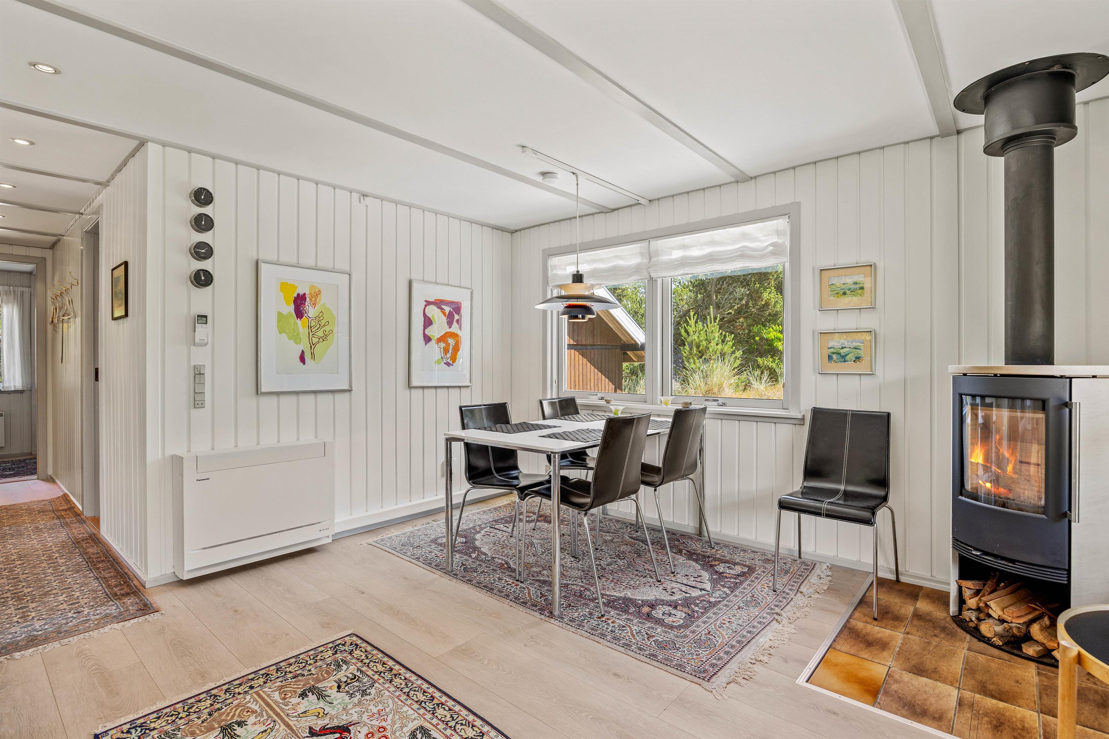 Hjertet i sommerhuset og jeres store samlingspunkt bliver alrummet, der forener sommerhusets køkken, stue og spiseplads. Alrummet danner rammen om mange hyggelige feriestunder, som brændeovnen fuldender med sin knitren i baggrunden og dejlige varme.