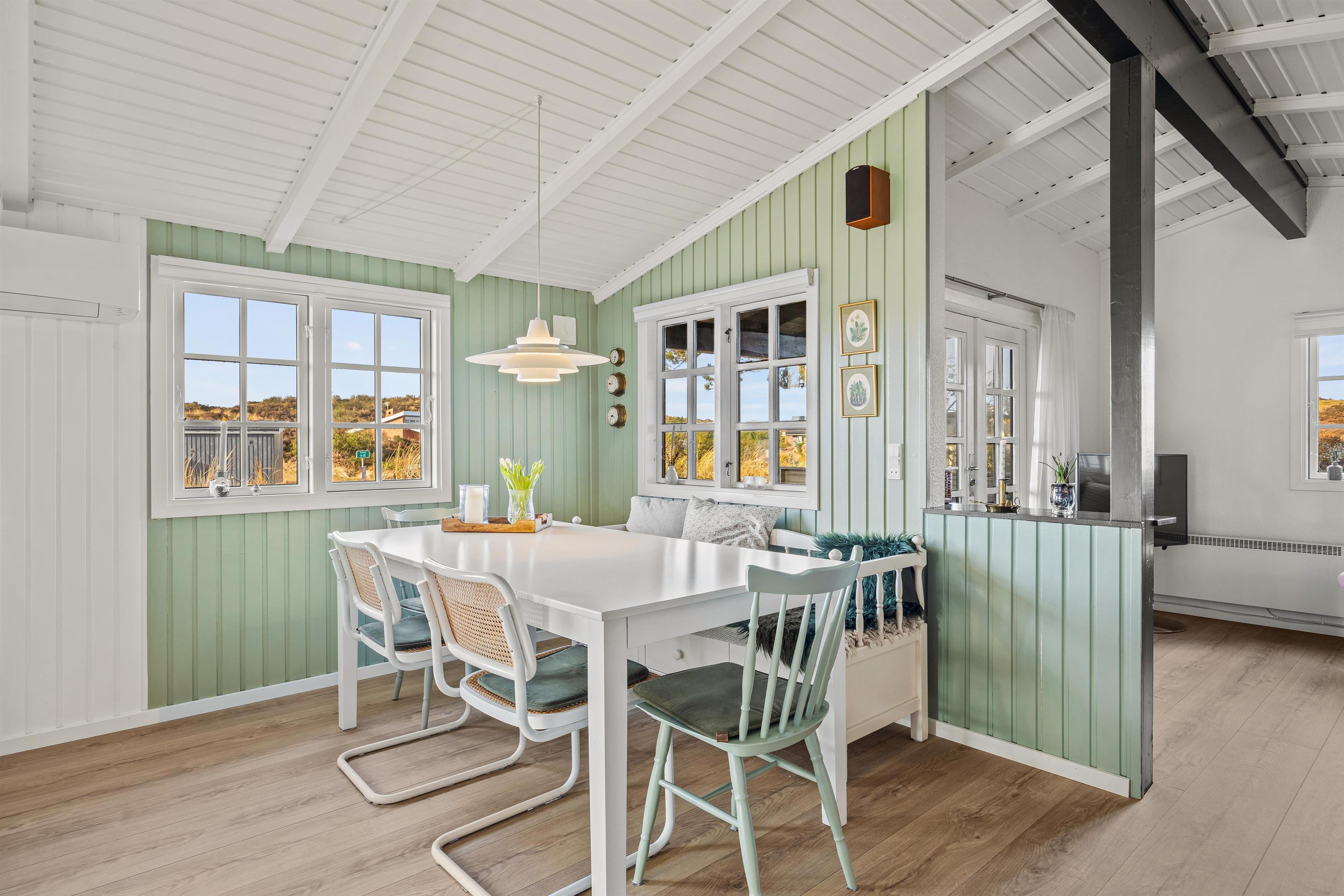 Dette sommerhus på Arvevej 5 i Henne Strand er det perfekte udgangspunkt til udflugter. Fra sommerhuset er der kun 800 meter til det skønne Vesterhav, som uanset årstid altid er et besøg værd - en dukkert eller en tur langs stranden er oplagt og vil fuldende feriestemningen.