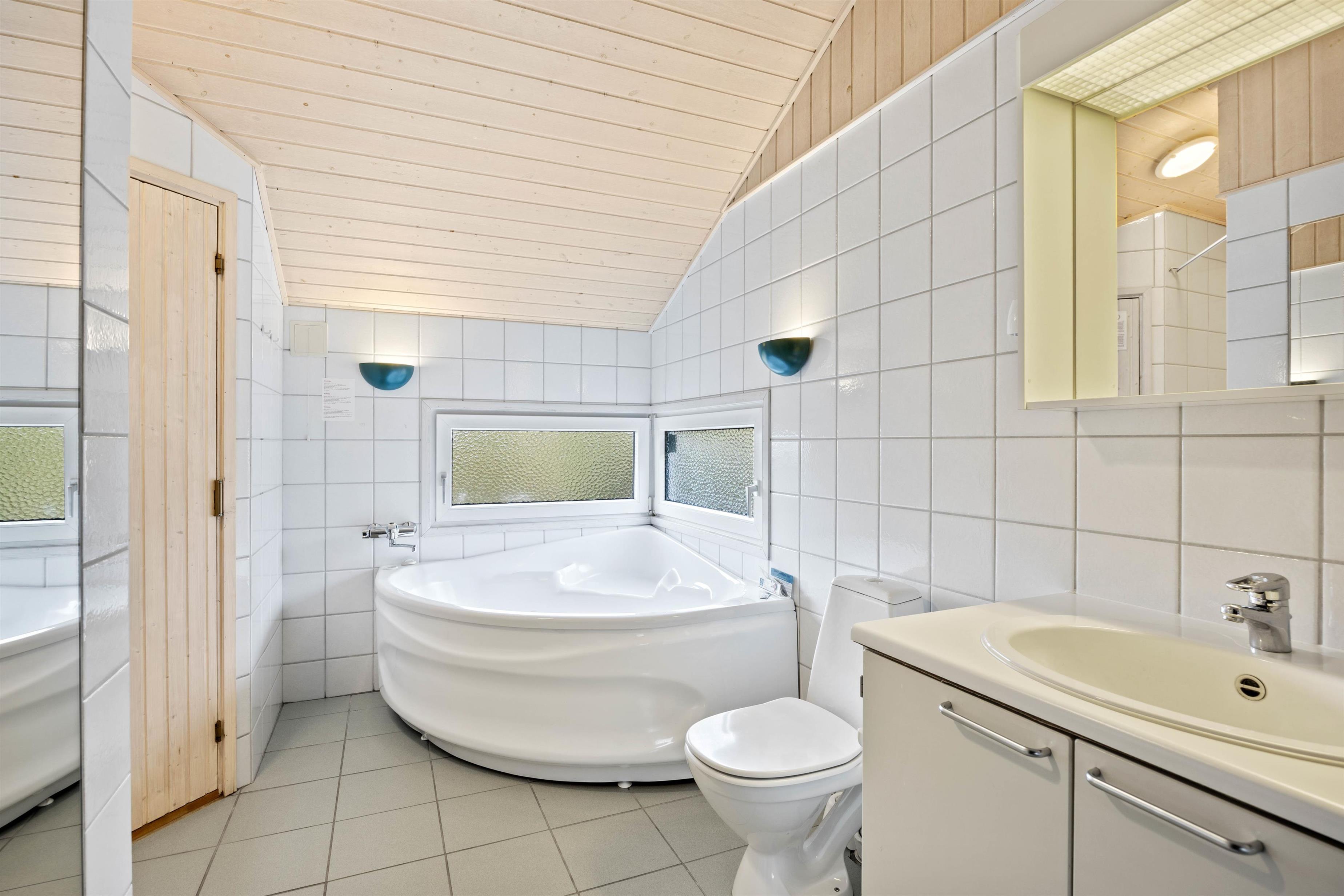 Huset har både et badeværelse og et gæstetoilet, så I ikke skal stå i kø til at få børstet tænder om morgenen. På det store badeværelse finder I endnu et ekstra highlight, nemlig jeres helt egen wellnessafdeling med spabad og sauna. Her kan I på alle måder få et afbræk fra hverdagen og glemme den daglige stress og jag.