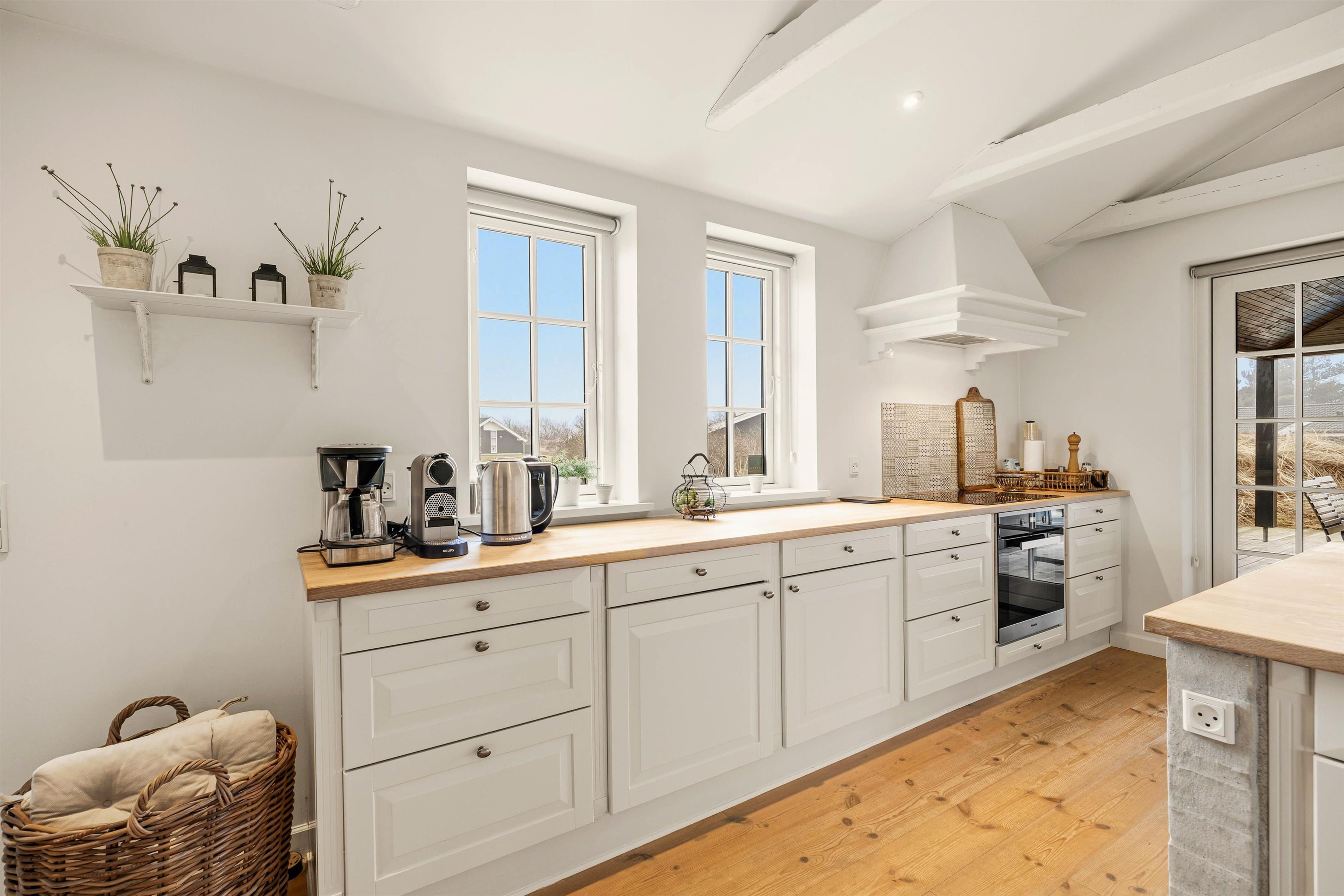 Henne Strand kan det hele. Den lille by emmer af hygge med både indkøbsmuligheder, spisesteder og med en beliggenhed helt ned til Vesterhavet. Du bor lidt tilbagetrukket fra centrum nær hedeområdet med 300 meter til indkøb og 500 meter til havet, så lad bilen stå og nyd en tur til stranden på gåben – spis lidt lækkert på en af byens mange spisesteder inden I søger hjem til huset igen og daser på terrassen.