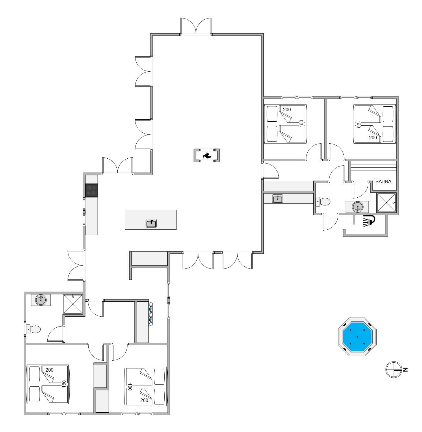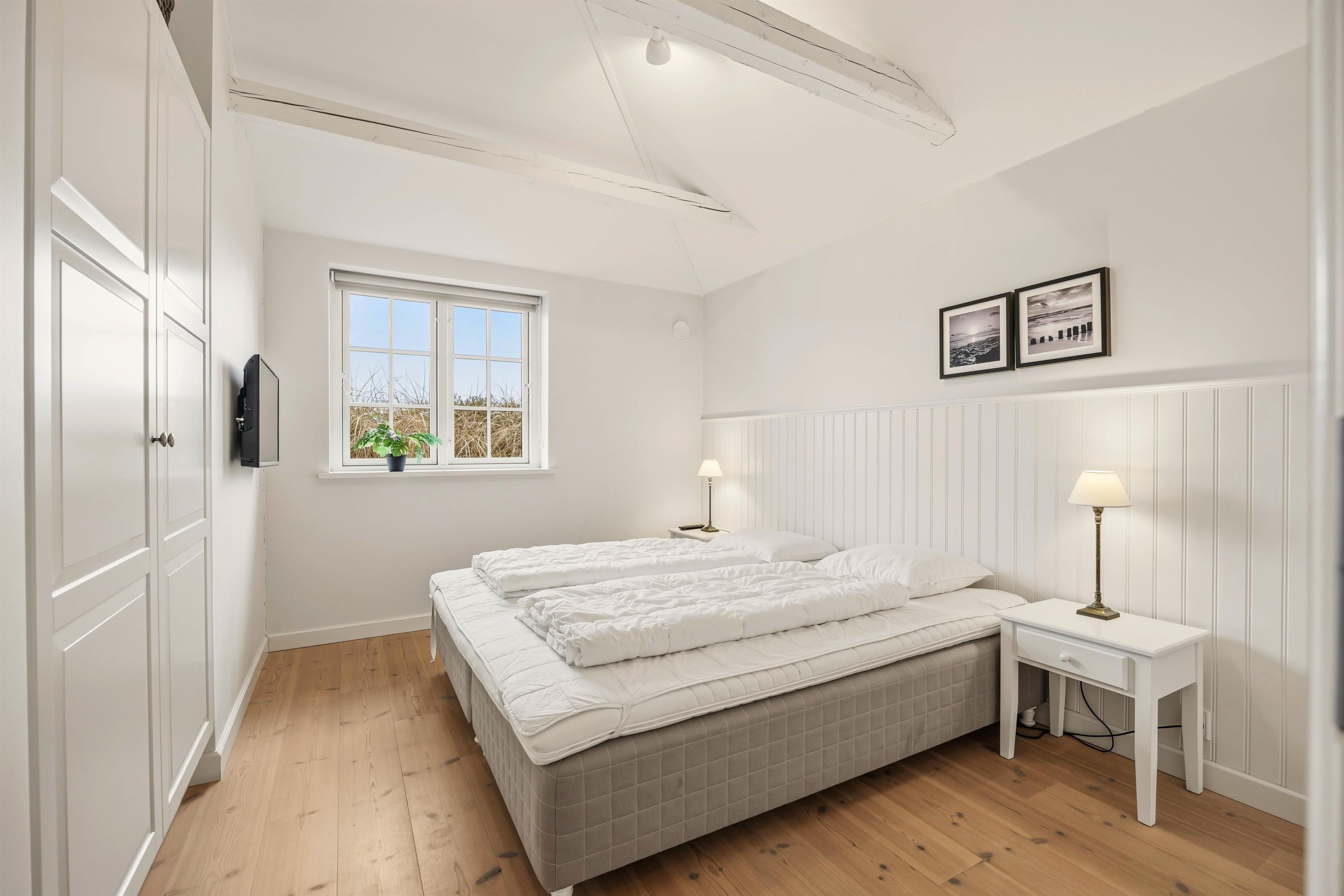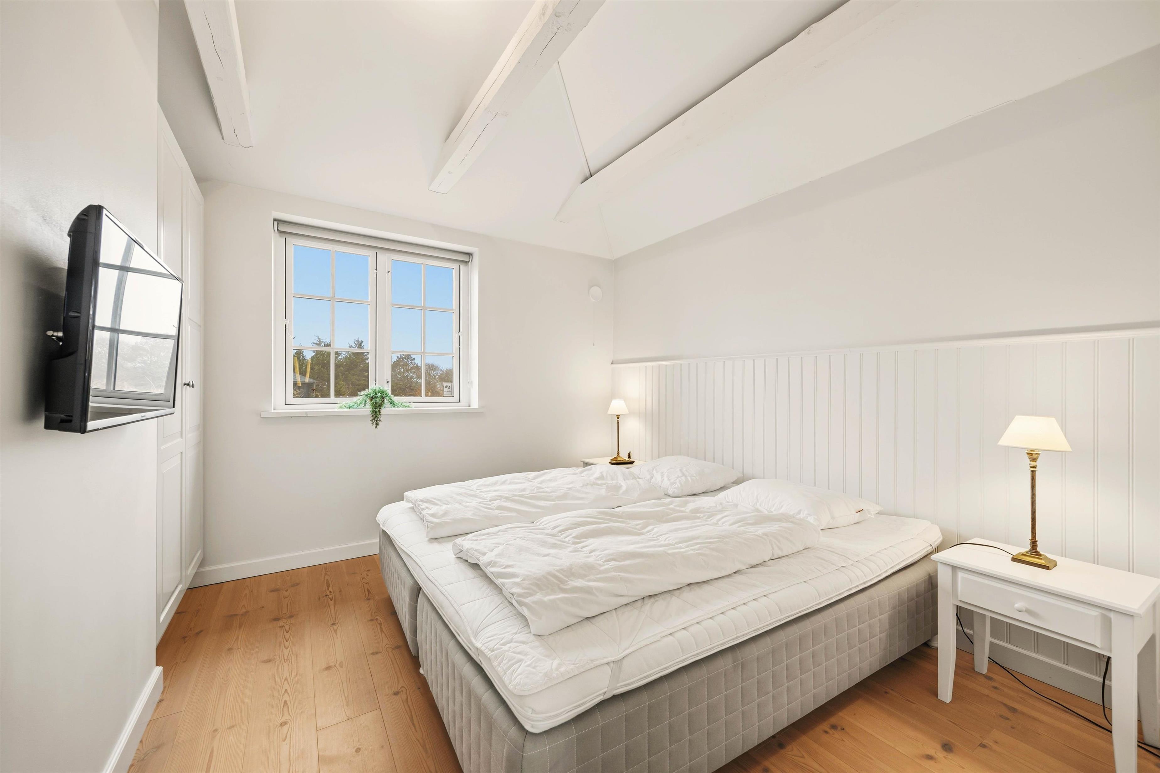 De 4 store soverum med dobbeltsenge befinder sig i hver ende af huset, så 2 soverum deler et af de fine badeværelser. Her er masser af skabsplads og hvert værelse er udstyret med sit eget tv. Et fint bryggers med vaskemaskine og tørretumbler afrunder billedet af en dejlig bekvem og nem ferie. Og skulle I have jeres elbil med, kan den nemt lades op ved hjælp af ladestanderen med type 2 stik.