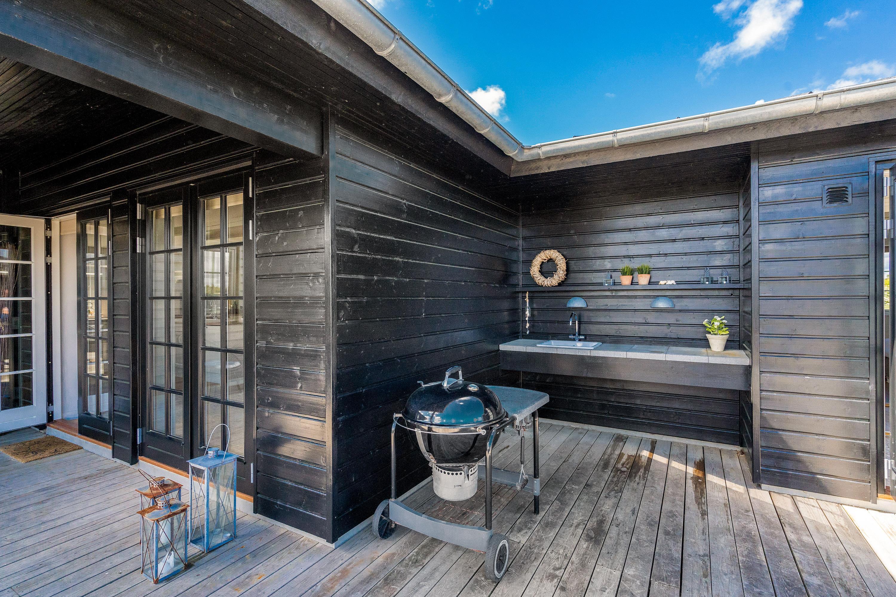 Tid til at dase på terrassen med udekøkken, grill, udendørs bruser og spa
