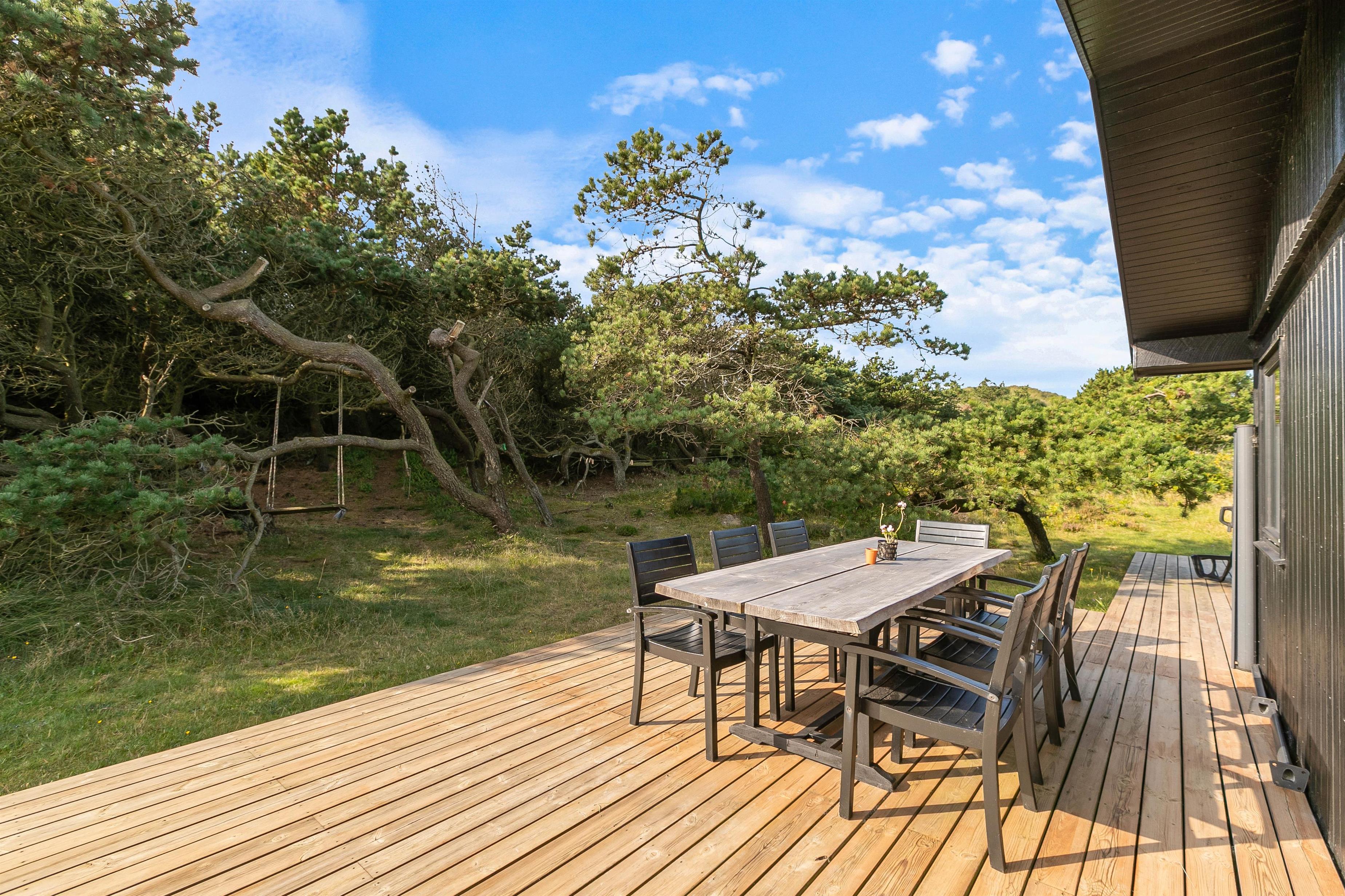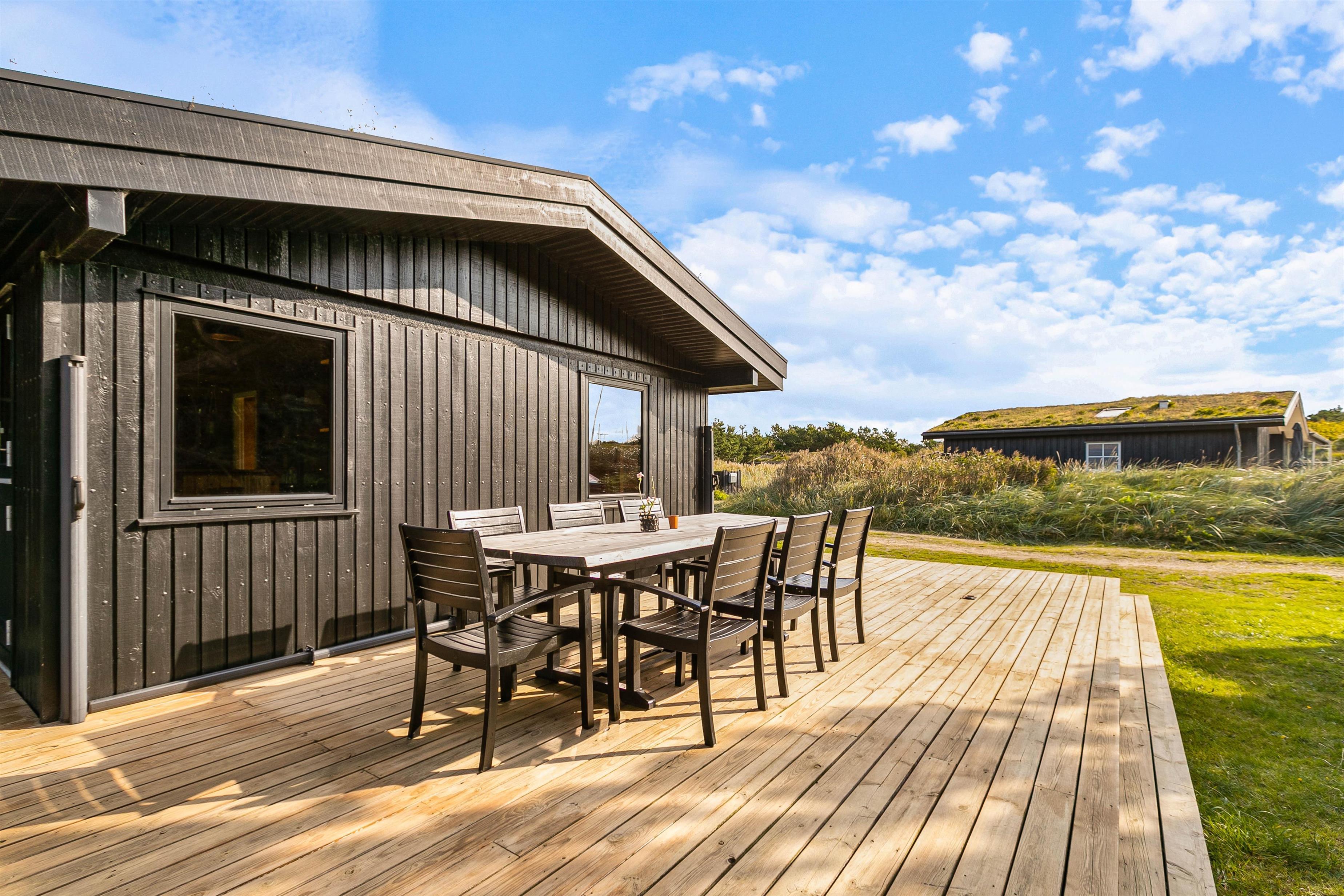 Sommerhuset med adressen Timianvej 6 har en lækker sydvestvendt terrasse med diverse komfortable havemøbler samt grill: I vil helt sikkert kunne finde en dejlig krog, hvor I kan slappe af og nyde omgivelsernes ro samt bølgernes brusen. Den skønne naturgrund, som dette skønne sommerhus ligger på, grænser op til klittens fredningslinje og vil I blot befinde jer 400 meter – og dermed få minutters gang – fra Vestkystens enestående sandstrand.