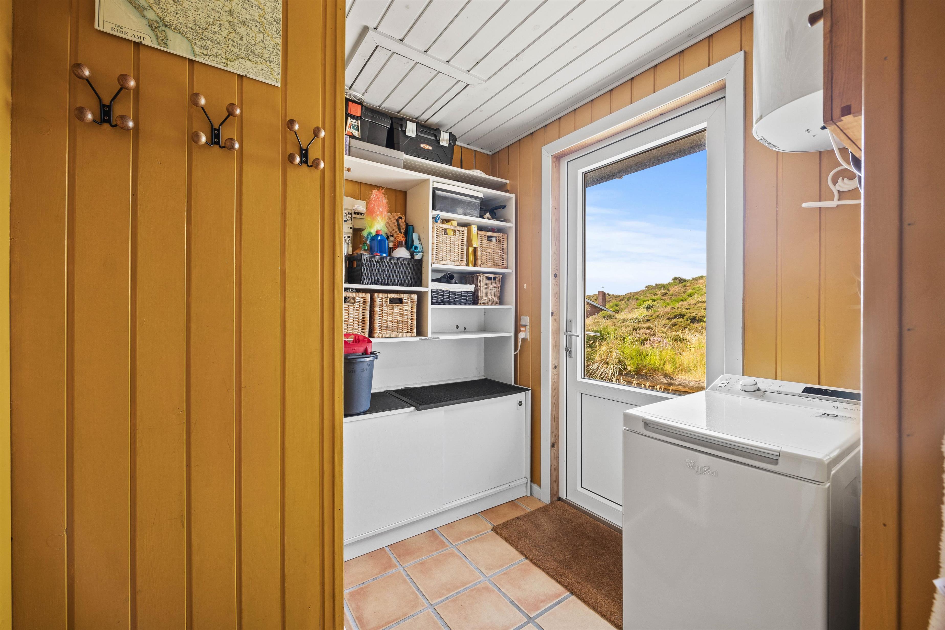 Bymidten af Henne Strand er med 900 meter ikke langt væk og tilbyder en skøn blanding af butikker, caféer og restauranter, hvor I kan nyde forskelligartede delikatesser. Efter en dag med oplevelser kan I vende tilbage til sommerhuset og nyde de rolige omgivelser, mens solen går ned i horisonten. Og med blot 700 meter til stranden er det oplagt at nyde en aften-gåtur ved vandet.