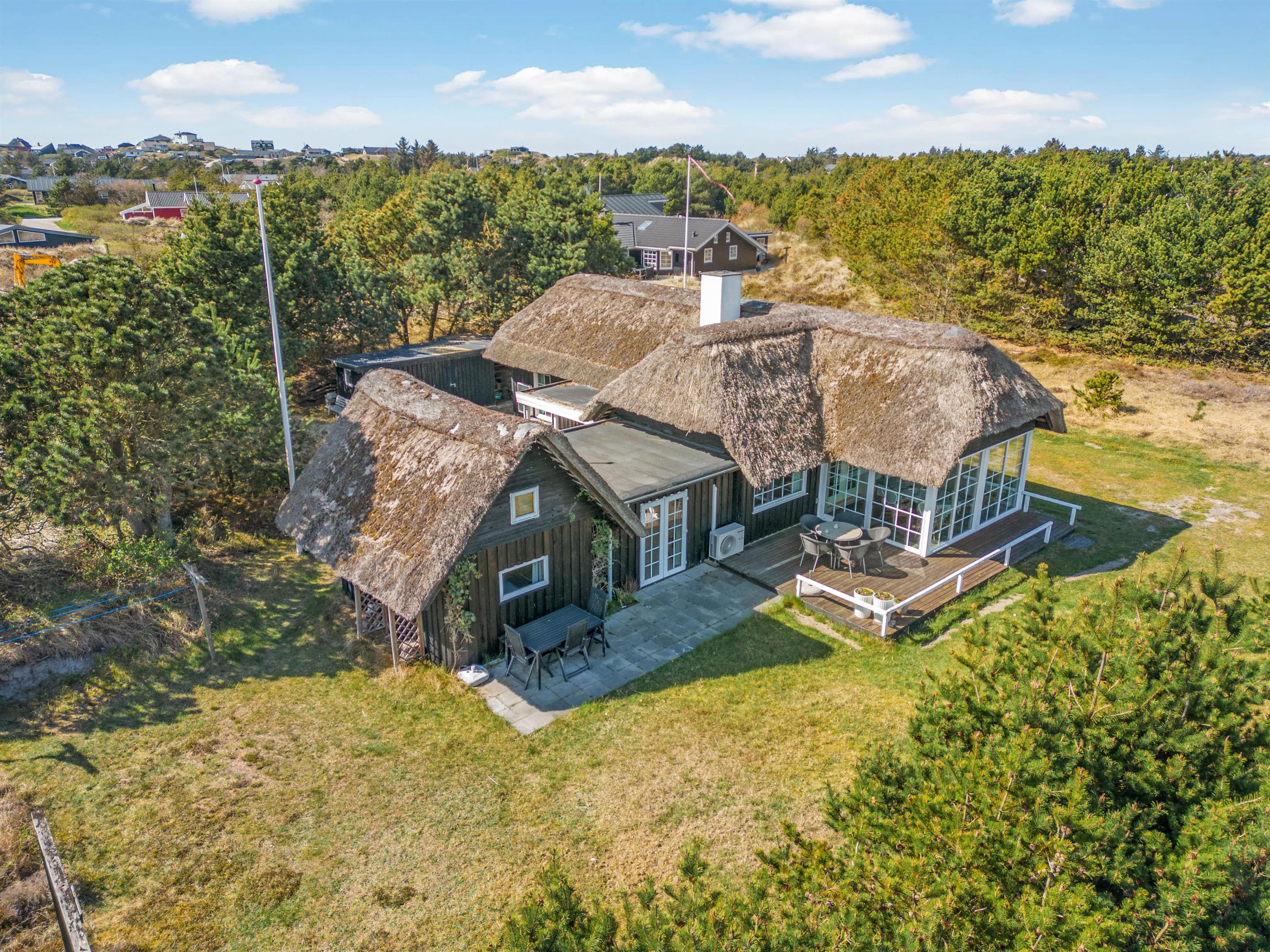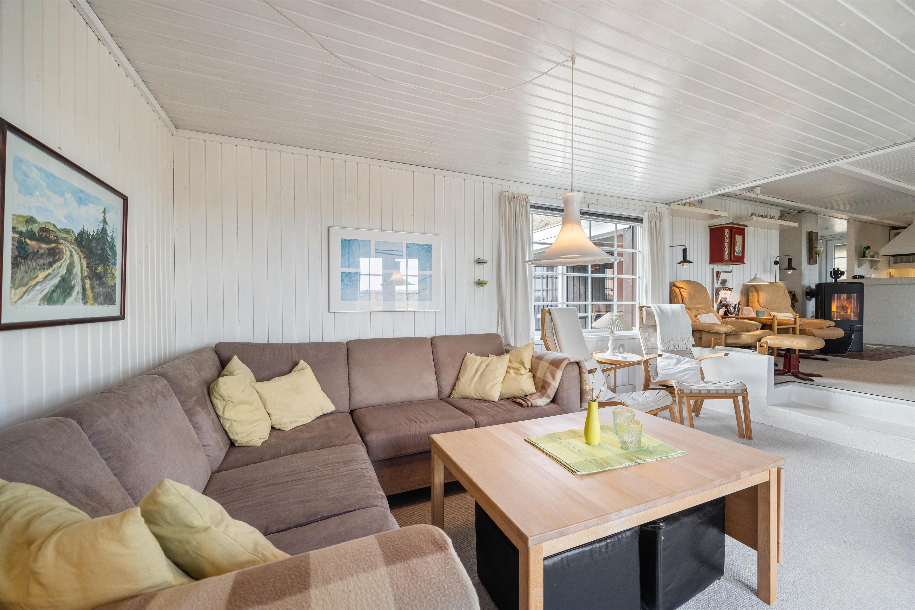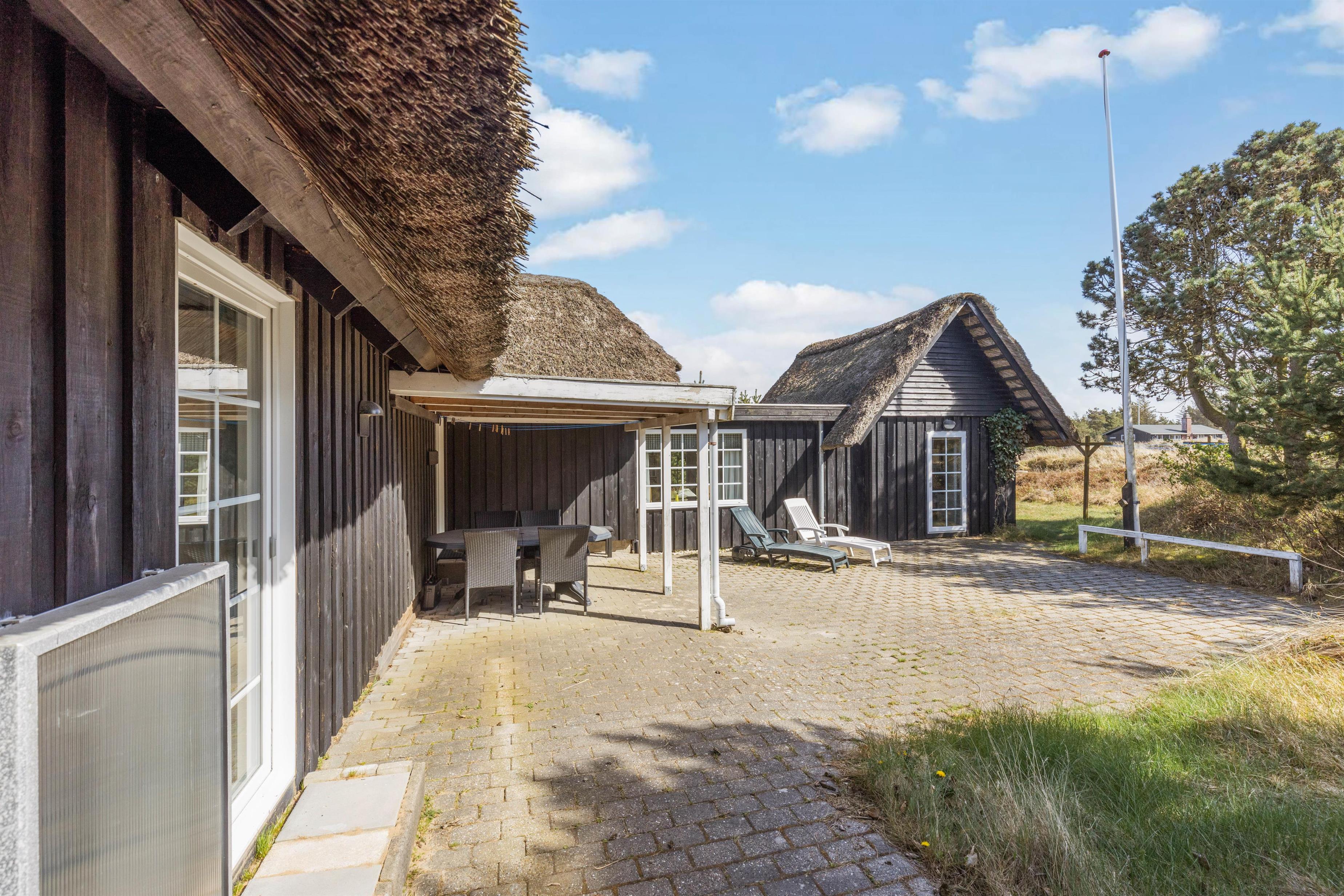 Fra sommerhusets udestue, som har gulvvarme, er det muligt at nyde den storslåede natur, som Henne-egnen byder på. Den flotte natur omkring sommerhuset kan også nydes fra sommerhusets mange terrasser. Her vil I til enhver tid kunne finde jer en dejlig solplet, mens I finder jer til rette i sommerhusets havemøbler og liggestole. På sommerhusets gasgrill vil I kunne tilberede dagens aftensmad, og nyde den flotteste solnedgang efterfølgende.