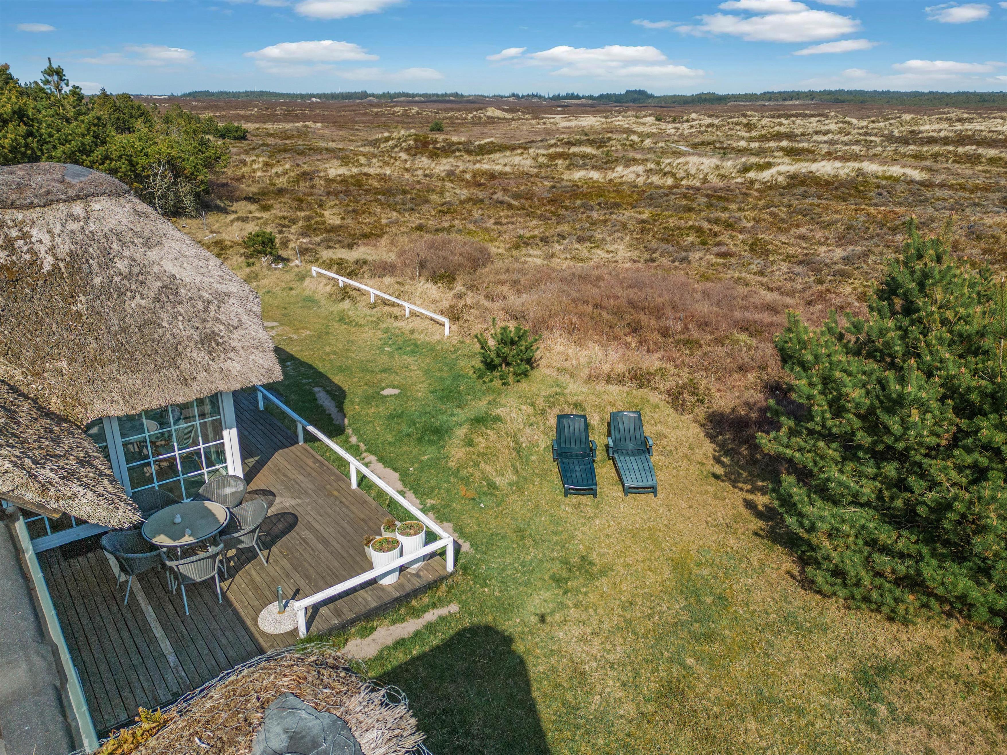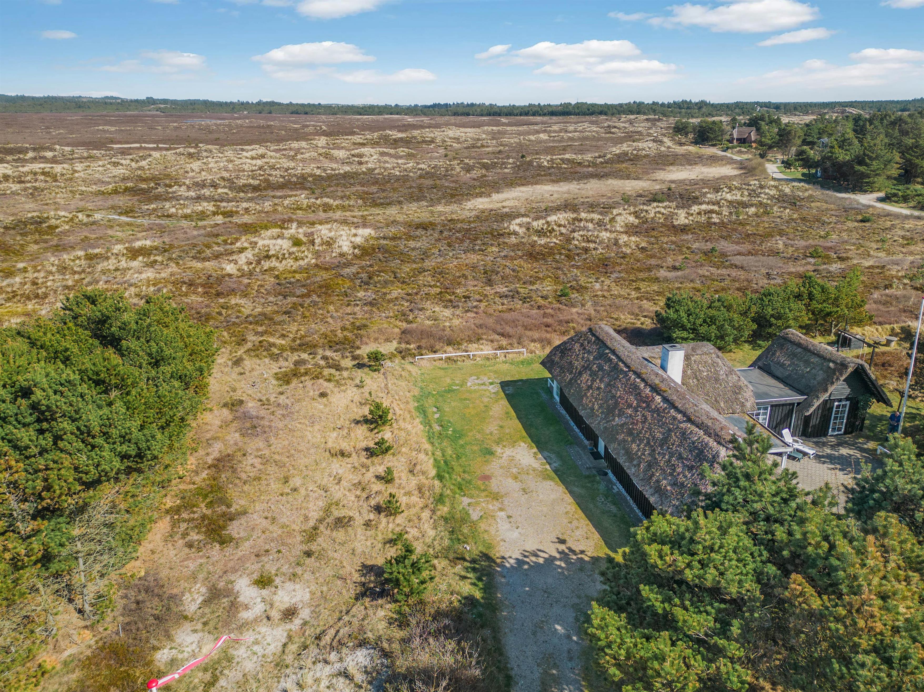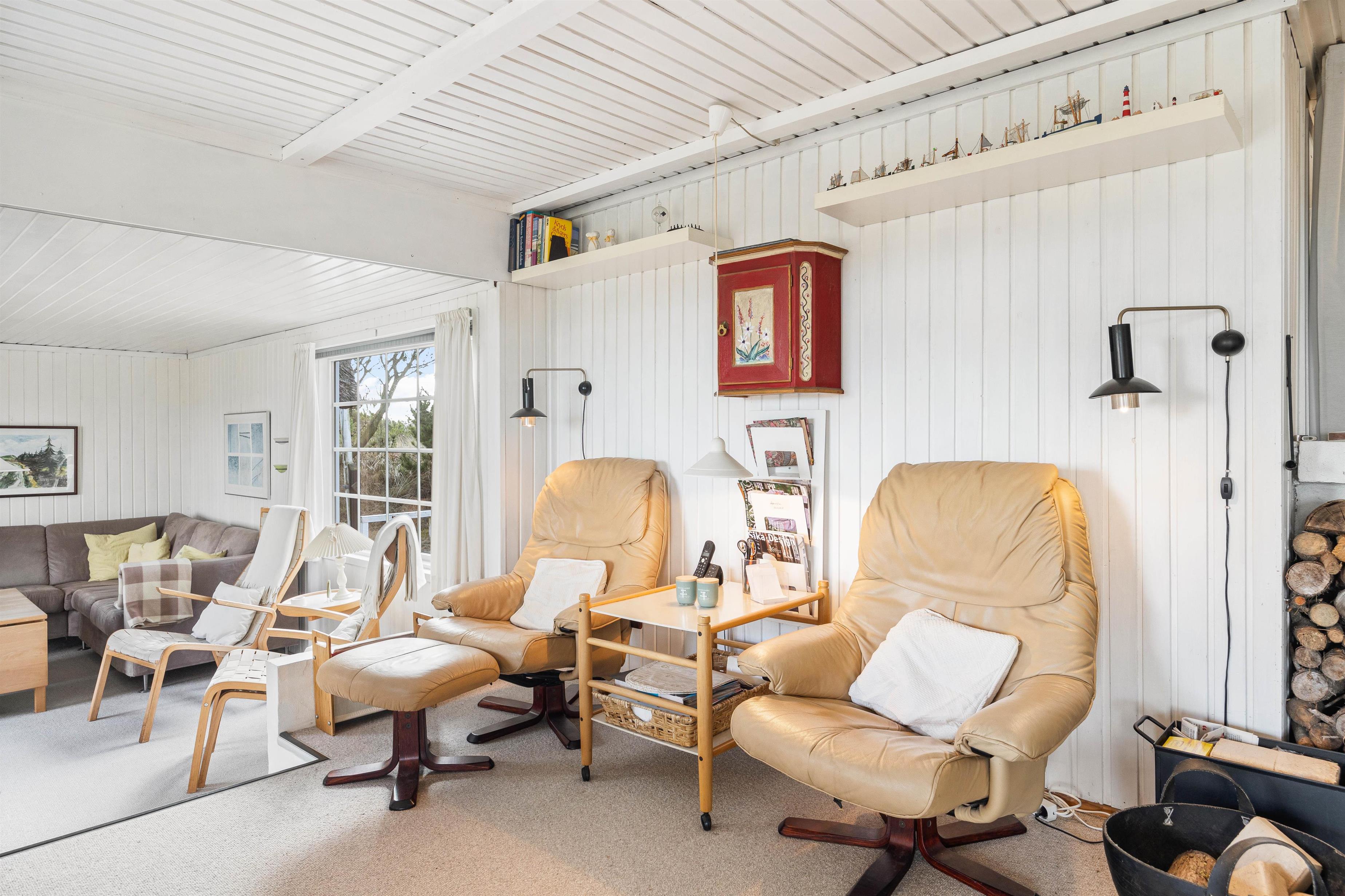 Fra sommerhusets udestue, som har gulvvarme, er det muligt at nyde den storslåede natur, som Henne-egnen byder på. Den flotte natur omkring sommerhuset kan også nydes fra sommerhusets mange terrasser. Her vil I til enhver tid kunne finde jer en dejlig solplet, mens I finder jer til rette i sommerhusets havemøbler og liggestole. På sommerhusets gasgrill vil I kunne tilberede dagens aftensmad, og nyde den flotteste solnedgang efterfølgende.