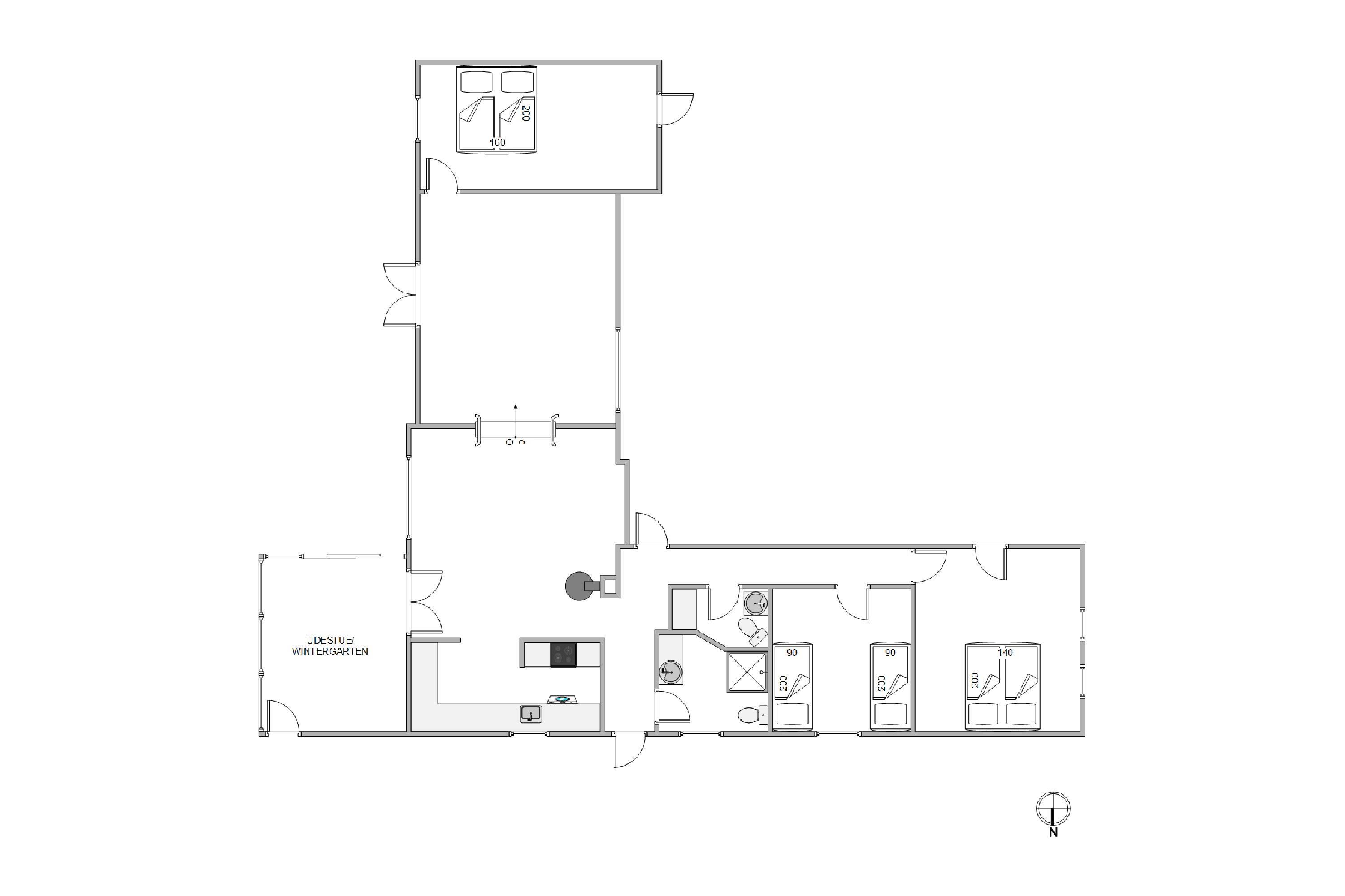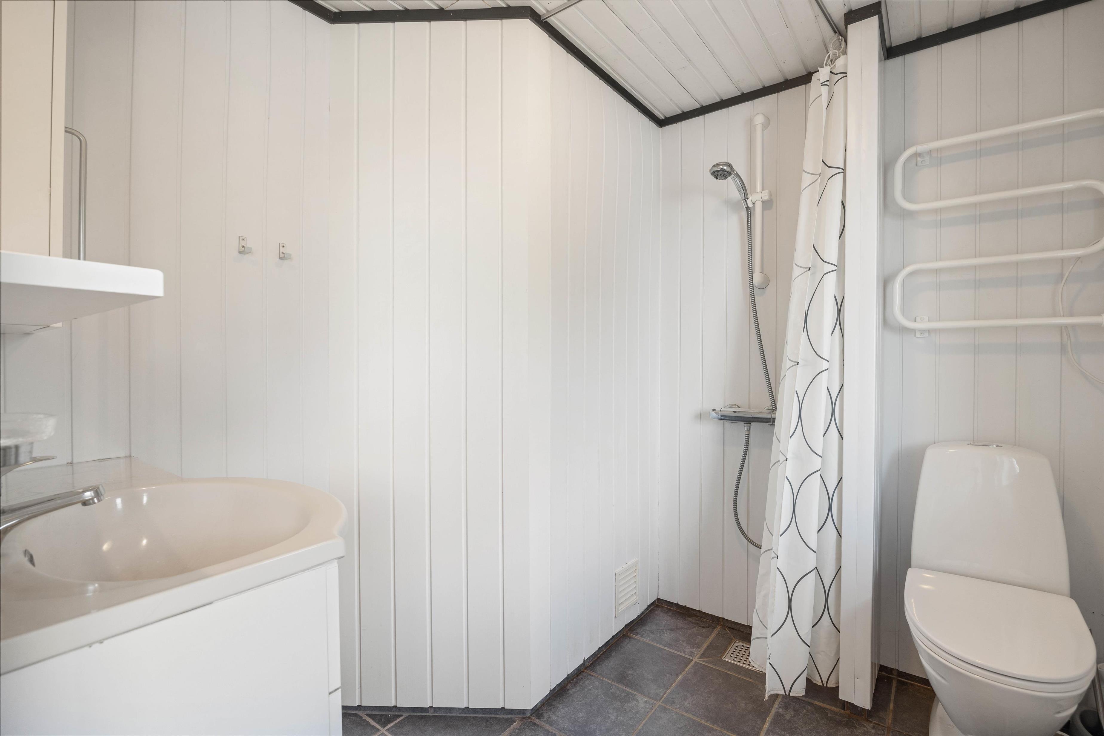 Sommerhuset råder over 3 gode soveværelser. Der er dobbeltsenge i 2 af soveværelserne, og i 1 af soveværelserne er der 2 enkeltsenge. Både badeværelse og gæstetoilet er udstyret med gulvvarme, så der er ingen risiko for kolde tæer her.