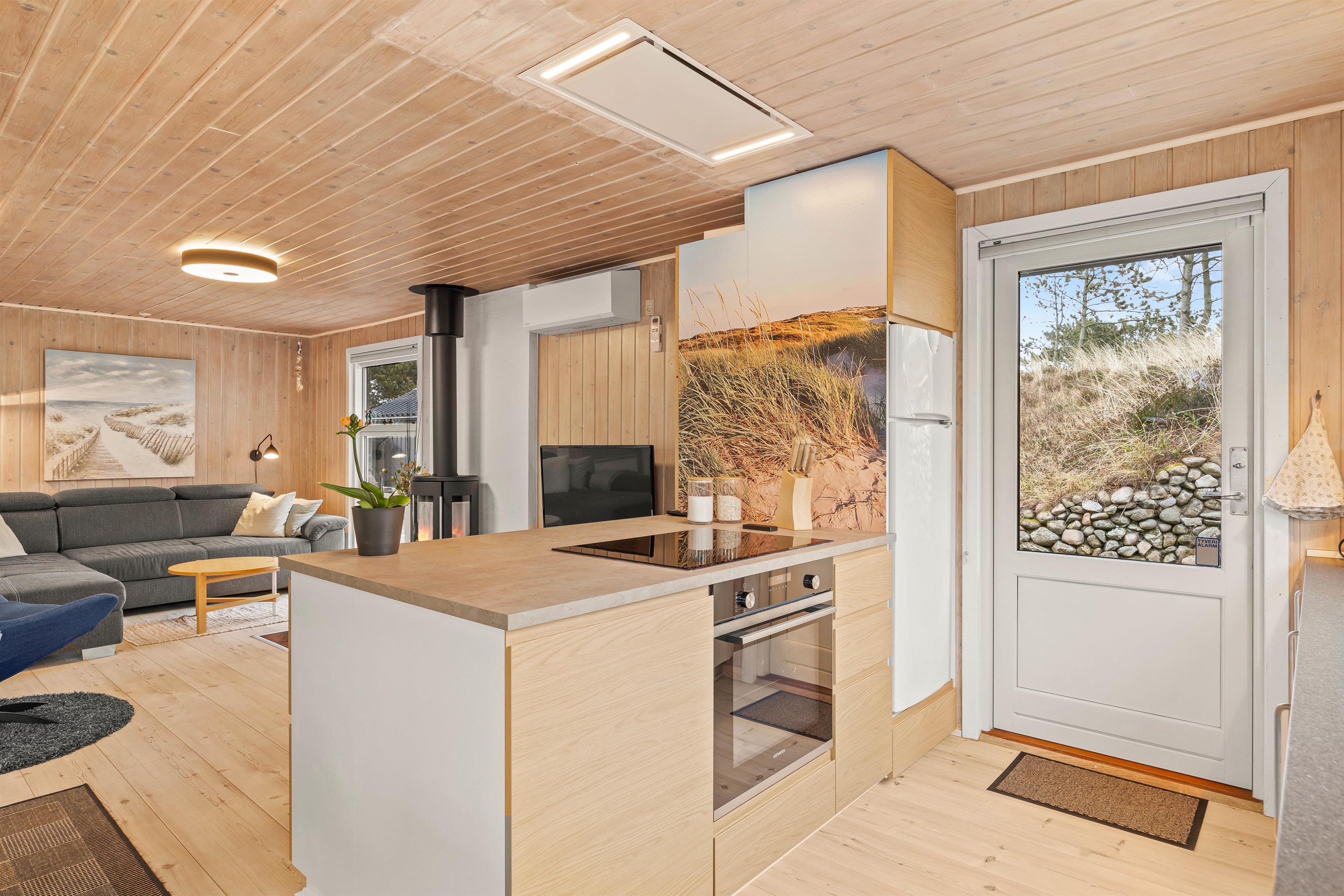 Alrummet, der forener køkken, stue og spisestue, bliver jeres store samlingspunkt på ferien, hvor I kan nyde hinandens selskab og mange dejlige feriestunder. Mens I laver mad, spiller spil eller ser film, kan I tænde op i brændeovnen, der med sin knitren og varme fuldender den dejlige feriestemning.