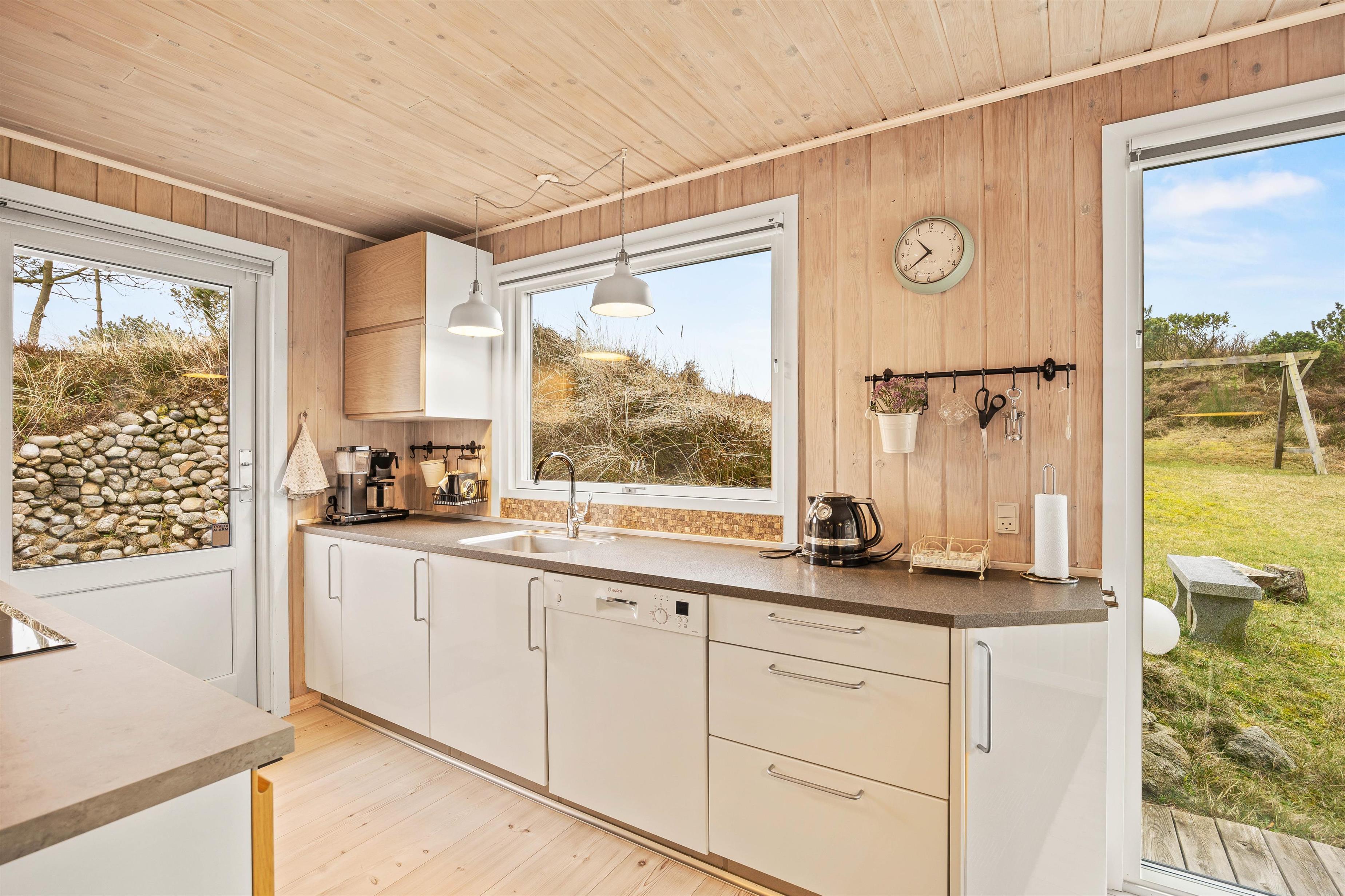 Sommerhuset er praktisk indrettet med både vaskemaskine og opvaskemaskine, der hjælper jer med at klare det praktiske husarbejde på ferien. Derudover er der også en energivenlig varmepumpe, som sikrer, at I altid har et godt indeklima.