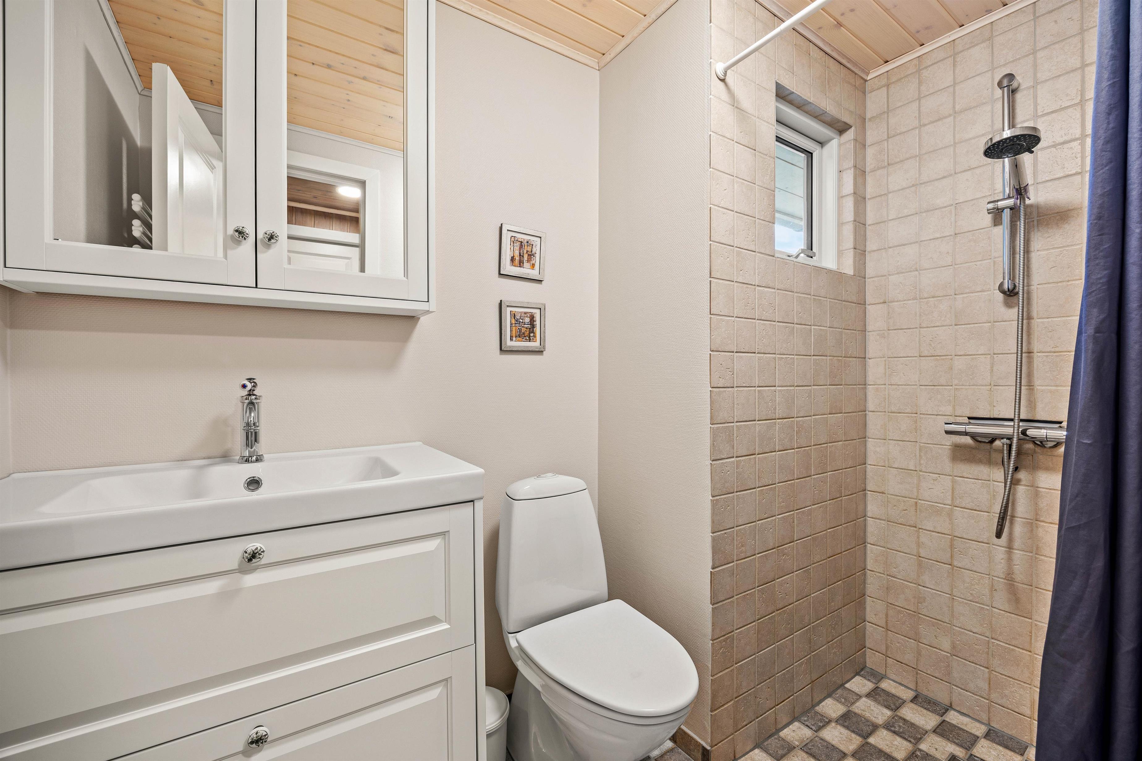 På sommerhusets 81 kvadratmeter finder I desuden 3 gode soveværelser – 2 af soveværelserne er indrettet med en dobbeltseng hver, mens det tredje soveværelse er indrettet med 2 enkeltsenge. Desuden er der et badeværelse i sommerhuset, der er udstyret med gulvvarme, så I ikke fryser fødderne om morgenen.