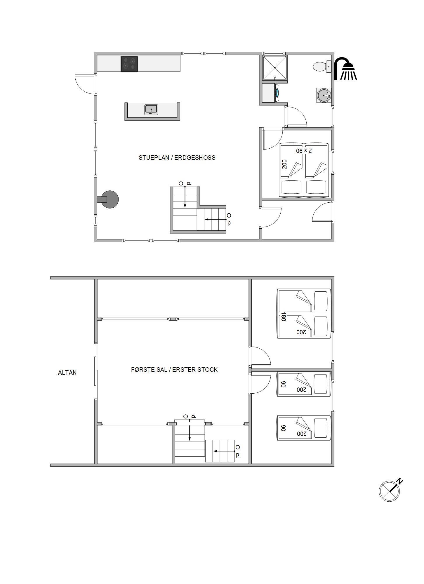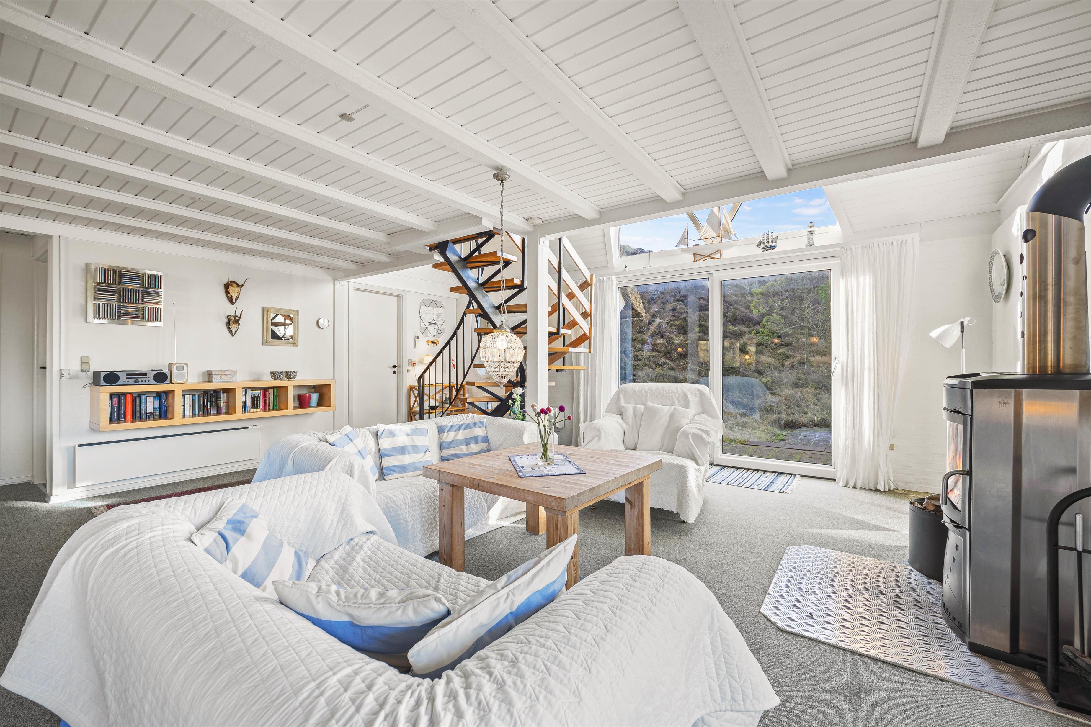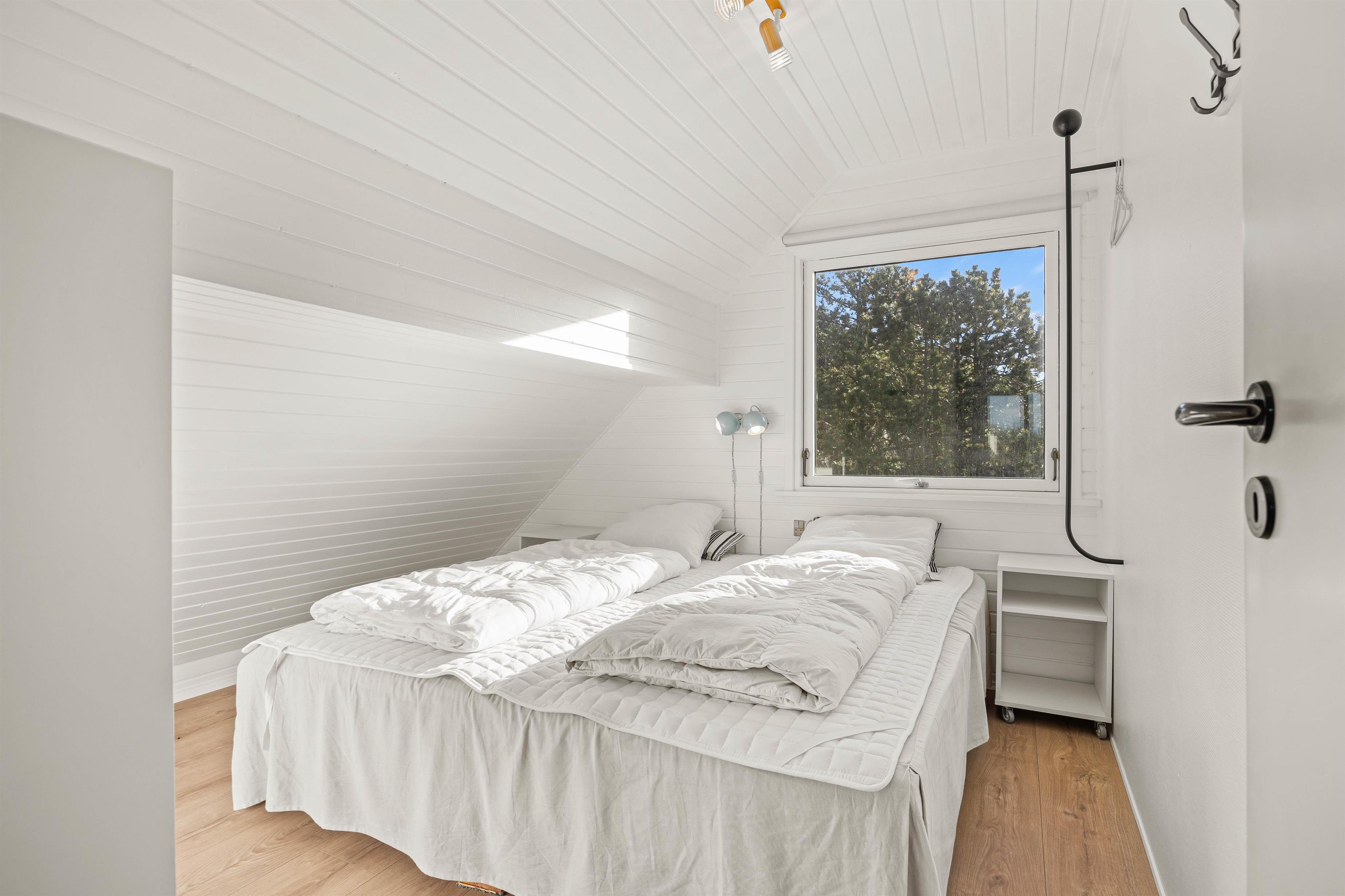 Fra stueetagen leder en trappe jer op til en hyggelig TV-stue – de flotte vinduer giver det flotteste lysindfald samt en skøn udsigt over klitterne herfra. Herfra kan I træde ud på sommerhusets balkon, hvorfra I også kan nyde den pragtfulde og enestående natur.