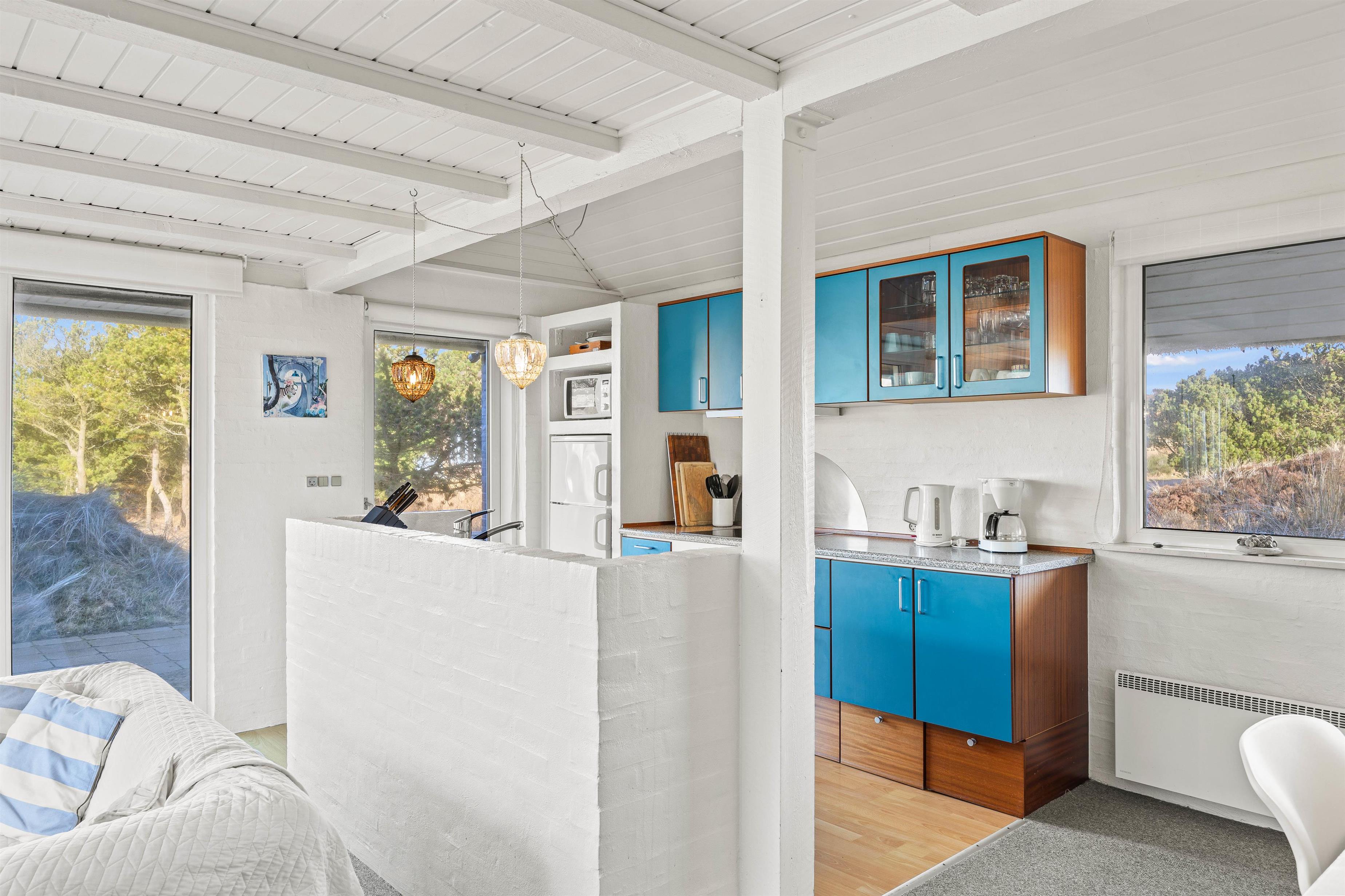 Sommerhusets køkken er veludstyret, og både mikroovn, opvaskemaskine samt en fryser på 80L kan være jer behjælpelige med at klare alt det praktiske, så der bliver masser af tid til slappe af samt at nyde ferien.
