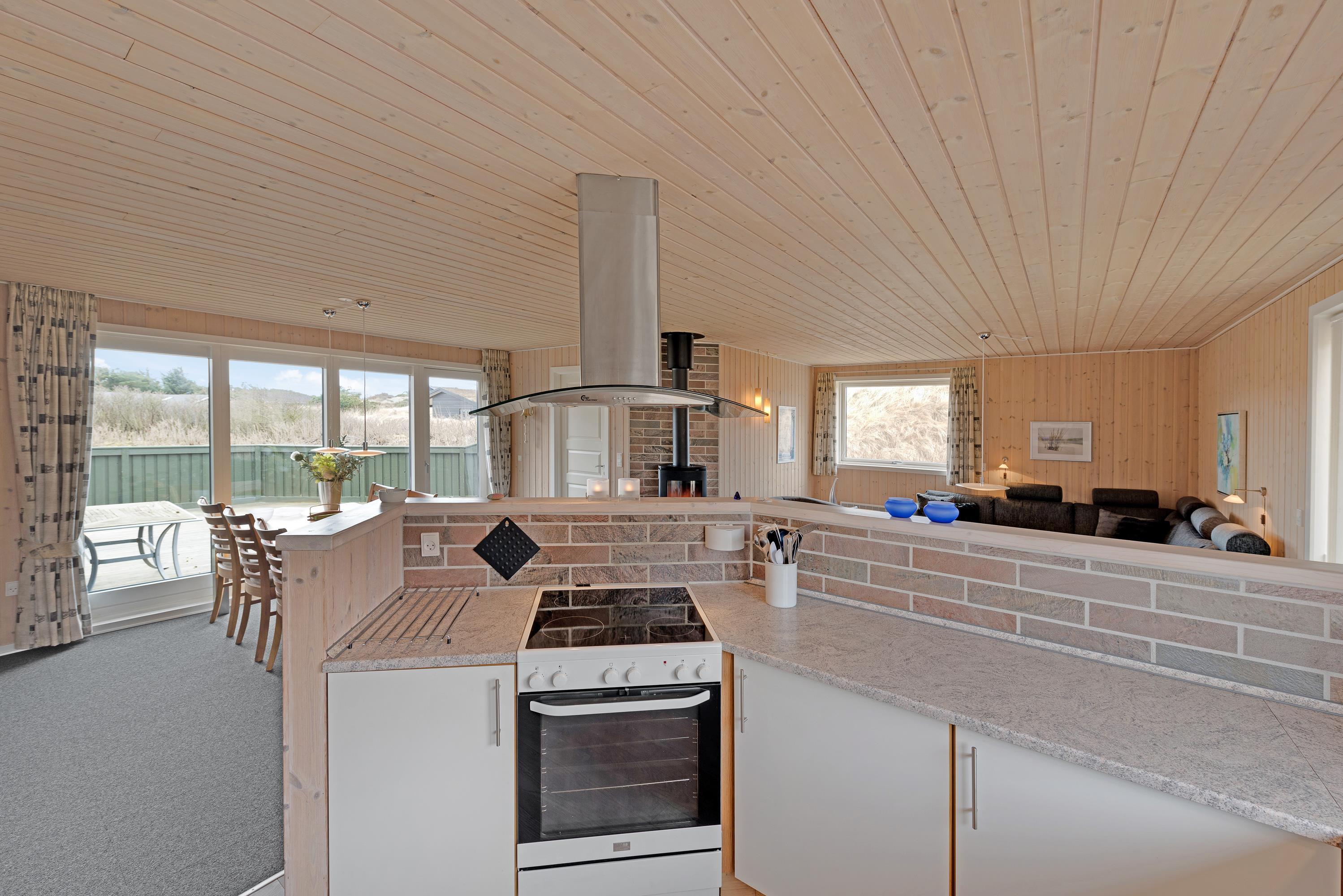 Allerede ved første indtræden i dette lyse hus vil I kunne mærke, hvordan feriestemningen sænker sig over jer. Den gode indretning med praktisk udstyr såsom opvaskemaskine, tørretumbler og vaskemaskine gør ferien så ubesværet som muligt, og de hyggelige omgivelser sætter rammerne for en dejlig ferie med masser af nye ferieminder til samlingen. Den centralt placerede klassiske brændeovn vil helt sikkert sprede god varme og sørge for ekstra hyggestemning på de kølige dage.