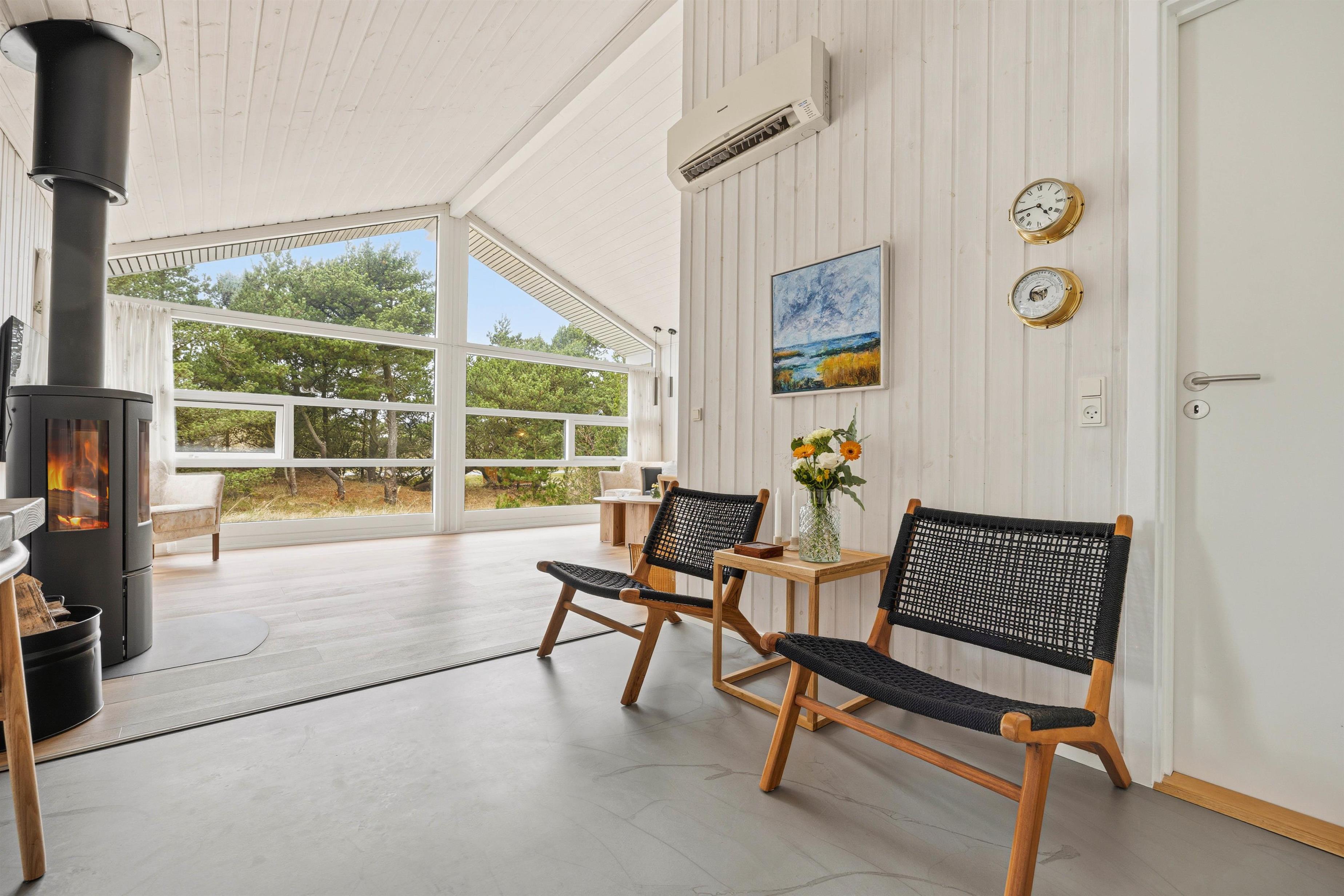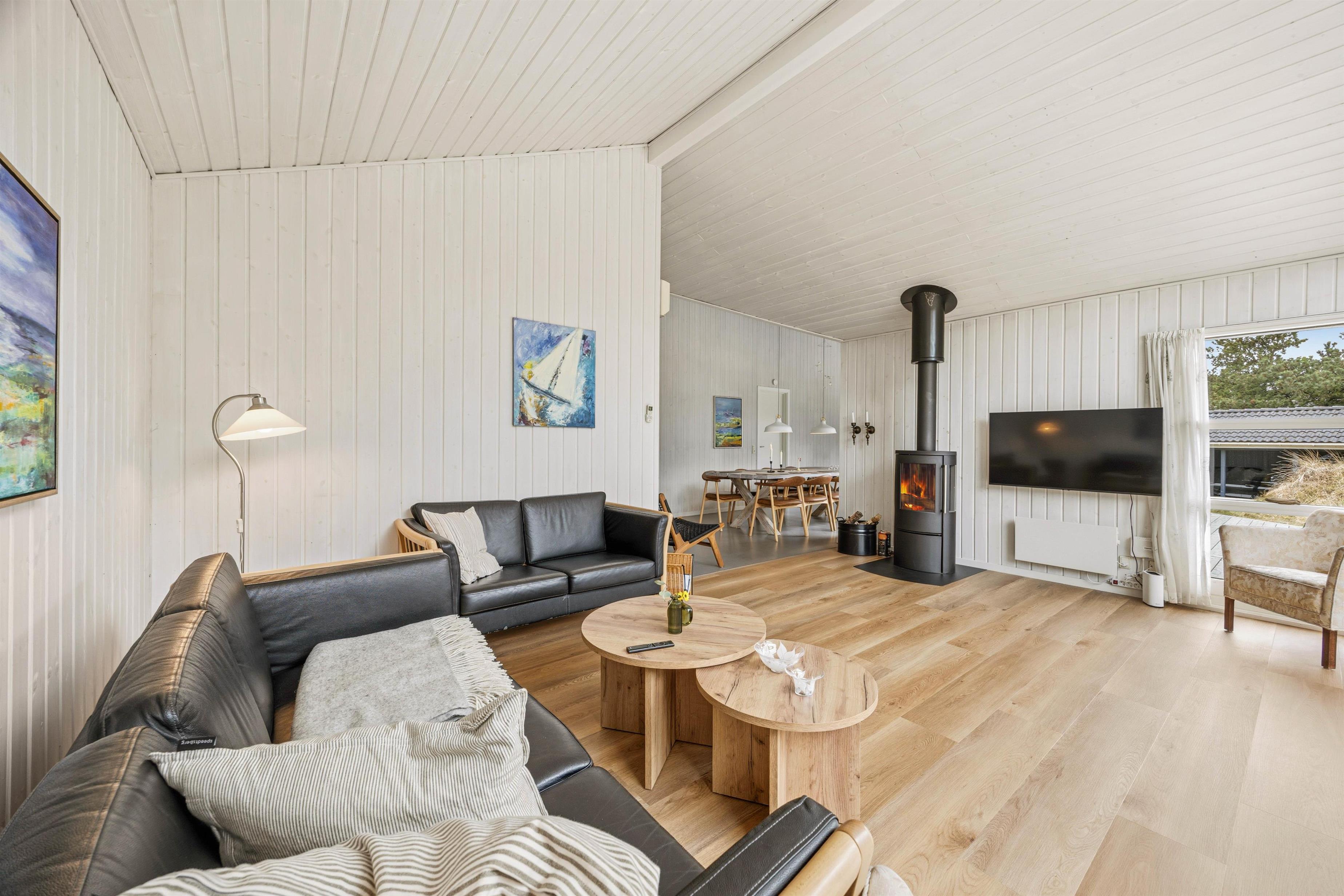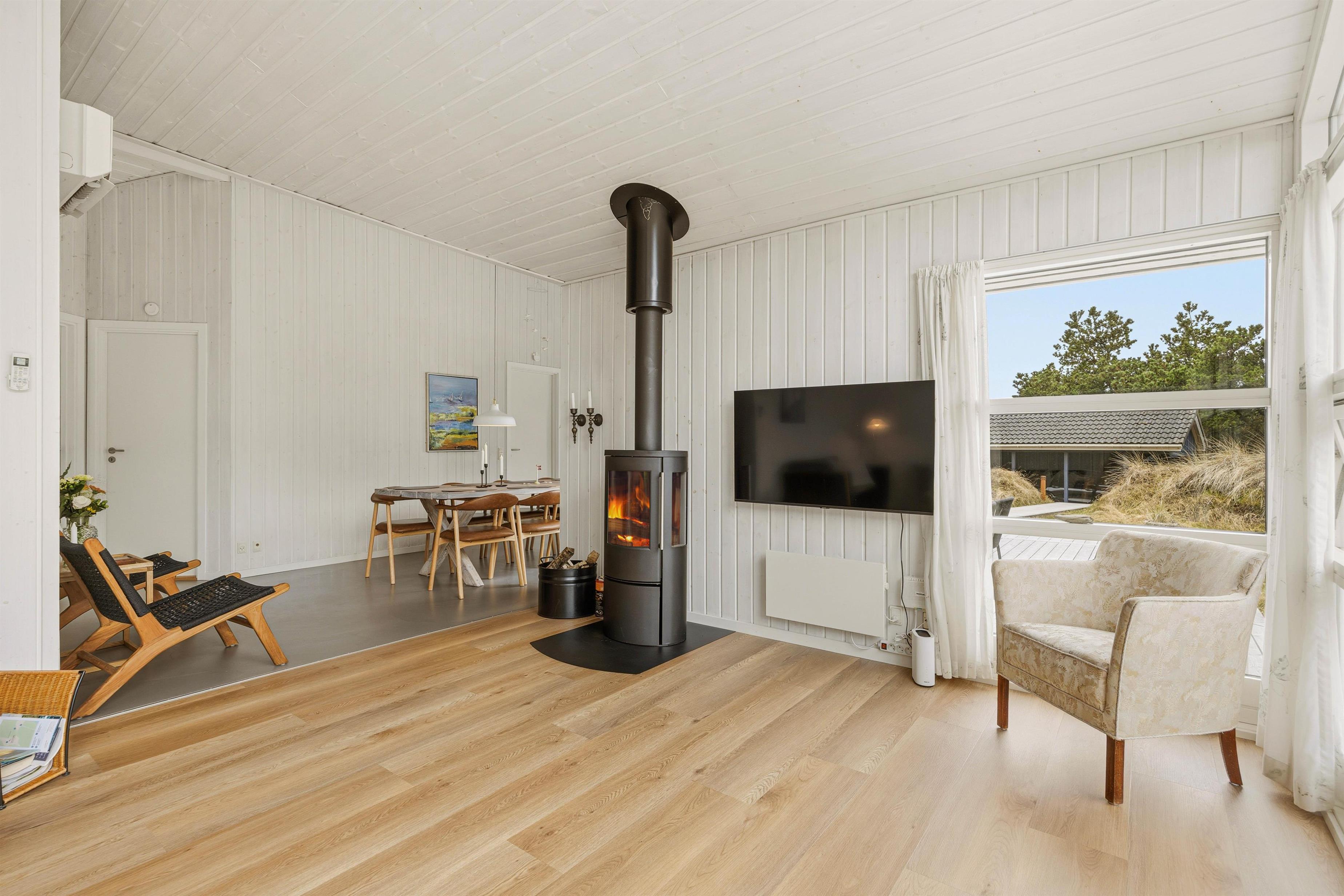 Sommerhuset er renoveret i 2025 og fremstår lyst og indbydende. I husets centrale alrum smelter stue og køkken sammen i et åbent rum, hvor der er god plads til både fælles måltider og hyggelige stunder foran brændeovnen. Varmepumpen sørger for et behageligt indeklima året rundt, og med både Chromecast og internet har I gode muligheder for underholdning, når I vil koble af med en film eller serie. Der er også Bluethooth højtaler i køkken.